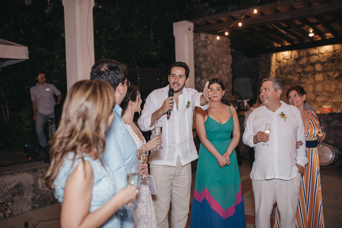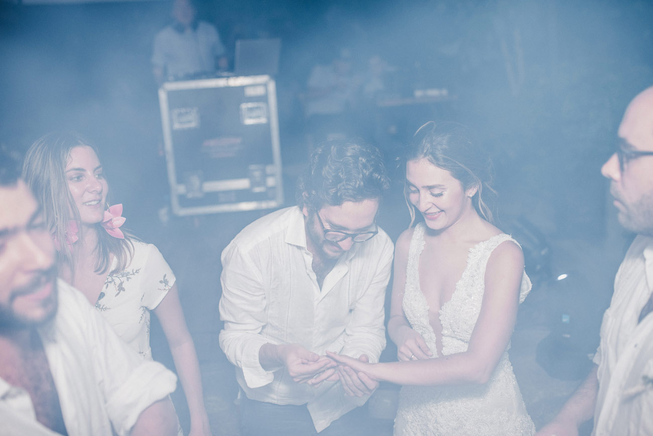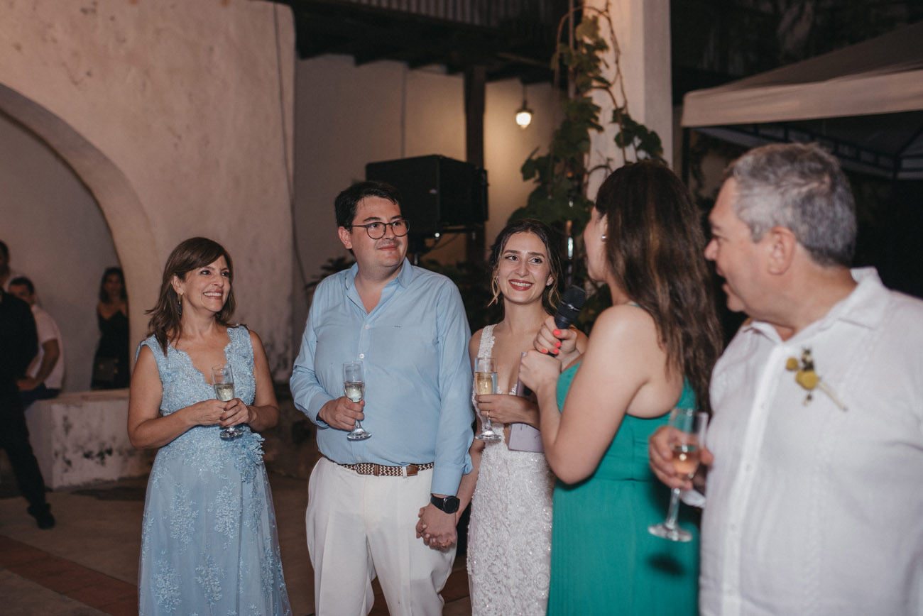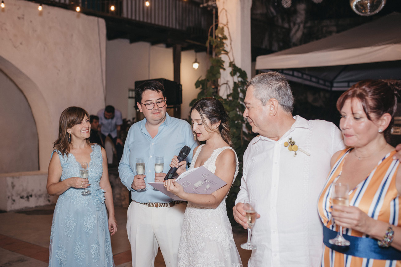 La noche antes hubo comida donde los suegros de Camila. Una cena española donde las dos familias celebraron al son de los mariachis que Juan David llevó. La antesala ideal para el día que iba a llegar, que llegó, por supuesto, con nervios y ansiedad y con claridad y soltura. Ya habían entregado a un ancianato 160 huevos (uno por invitado) para que no lloviera, porque aunque en Honda hace mucho calor por esa época el cielo estaba acuoso, ya habían escrito a mano las 160 notas personales que iban encima de los platos agradeciéndole a cada persona su presencia, su cariño, su energía, ya habían (las damas de honor de ella) revisado que cada cosa estuviera en su lugar, ya habían hecho todo con amor y paciencia… ya nada podía salir mejor.