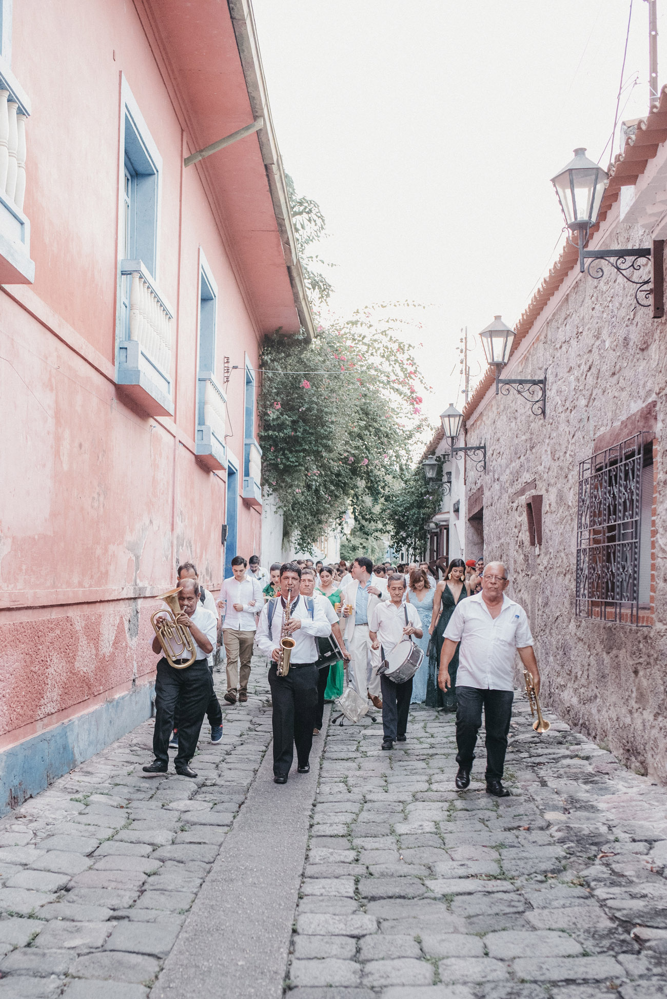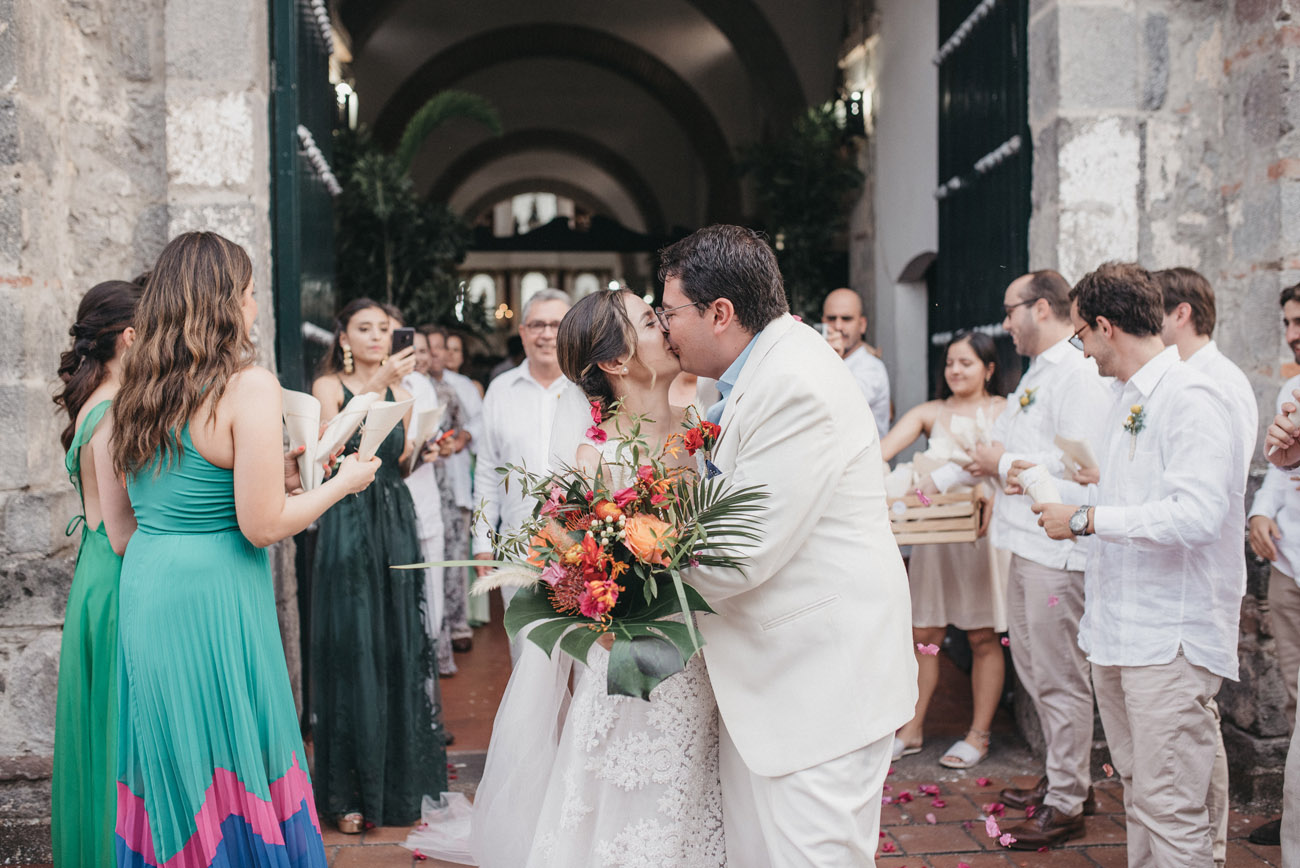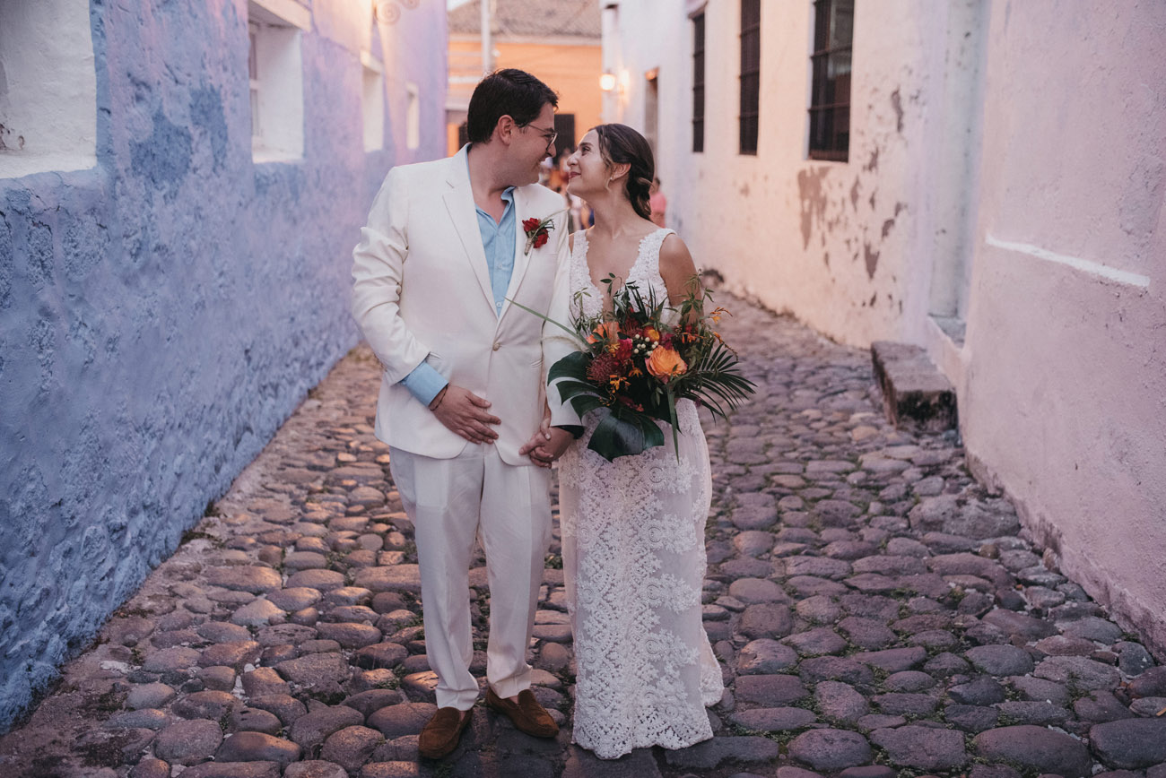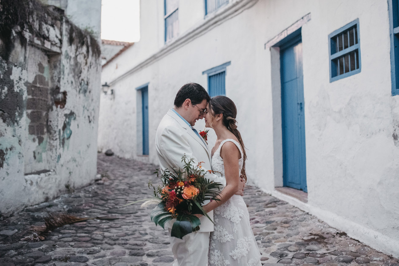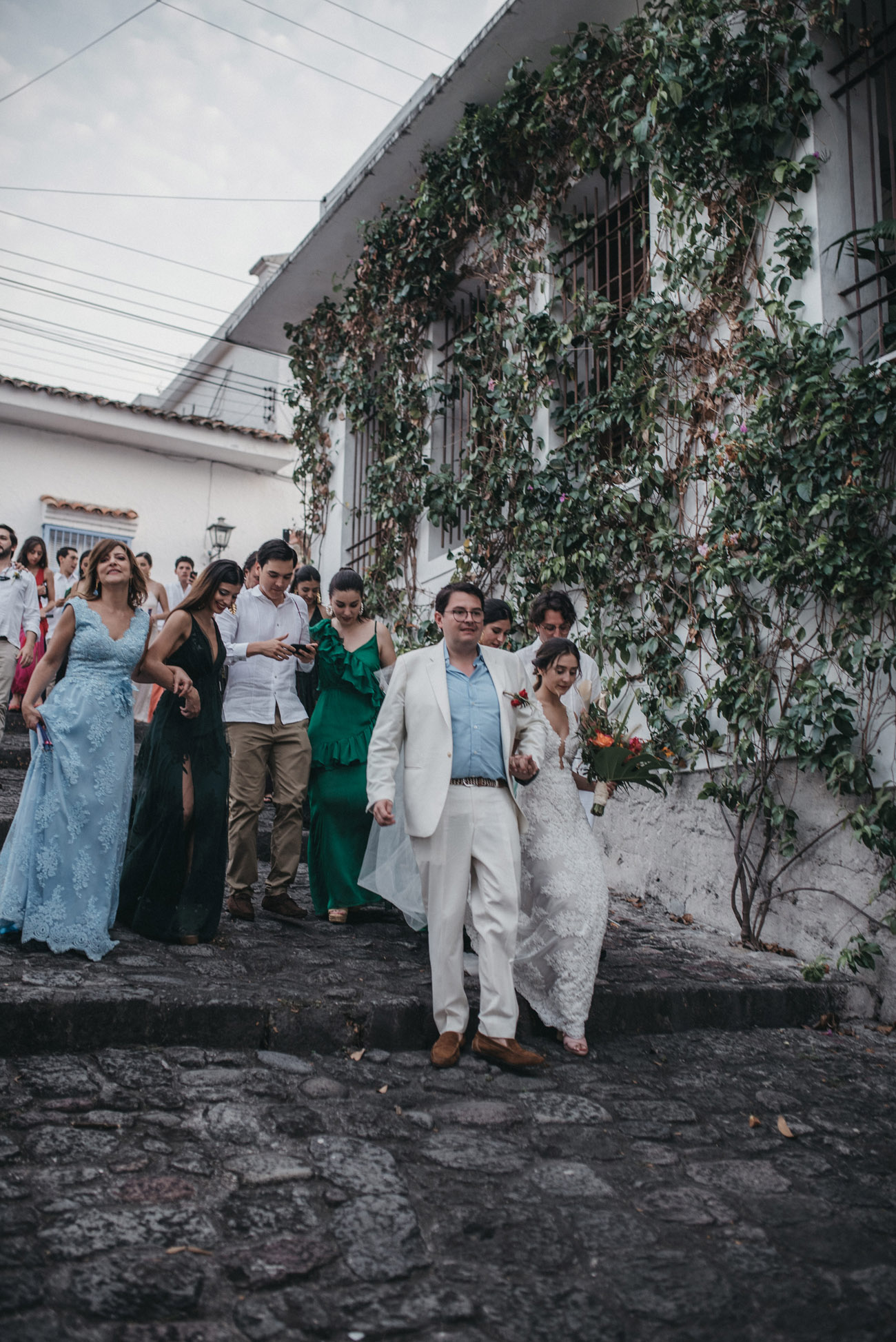 Cuando salieron de la iglesia los recibió una papayera, a ellos, a los invitados y a muchas personas del pueblo que quisieron mirar de cerca ese amor. Y así se fueron, bailando, aplaudiendo, cantando hasta la casona a seguir celebrando, a seguir sonriendo. Antes de entrar a la casa hubo coctel en esa calle empedrada que el sol amarillento hacía lucir más, que decoraron con banderines blancos y bombillitos, que parecía una fiesta de plaza, encantadora, romántica, de otros tiempos.