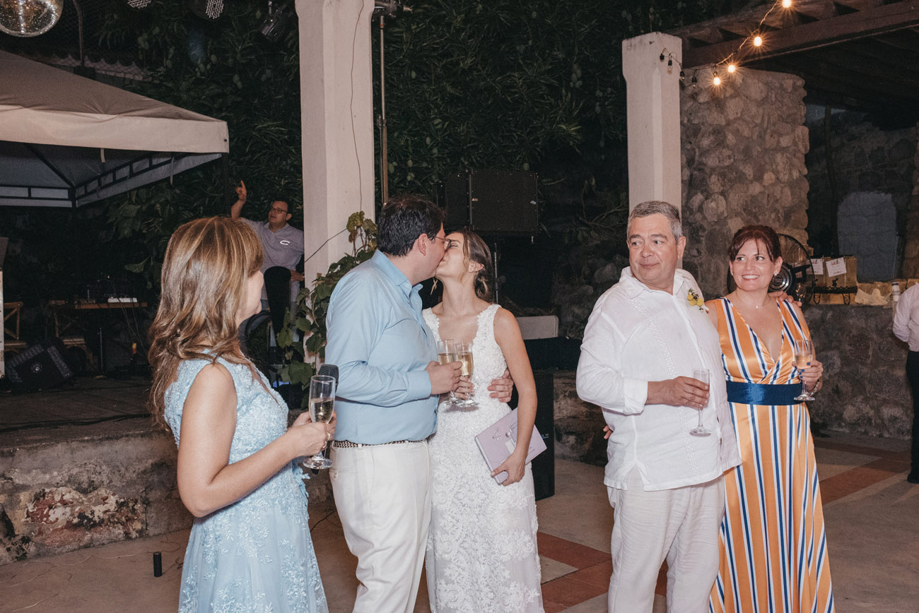Decidieron hacerlo allí porque fue el lugar donde se enamoraron, porque el calor les encanta, porque es donde más felices son: desde que comienza el viaje en carro Bogotá-Honda hasta que llegan a esa ciudad colonial de puentes y pisos en piedra. Decidieron hacerlo allí por los recuerdos, por el comienzo, porque quizás el encanto de las primeras veces nunca desaparece si se vuelve a donde todo sucedió. De ahí que la inspiración fuera el espacio en sí mismo: su cultura, su gente, su pueblo; que todos disfrutaran y conocieran el lugar donde esta historia comenzó. Que se bailaran y se gozaran el día y la noche, que estuvieran cómodos y que el ritmo de cada cosa fuera natural. Tres pilares transversales a tanto amor: mucha comida, trago y buena música.
