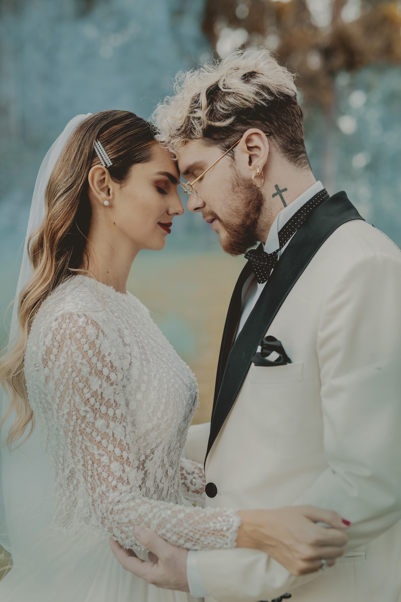 El traje de David lo diseñó Faride Ramos. Fue absolutamente novedoso, propio. Su saco, blanco, tenía en la parte de atrás la cara de Danielle bordada. El pantalón, tenía palabras significativas para ambos: El Tiempo (una canción que él le escribió) Ella, Elle, te amo, para toda la vida…