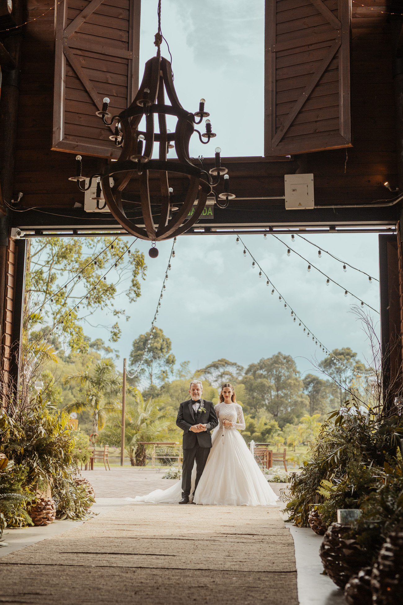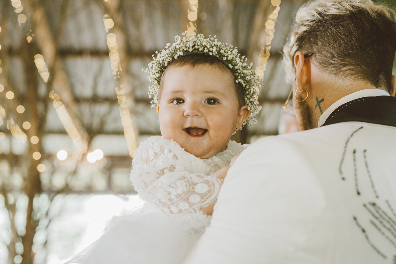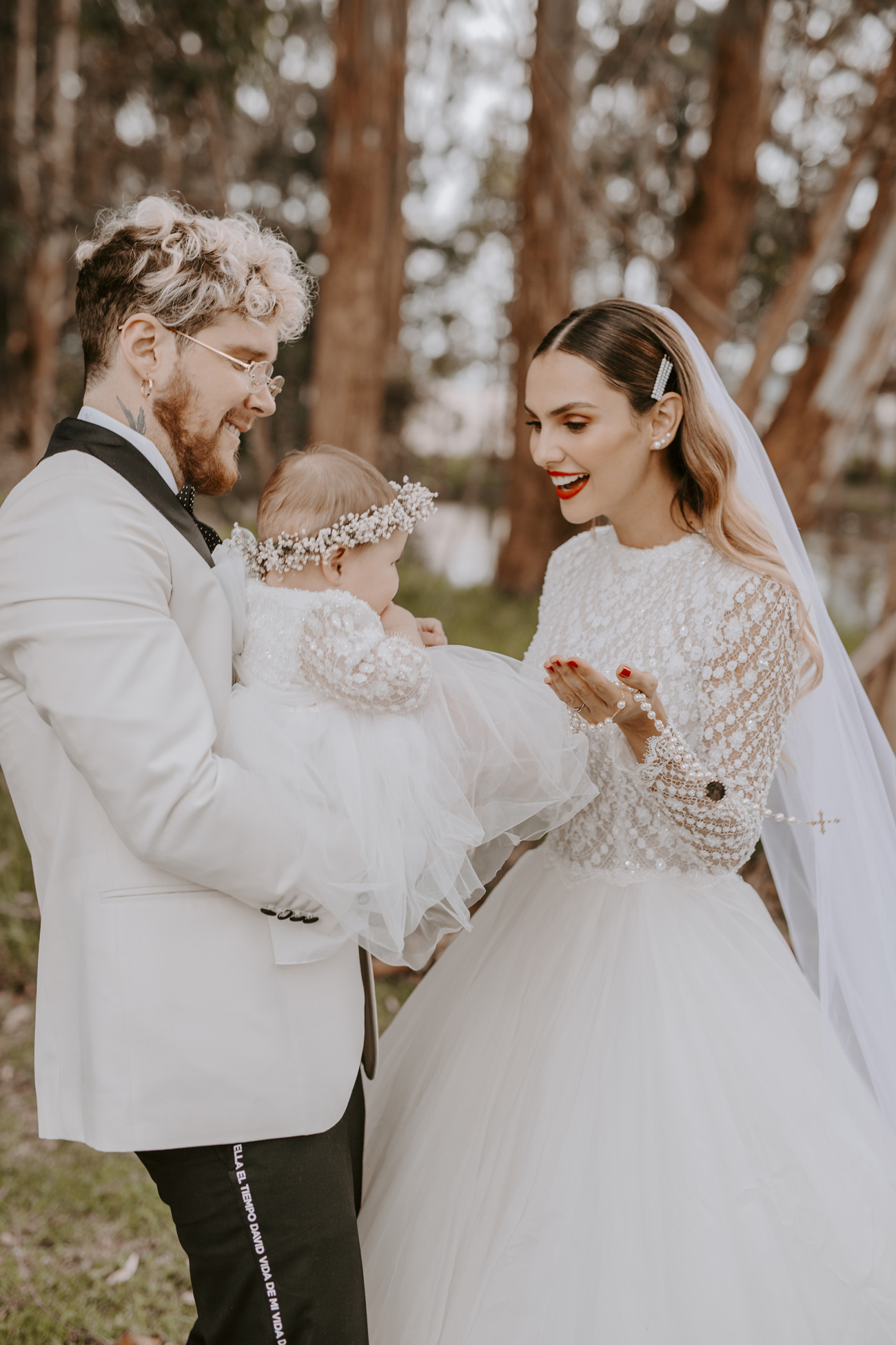 Primero entraron su hermana Juliana y El Profe (amigo de David e integrante de Piso 21) cargando a Ella que estaba dormida. Luego entraron la hermana de David y el hermano de Danielle y, finalmente, entró ella, de la mano de su papá, su amor eterno.