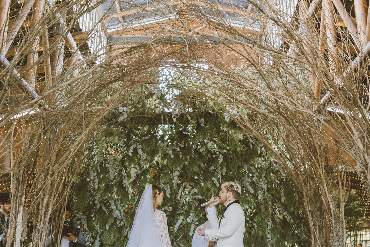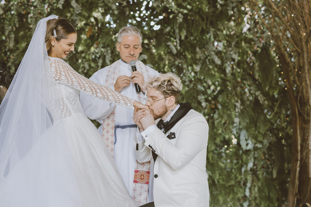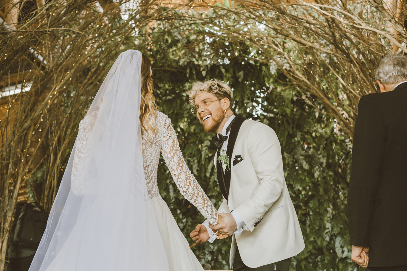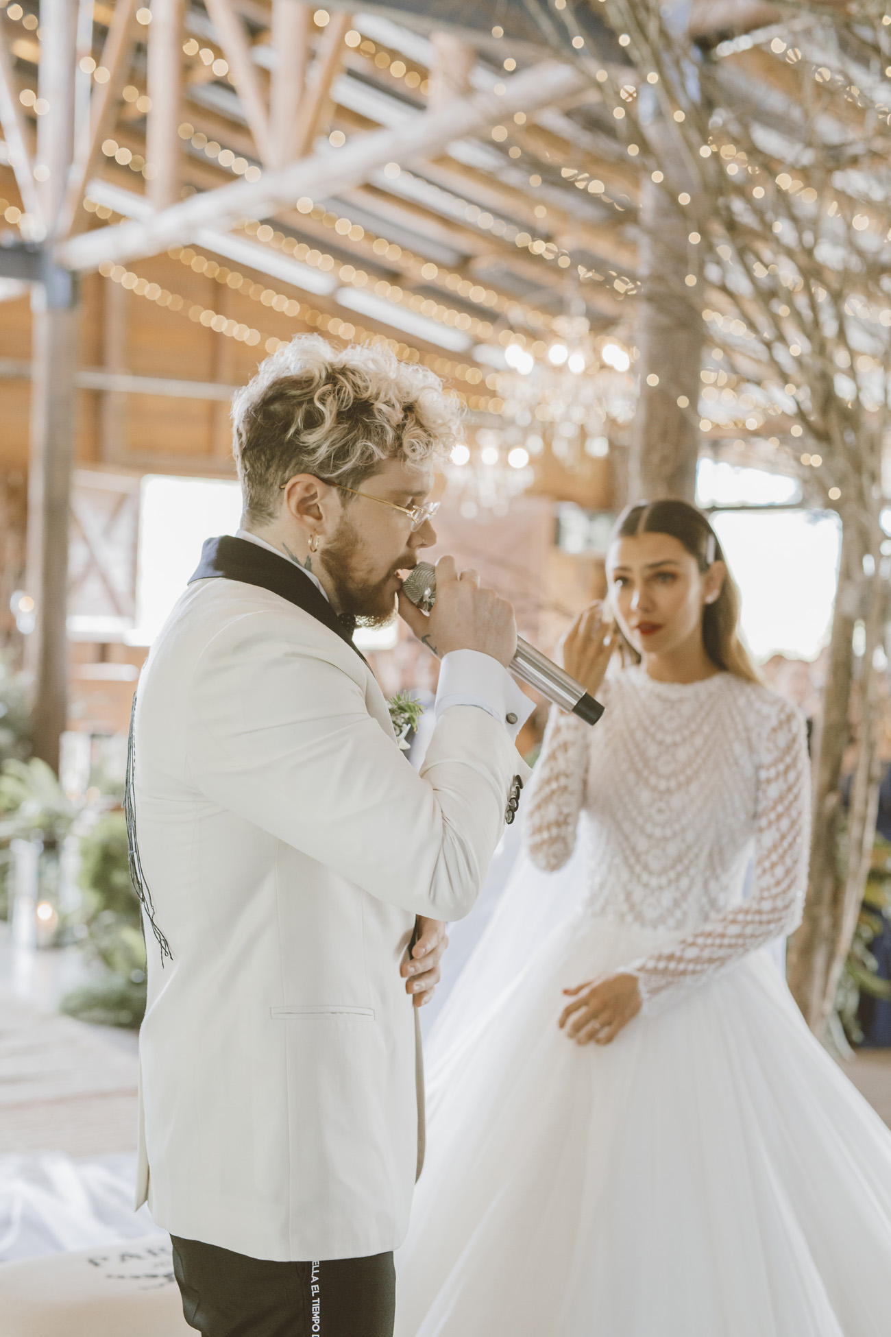 La sorpresa de la ceremonia fueron los votos de David. No tanto porque los cantara, que es como suele expresar sus emociones, sino por la letra tan poderosa que eligió para hacerle saber a Elle, como le dice, que su amor le hace tanto bien:
