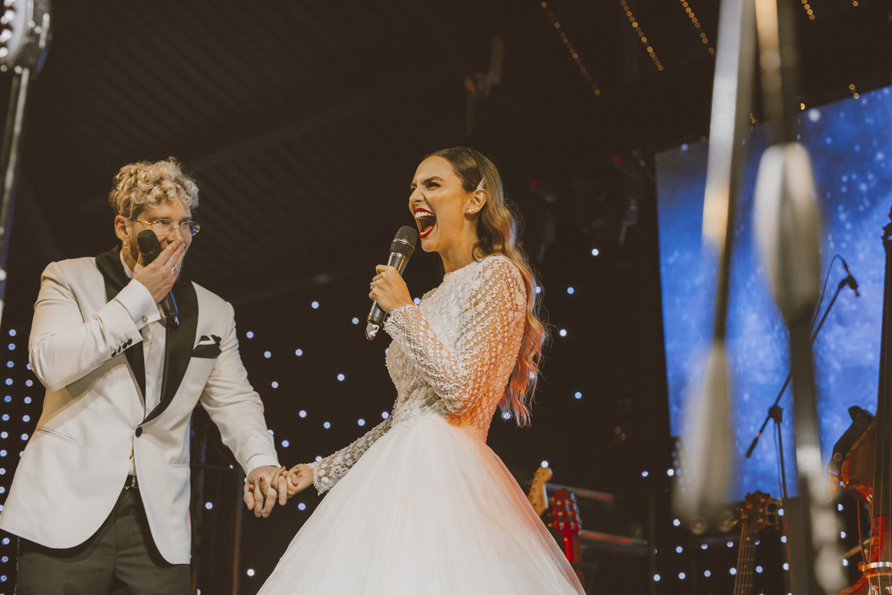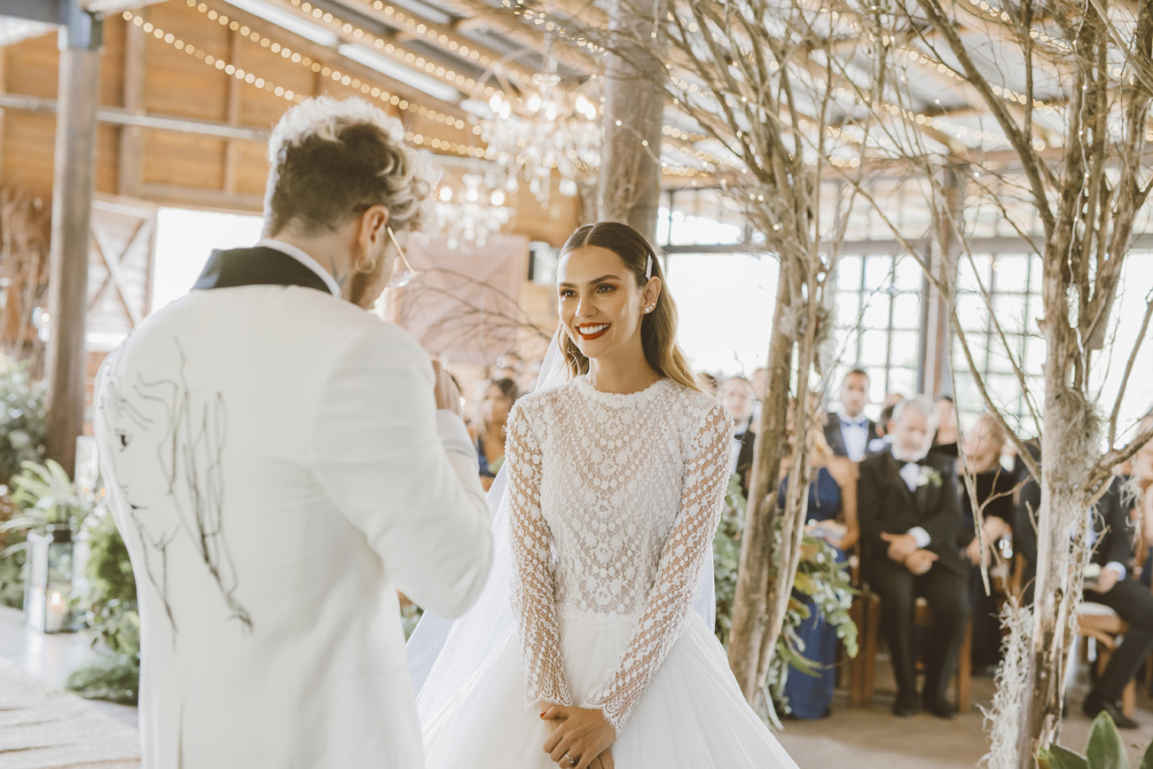 La sorpresa de la ceremonia fueron los votos de David. No tanto porque los cantara, sino por la letra tan poderosa que eligió para hacerle saber a Elle, como le dice, que su amor le hace tanto bien