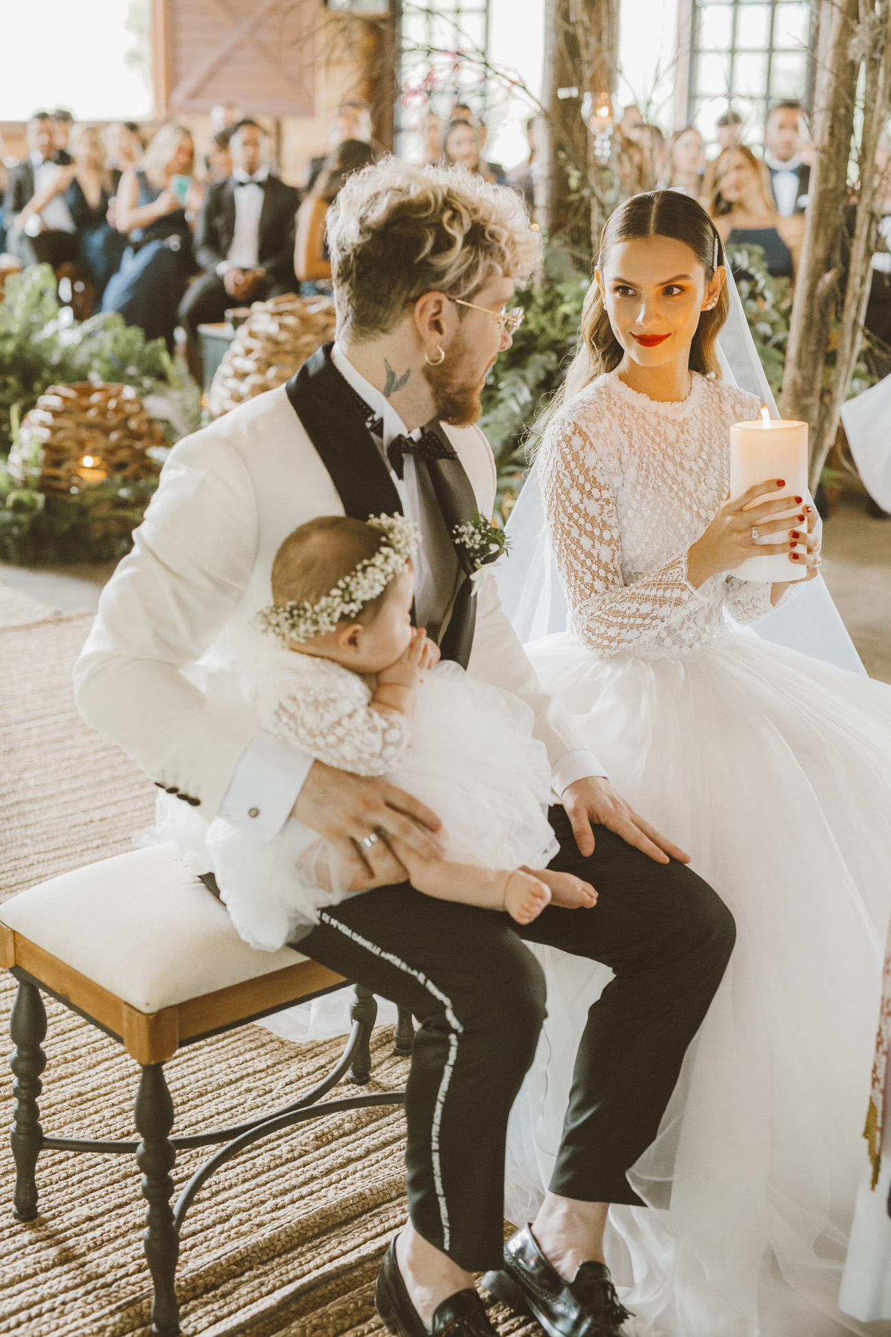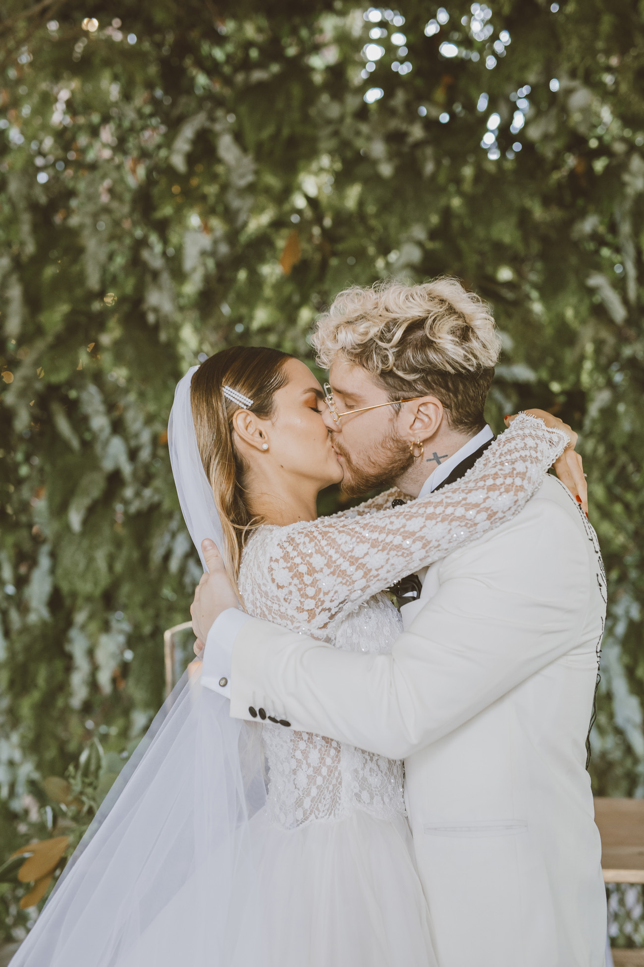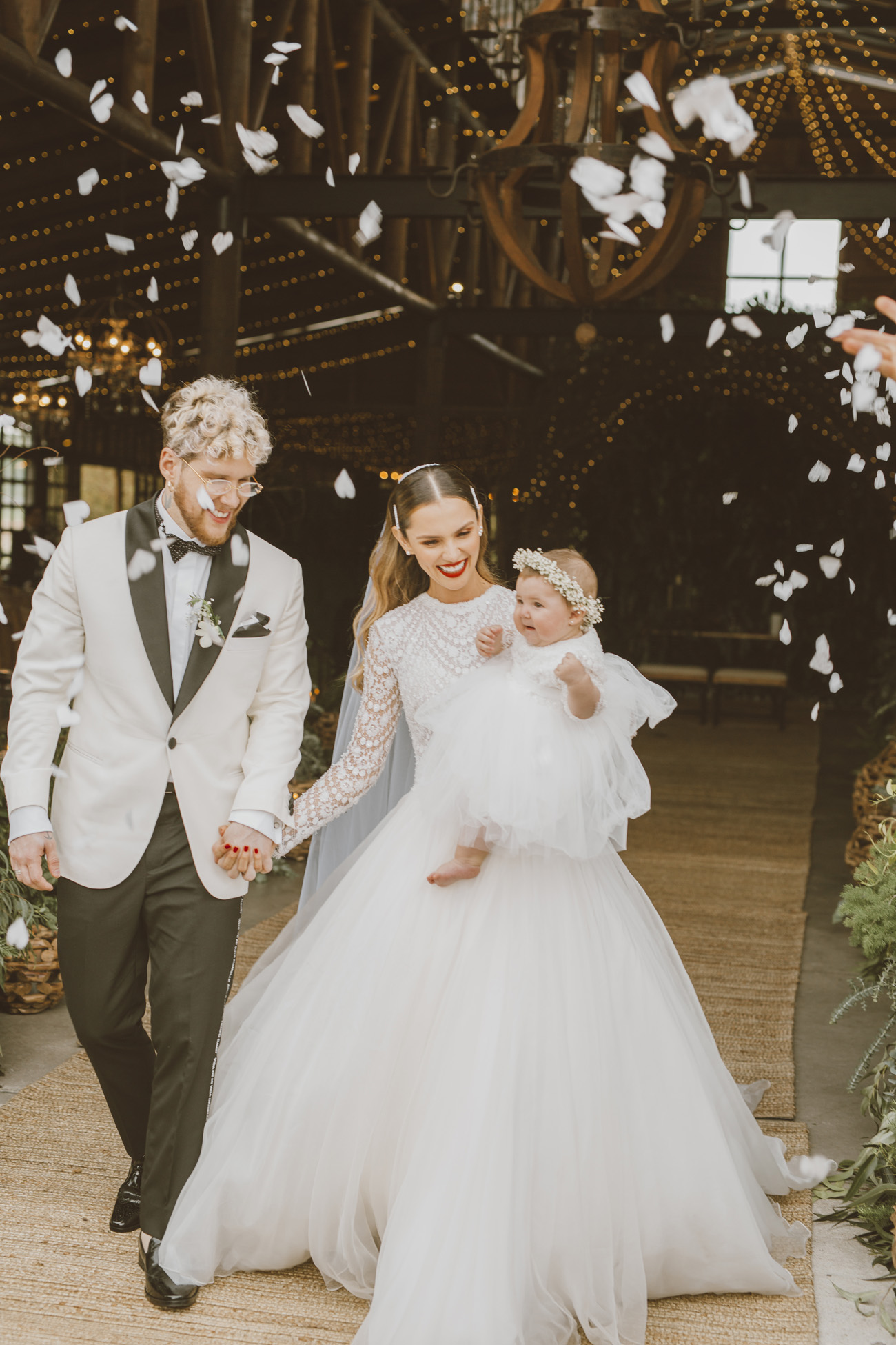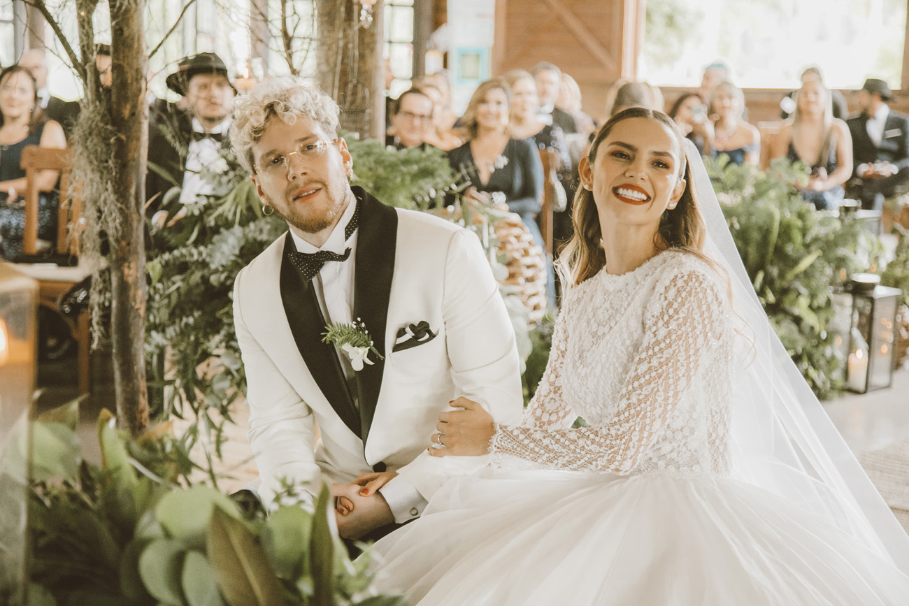 A la salida de la ceremonia, en vez de pétalos, los invitados recibieron unos conos de papel con corazones que llevaban impresas notas musicales (también de papel). El mensaje es muy bonito y poderoso: un amor con música de fondo permanece con sus acordes intactos. Fue una representación del hogar melódico que son, de la vida que viven todos los días.
