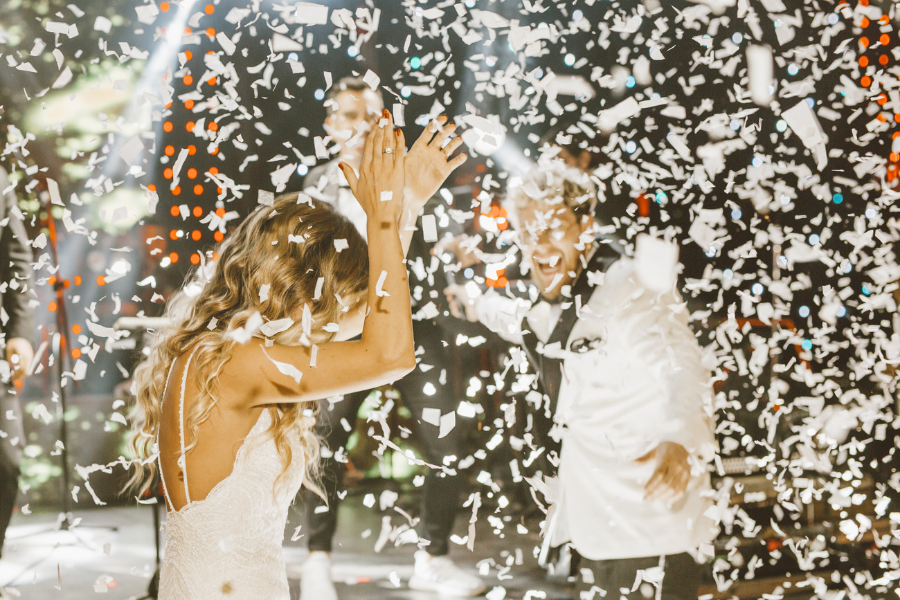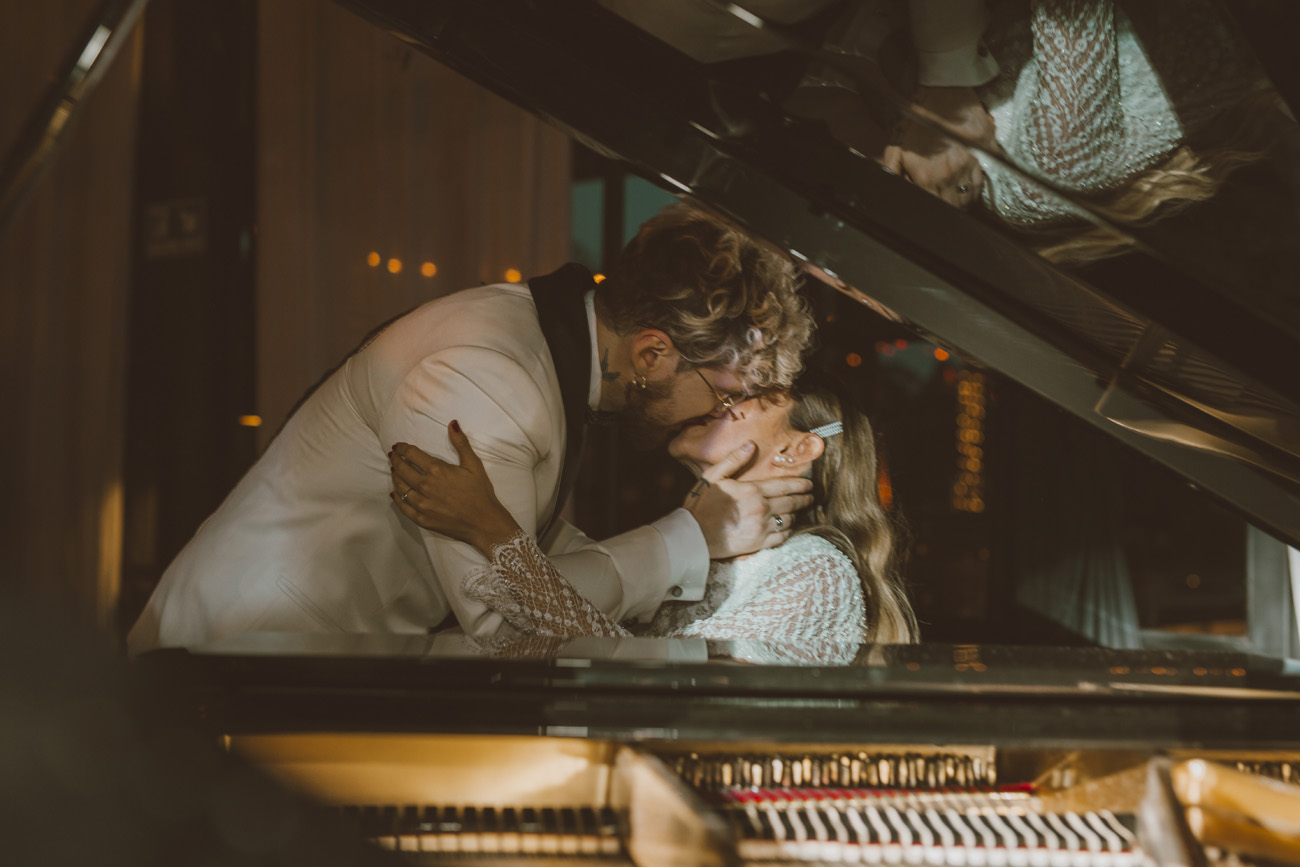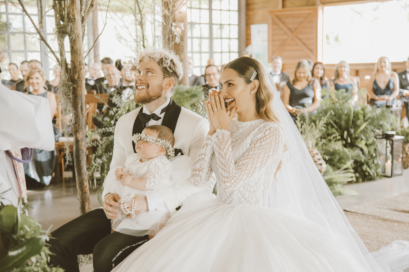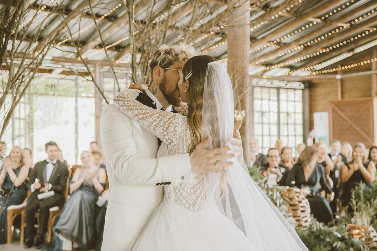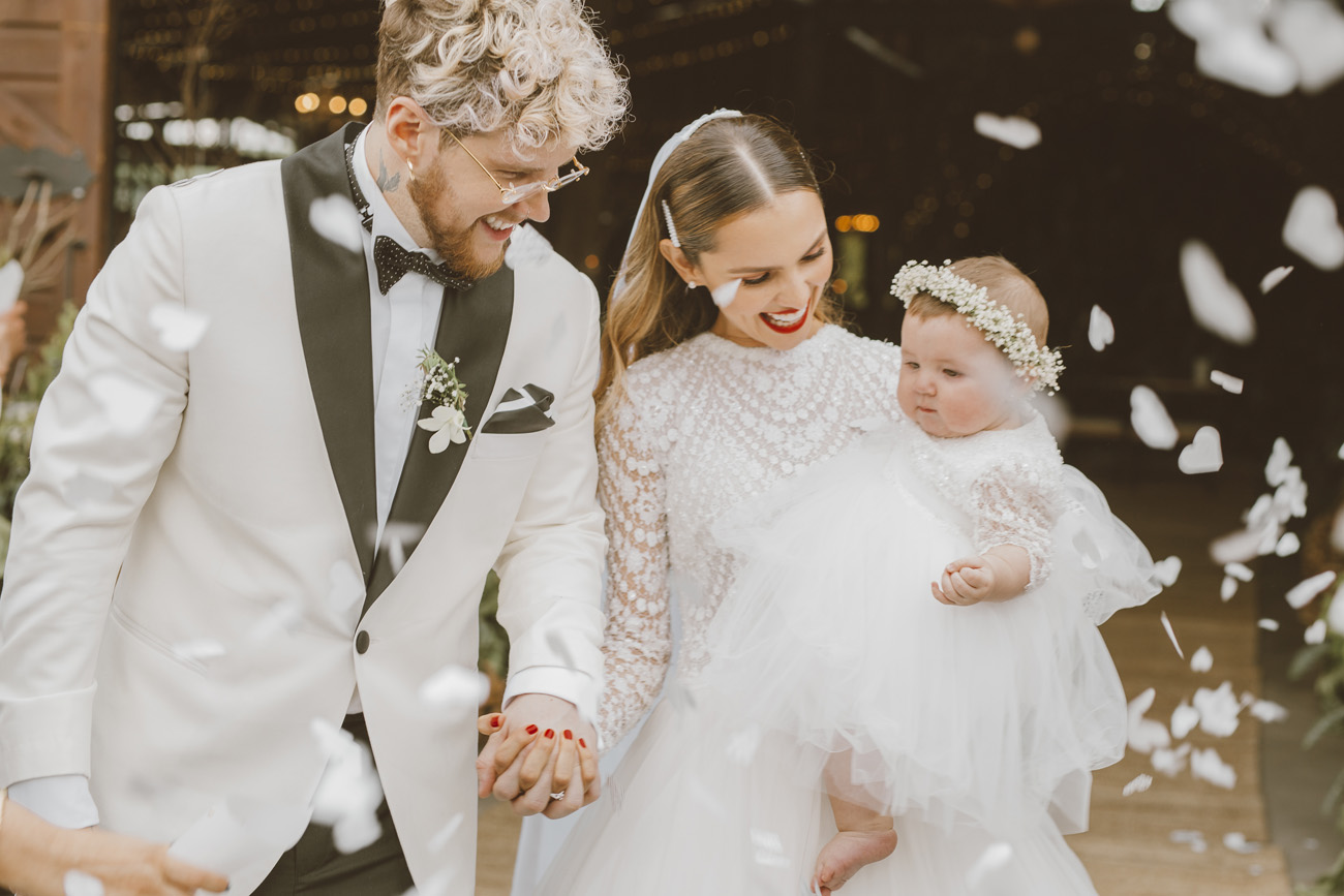 A la salida de la ceremonia, en vez de pétalos, los invitados recibieron unos conos de papel con corazones que llevaban impresas notas musicales (también de papel). El mensaje es muy bonito y poderoso: un amor con música de fondo permanece con sus acordes intactos. Fue una representación del hogar melódico que son, de la vida que viven todos los días.