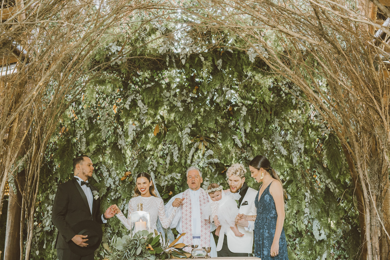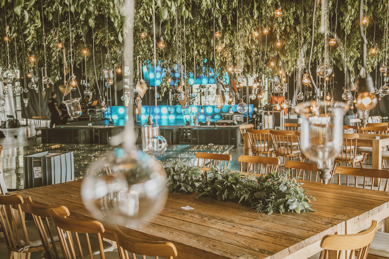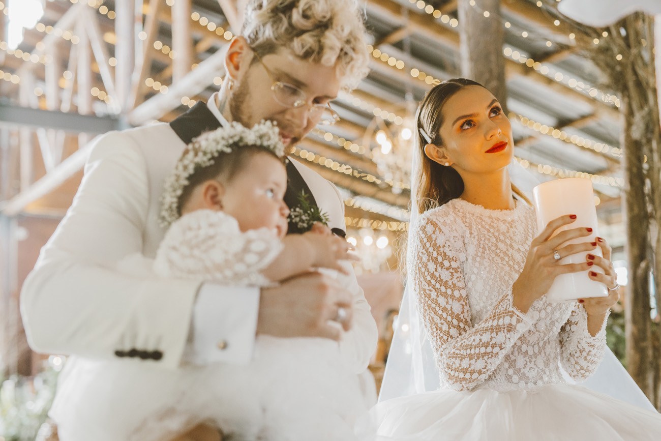 La decoración abarcaba tres momentos: la ceremonia (en El Establo, en Zona E), el coctel y la fiesta (en Casa Bali, en Zona E). El ambiente de todos tuvo la misma línea: mucho follaje verde, orquídeas blancas y luz, siempre luz, mucha luz: natural, de velones, de velas, de faroles, de lámparas. Luz: el sinónimo del amor.