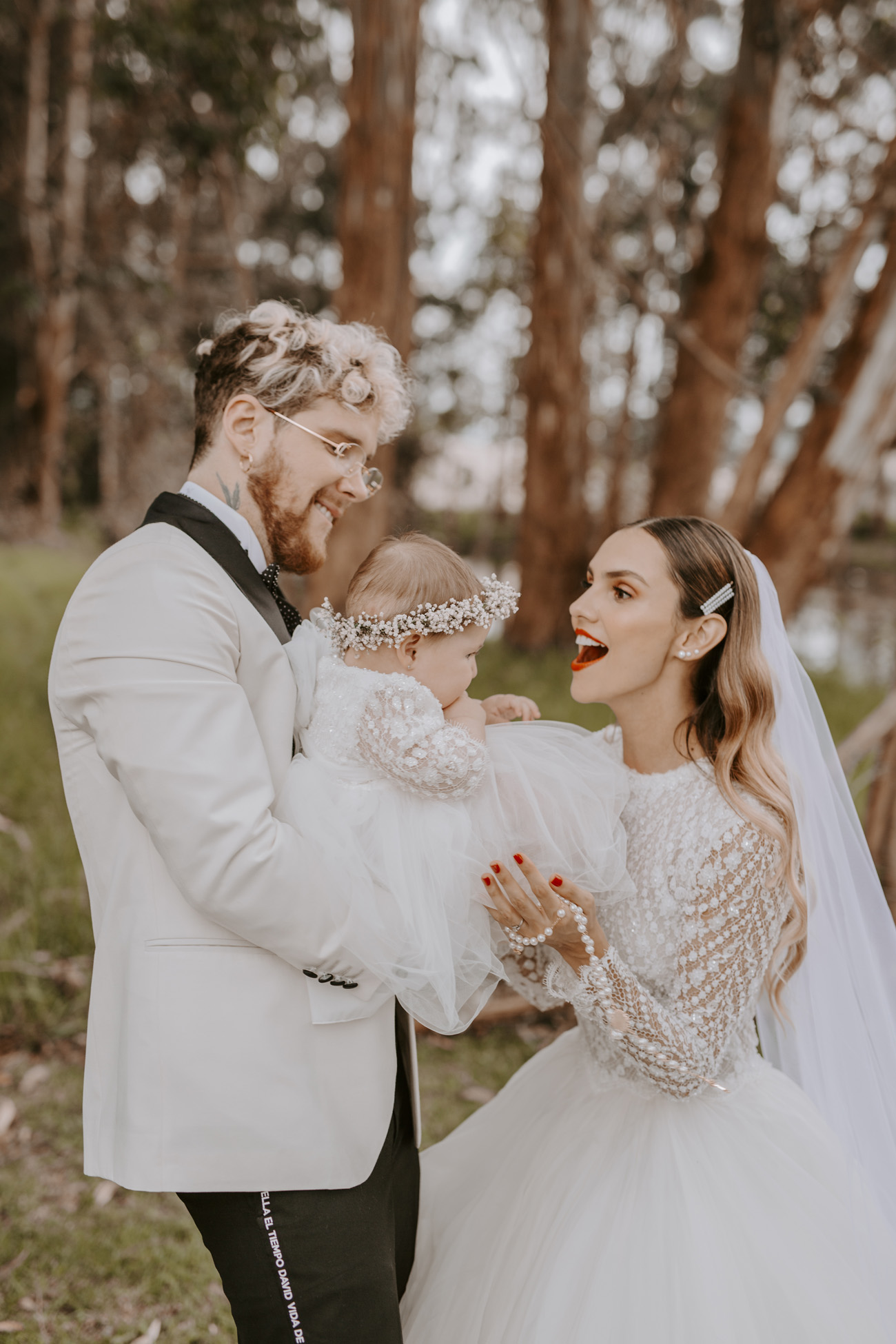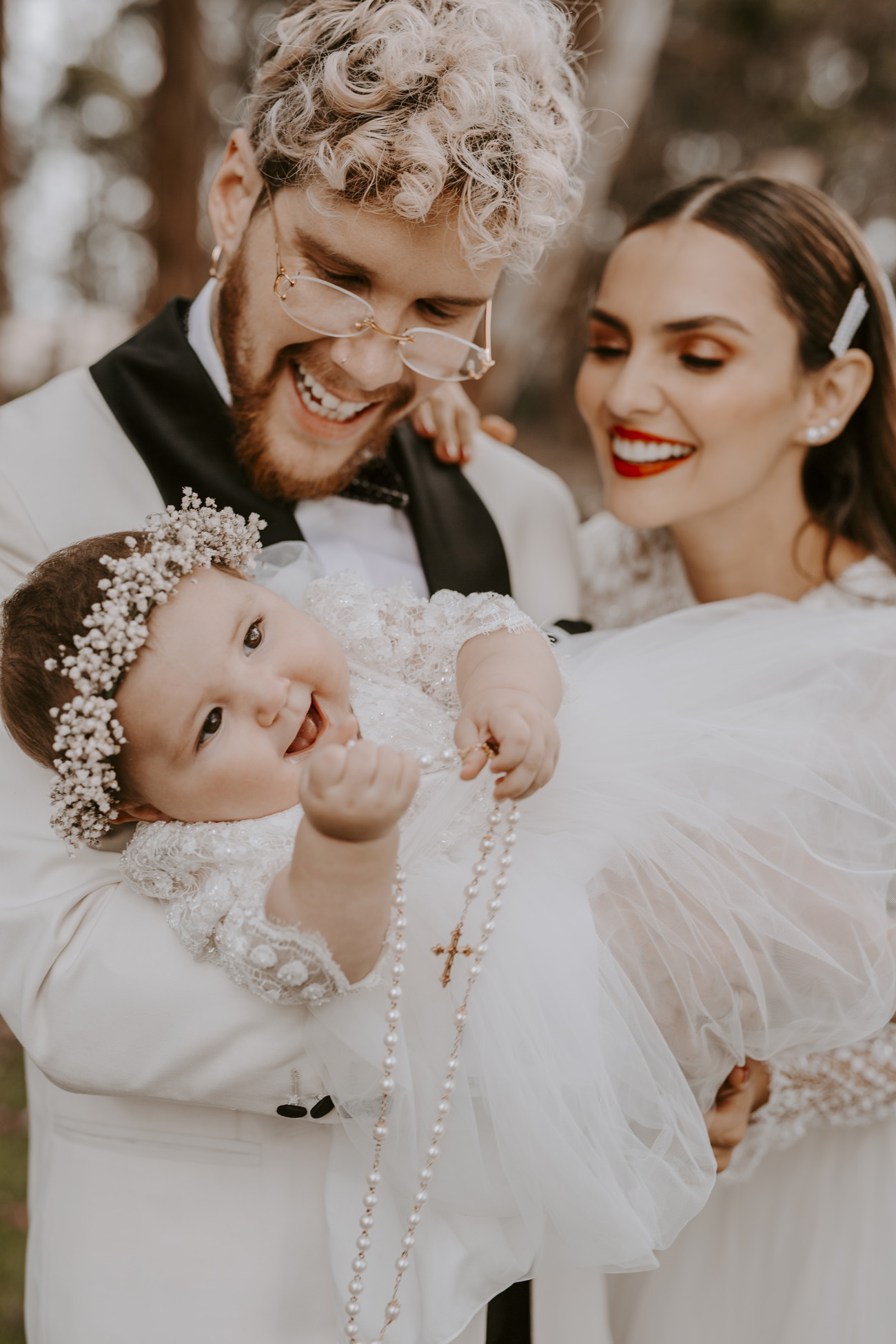 David estudió Comunicación Social, pero es músico. Danielle estudió Derecho, pero es actriz. Se conocieron en 2011, cuando ella estaba presentando la alfombra de los Kids’ Choice Awards, de Nickelodeon. Cuando la vio, dice David, supo que era ella. Se encontraron dos almas que estaban yendo hacia un mismo camino, dice Danielle. Pasaron dos años y medio de estar juntos, de comprobar que el amor siempre llega a tiempo, de imaginar una vida muy cerquita del otro y, de pronto, los sorprendió la llegada de Ella.