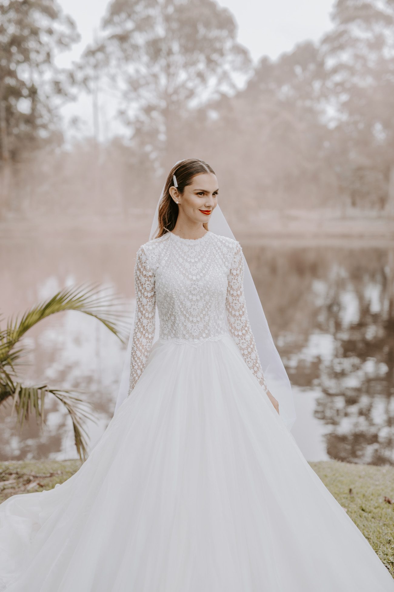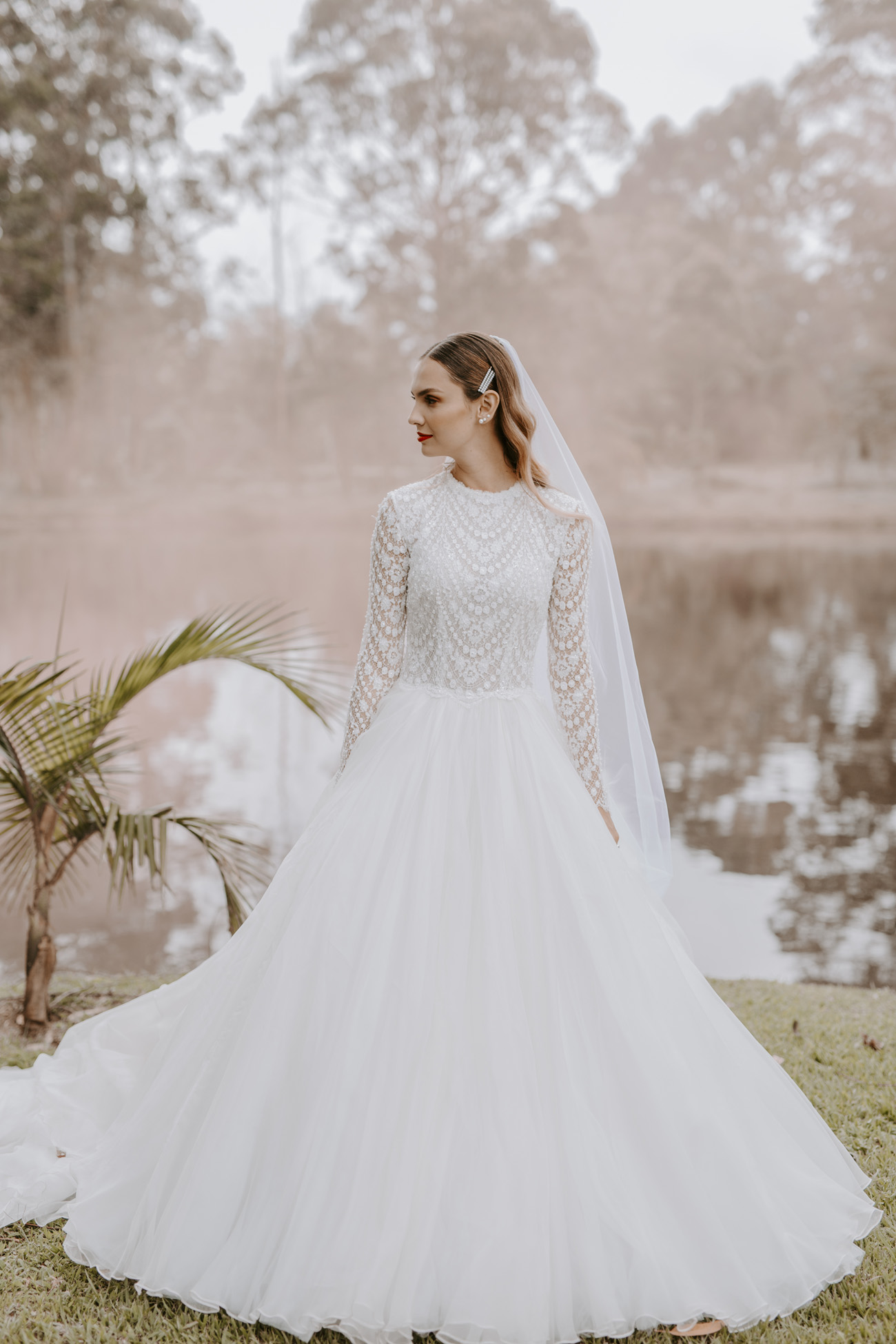 Lo diseñó y lo materializó Rosa Clará y se lo enviaron desde Barcelona. Manga larga, cuello alto, sin escotes, con un cuidadoso bordado que cubría toda la parte de arriba y le daba inicio a una falda suelta, amplia, imponente, impecable. Sensualidad al esplendor