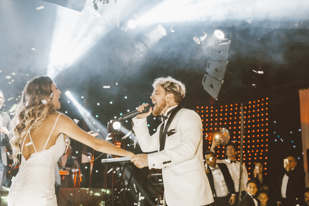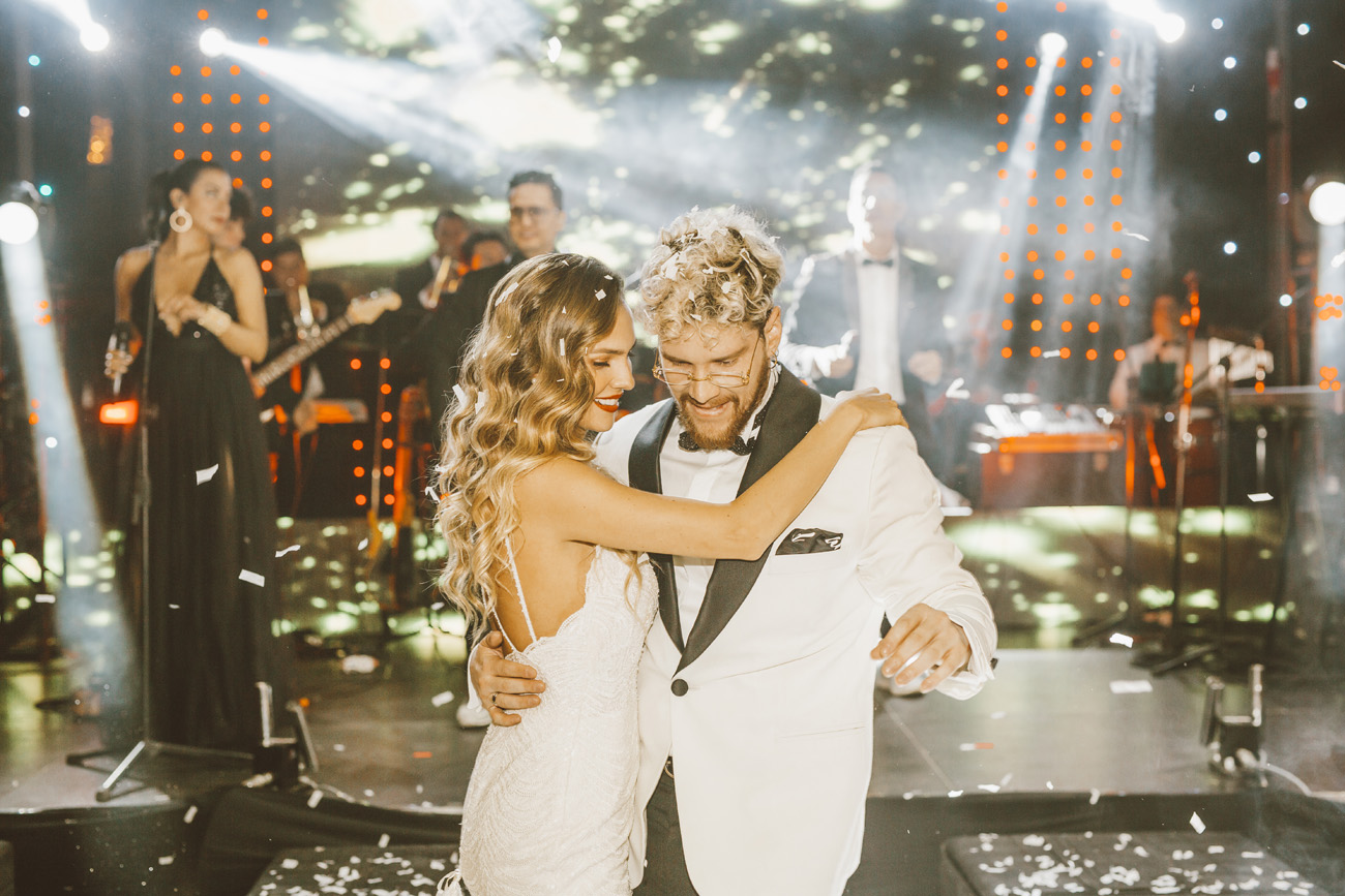 Hubo música siempre. Pipe Ángel, amigo cercano de David y músico, estuvo a cargo. Para la ceremonia: emotiva, suave. Para ir afilando ánimos durante el coctel: son cubano y boleros. Para la fiesta: un repertorio previamente elegido por David y por Danielle que incluyó concierto clásico, salsa, merengue, reguetón, concierto de Piso 21 con show full y, por último, una parranda vallenata que logró que los ánimos terminaran en punta.