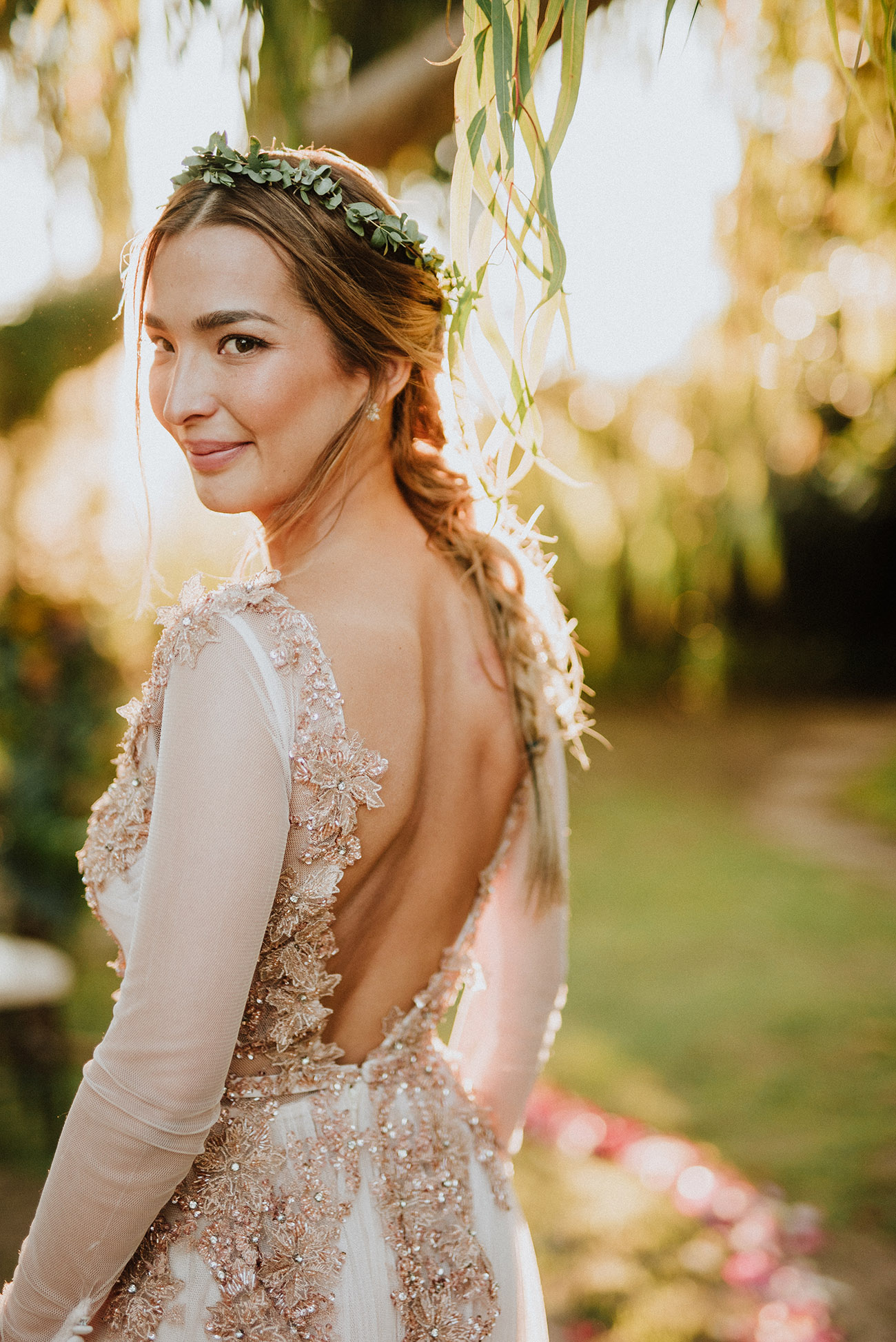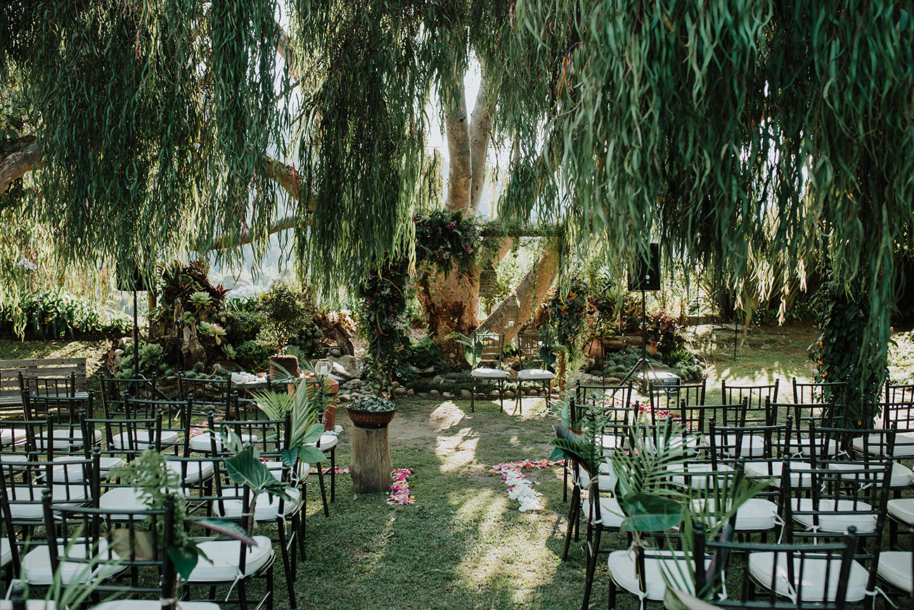 Para el concepto también se cuestionaron cuáles eran —y son— sus propósitos de vida, qué visión tienen de su paso por la tierra, qué semilla le están aportando al universo que tanto les ha retribuido a ellos. De esta manera, concluyeron que querían una celebración cero residuos, donde el origen natural fuera el foco. Querían una finca, que tuviera diferentes escenarios y como las ramas de esta historia terminan conectándose entre sí, encontraron esa finca, esos escenarios. Encontraron Los Magnolios.