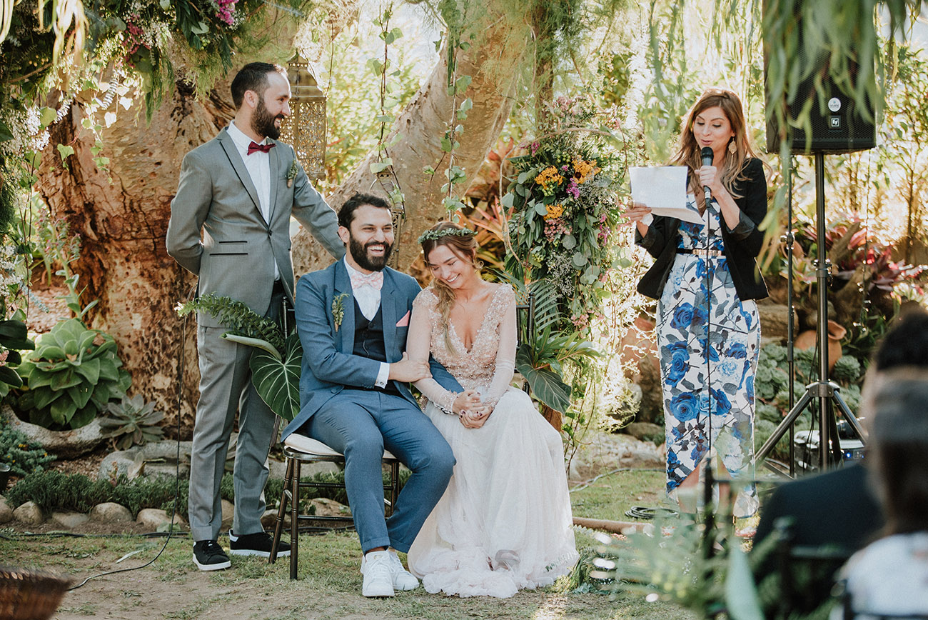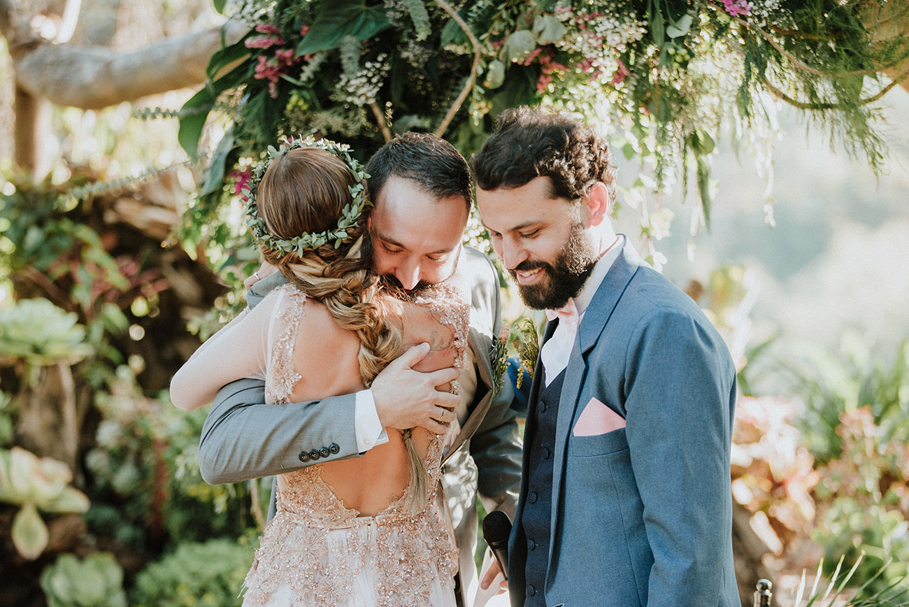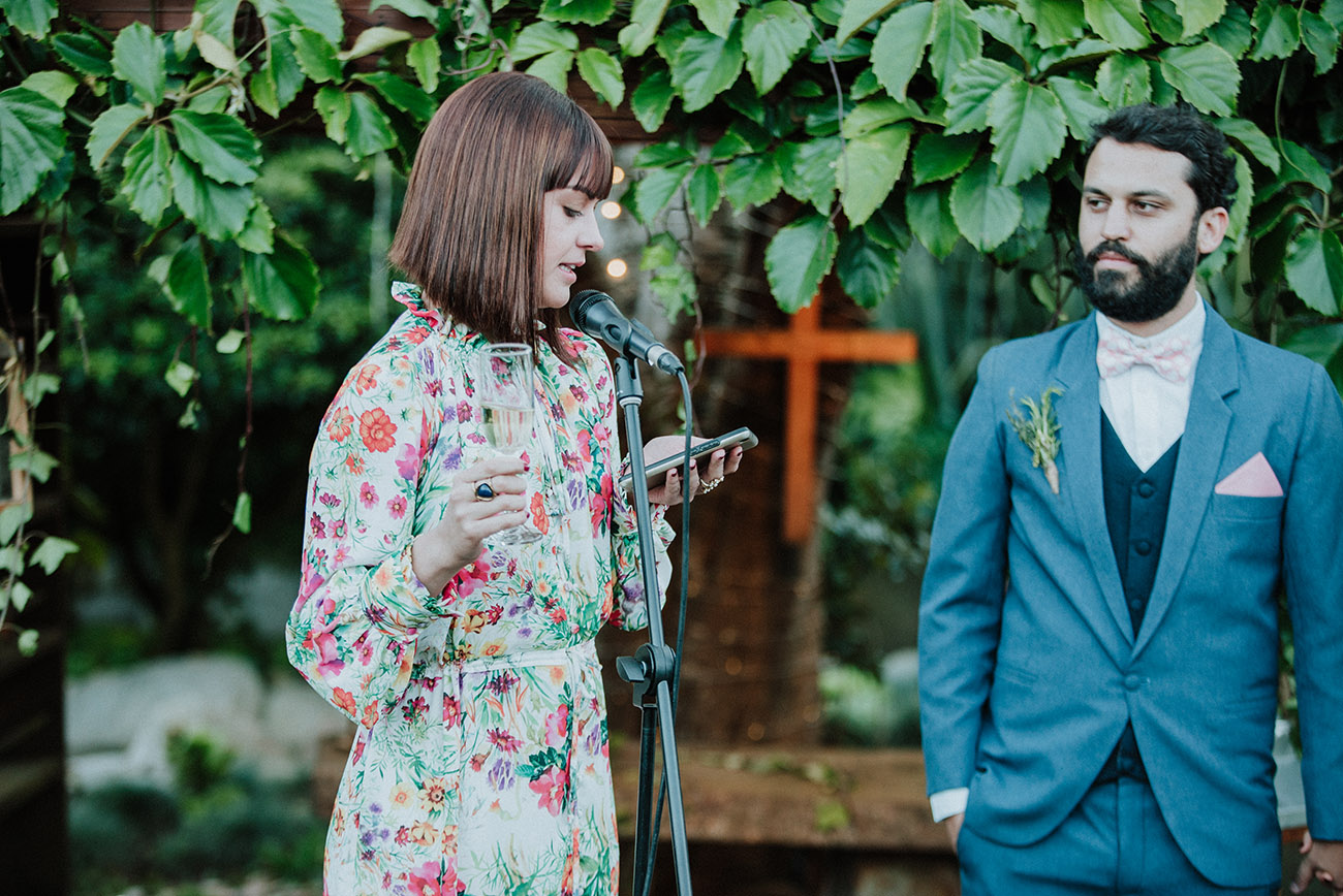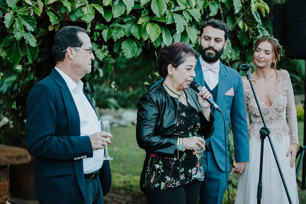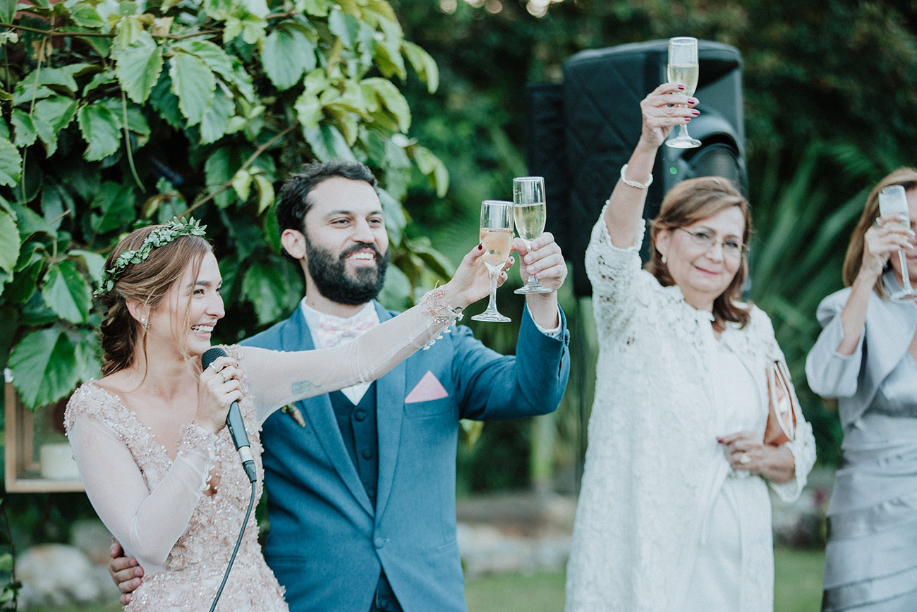 “A nuestras familias y amigos, a los que vinieron, a los que no pudieron. Por la buena energía. Por rodearnos de amor y buenos deseos. Por creernos y querernos así. Por este día tan maravilloso. Por coincidir. Por compartir. A la naturaleza. Gracias por aportar con su magia. Ahora, sigue devolver todo lo que usamos al ciclo de la vida. ¡Gracias!”