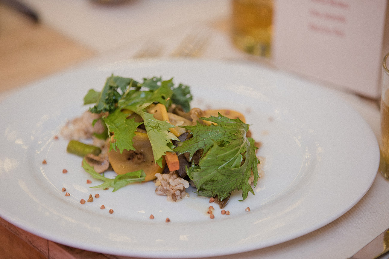 Fue una cena de cuatro tiempos: crema de ahuyama con jengibre y coco, caraotas con zetas, vegetales con cereales y, por último, paletas de mojito.
