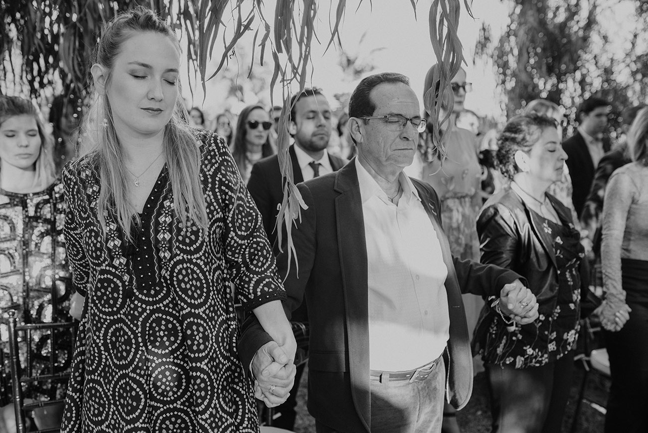 Se tomaron de las manos, ellos y todos los invitados, para regalarle al mundo una meditación guiada por Marcela. Enviándole una colección de energías.