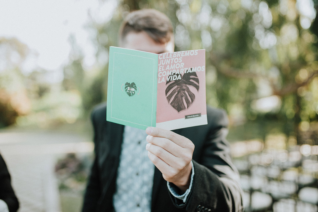 A cada invitado que llegaba, lo recibían con una bebida natural y un librito. Un librito que explicaba, pero en realidad era una interpretación, un resumen de la vida, los gustos, la esencia de Irina y de Mauricio.