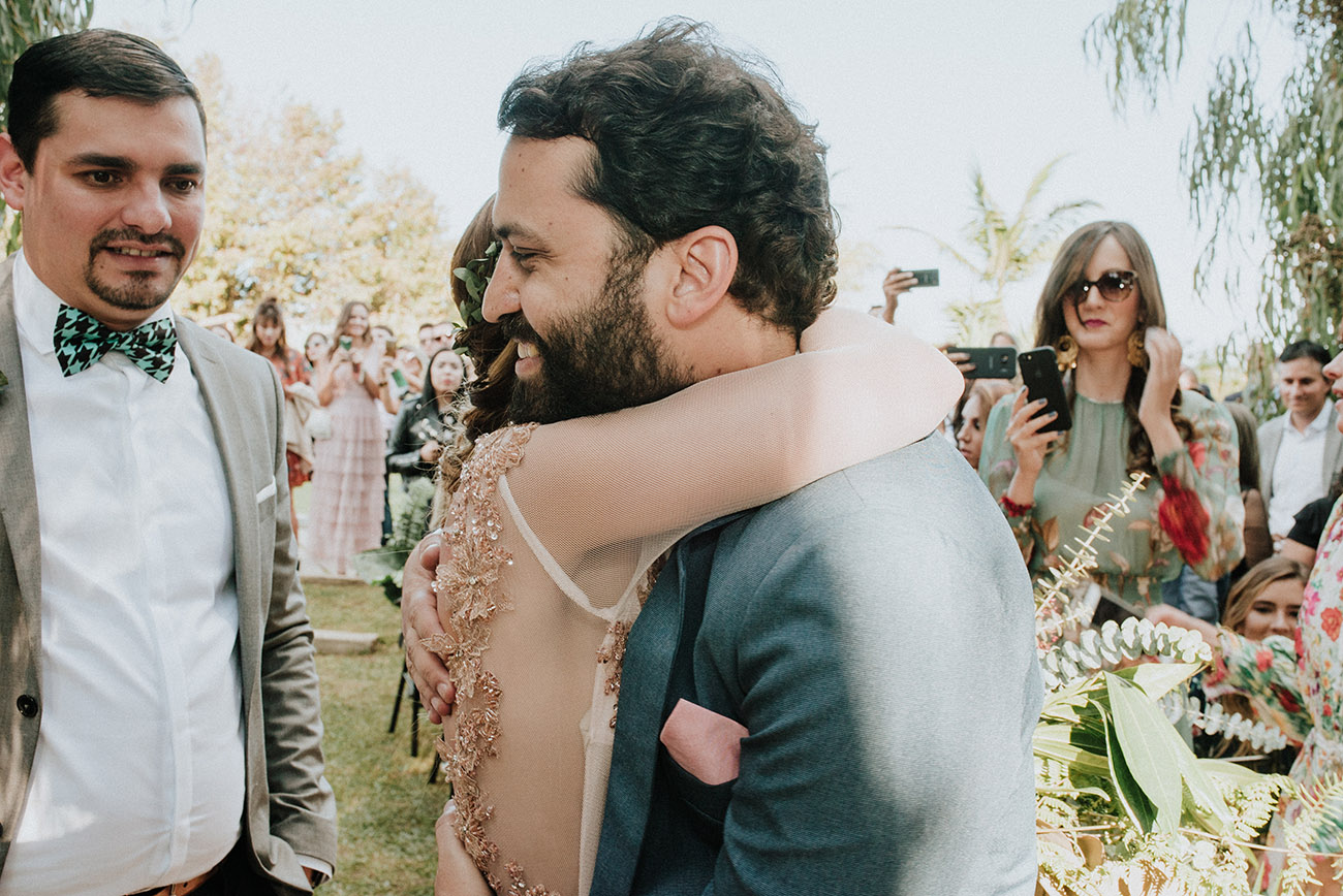 Esperar a que Irina entrara de la mano de Andrés, su hermano; su otro bastón, su cómplice de dolores y risas en esta historia. Esperar mientras leían el librito, mientras el sol (que era Roci iluminando desde arriba) les daba calidez. Esperar y por fin, verla a ella, abrazando a sus suegros, a quienes agradece tanto cariño sincero; abrazando a Mauricio, a quien adora con la fuerza de la lealtad.