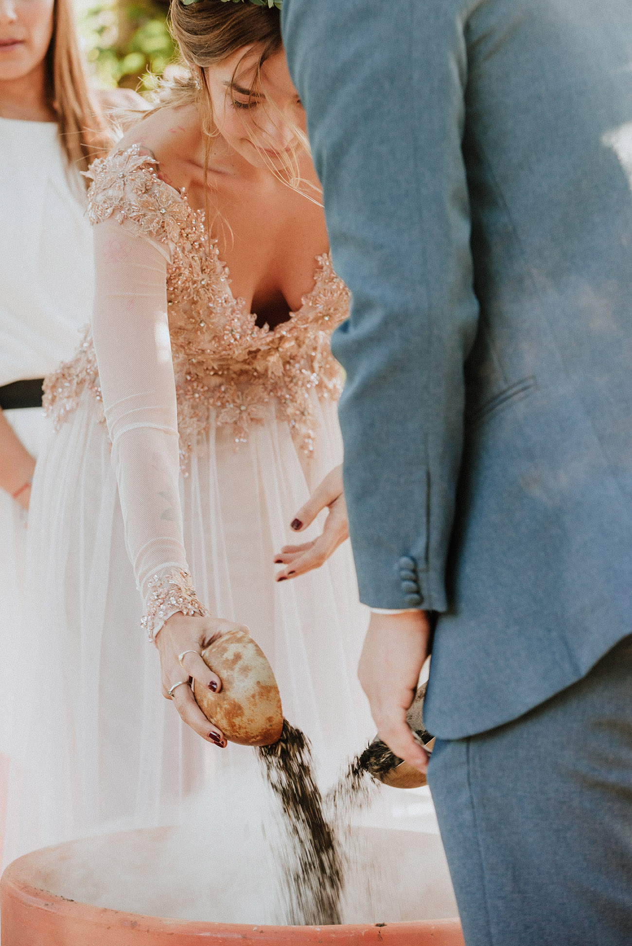 Para este ritual, leyeron y buscaron mucho. Ambos recurren a la espiritualidad, pero no a la religión. La naturaleza, que siempre les ha enviado señales, de nuevo fue guía. Contrataron a Marcela, una mujer serena, de energía equilibrada que, aunque no se dedica a hacer rituales, aprendió uno hindú que los conectó.