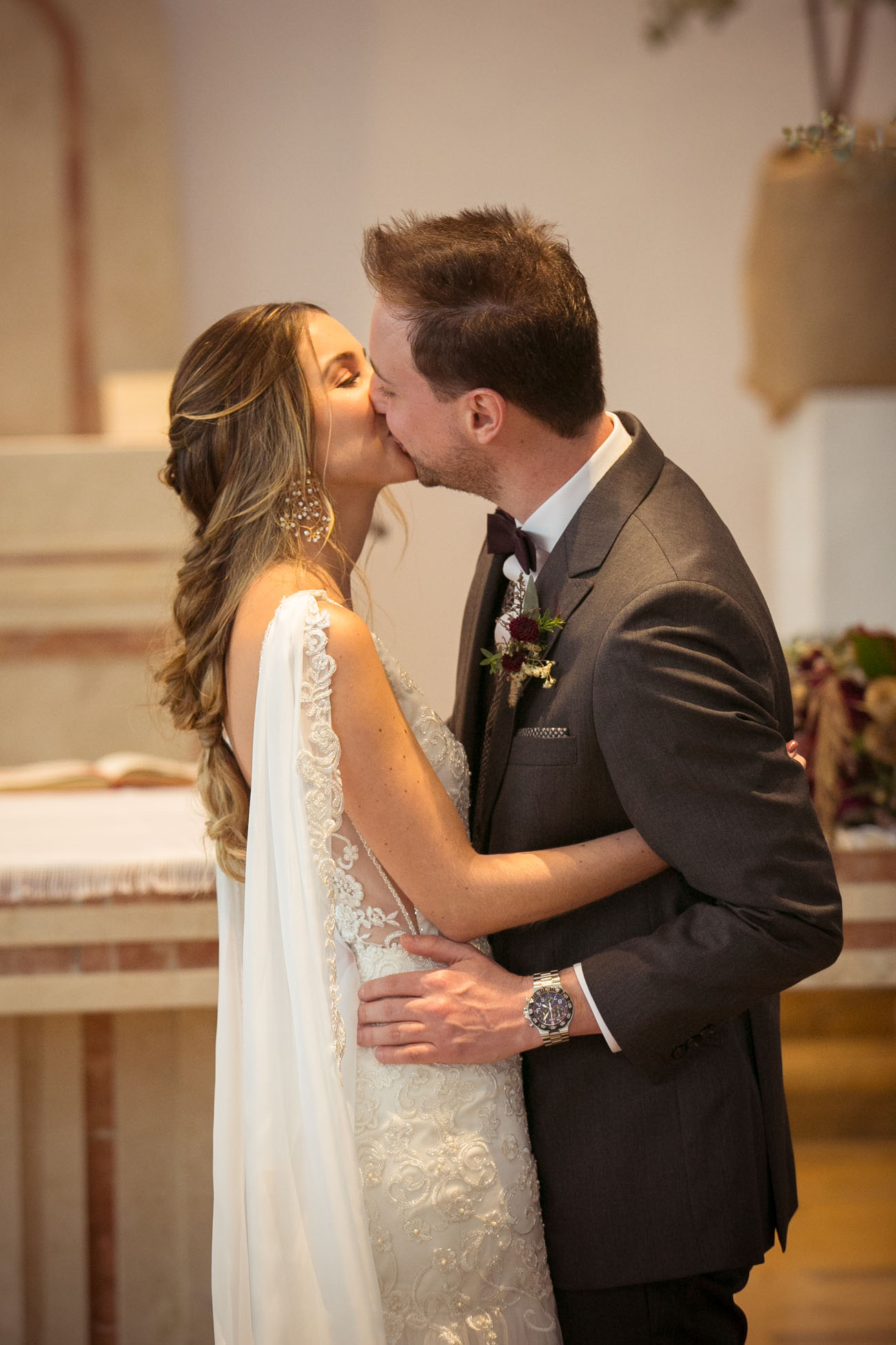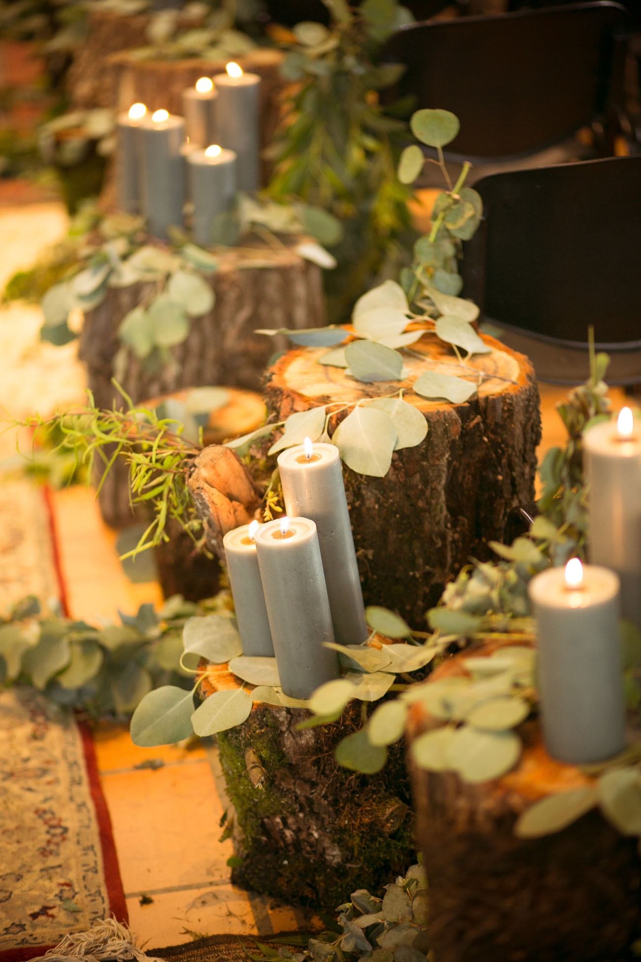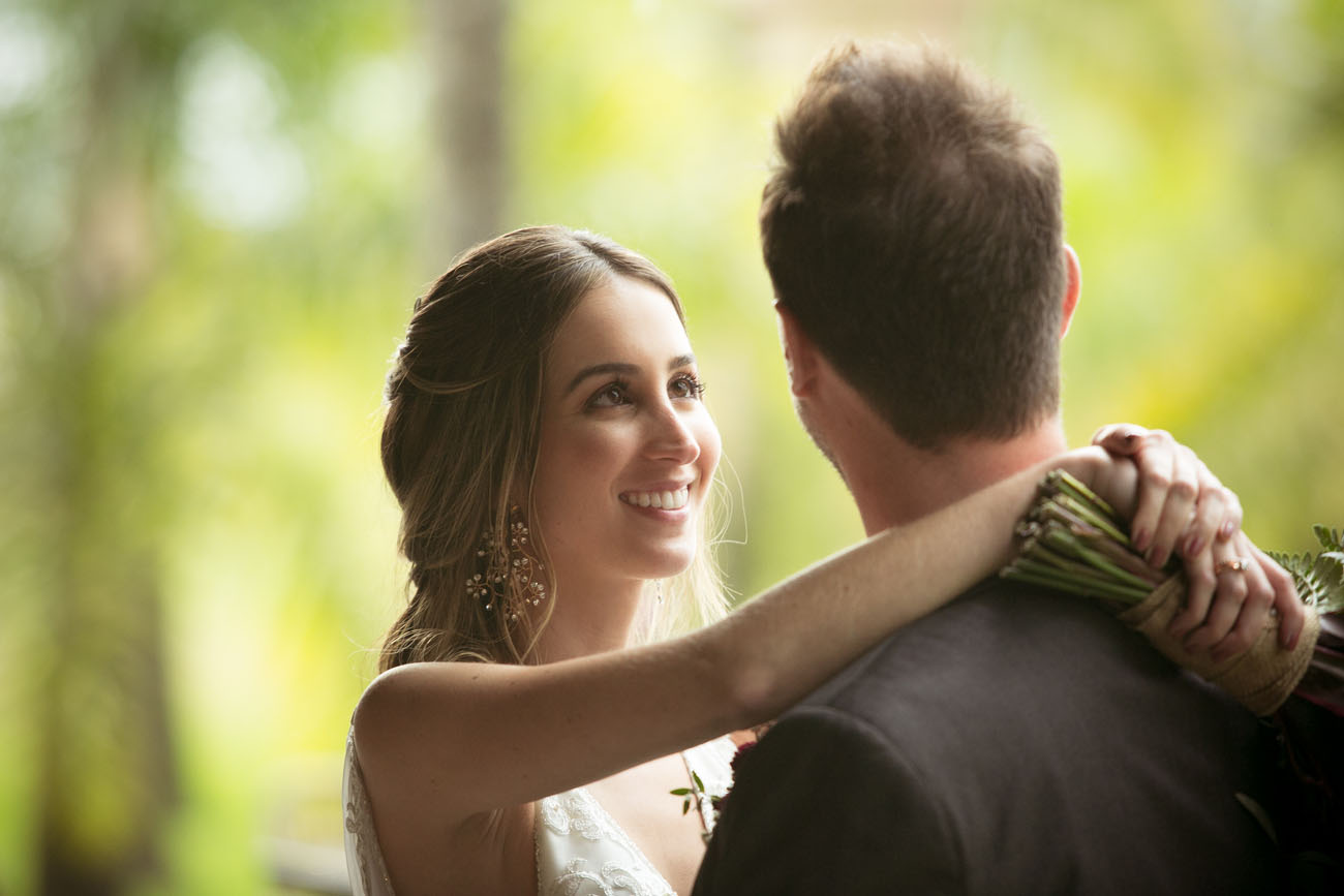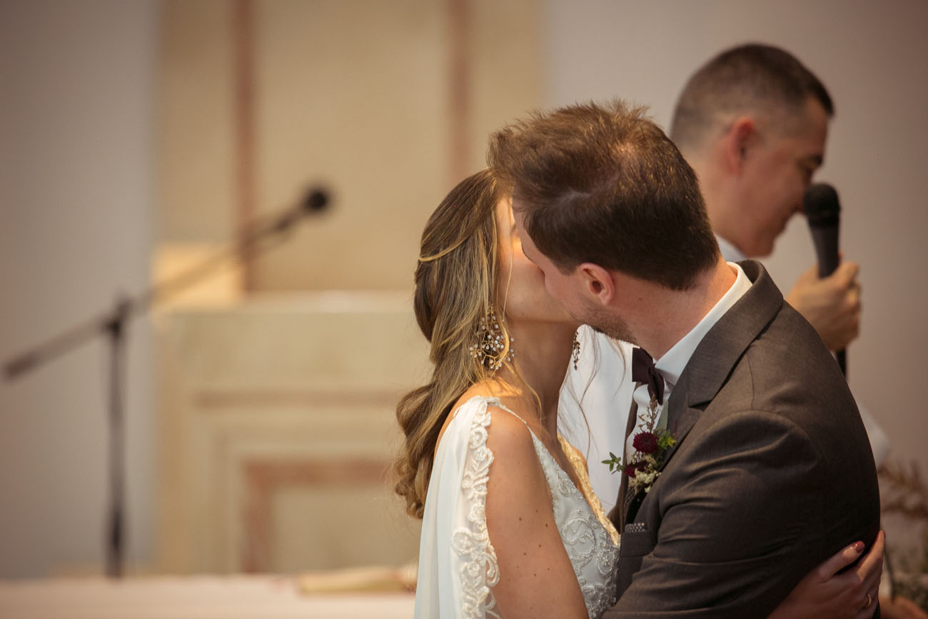 Su personalidad perfeccionista y su obsesión de arquitecta por los detalles, no le permitieron tener wedding planner. Tuvo wedding day -Isabel Estrada- para que la ayudara con la logística, pero fue ella quien se encargó de armar la celebración. Quiso un ambiente romántico, muy alusivo a otra época con toques bohemios. Quiso velas grises, individuales y lámparas en mimbre, candelabros y mucho verde en forma de eucaliptos. Quiso contrastar ese follaje con tonos palo de rosa y vinotintos. En la iglesia quiso muchos tapetes y troncos de madera y de nuevo, árboles de eucalipto que dieran la sensación de refugio, de calidez. Quiso que el ambiente en general se viera uniforme, desestructurado, que no todo fuera idéntico: en algunas mesas había copas de colores, en otras de cristal, algunas lisas, otras con texturas… Mientras Juliana ajustaba cada detalle, Alejandro se encargó de la música: Maritza, una artista que toca en Ambiente Living, fue la elegida para la comida y dj Jose Vargas el encargado de animar el resto de la noche, incluyendo la hora loca tropical.