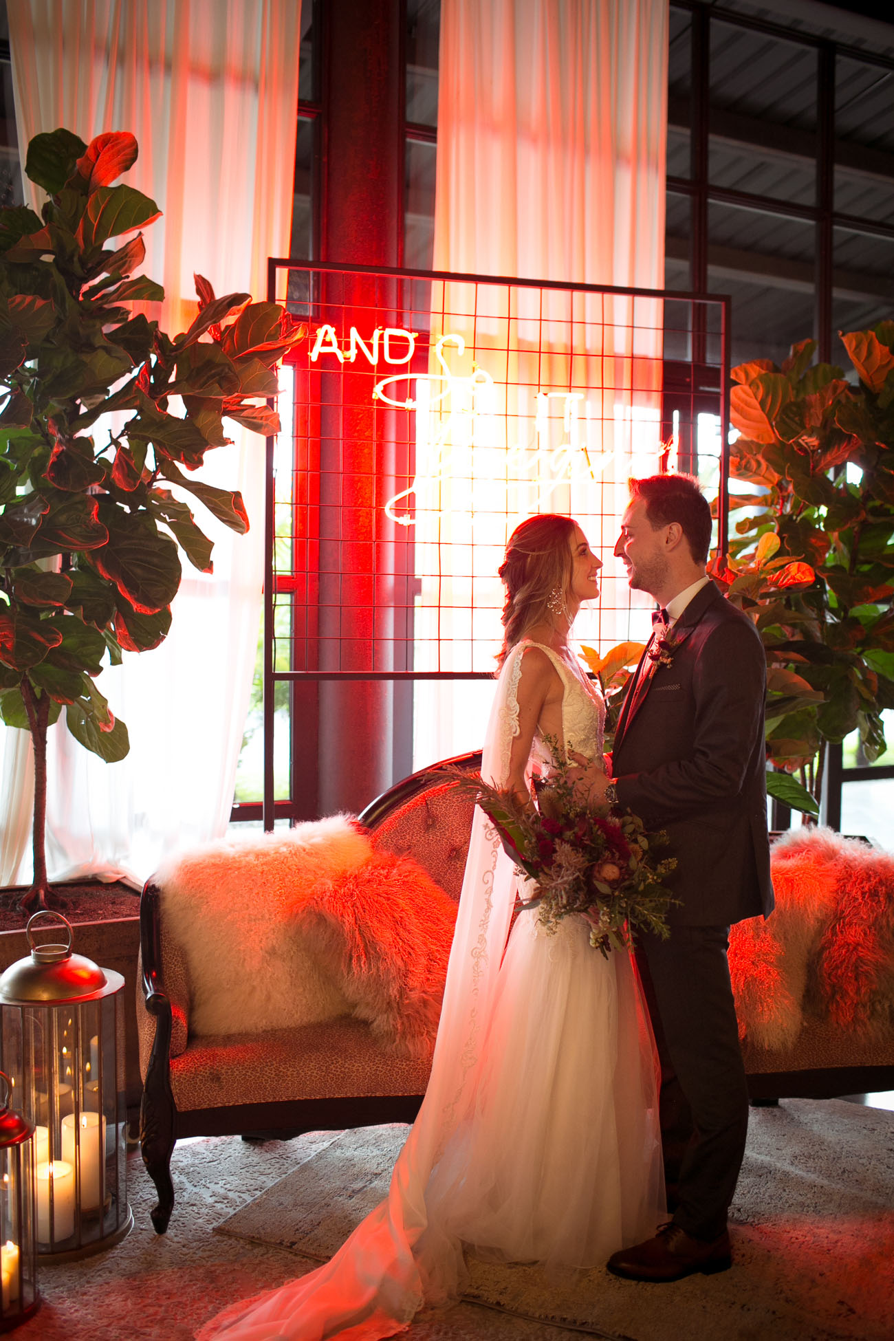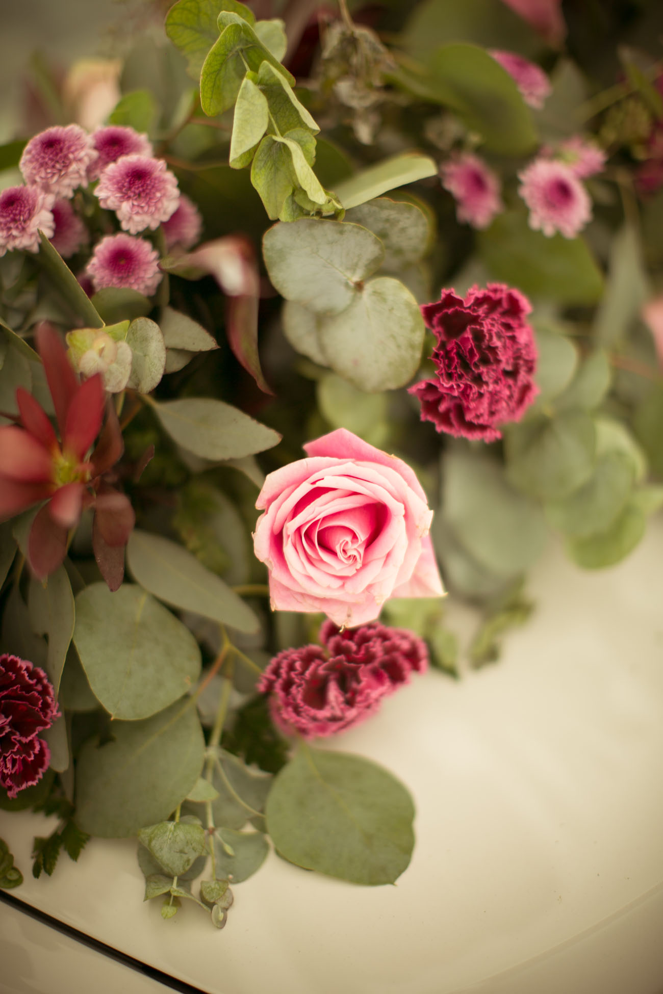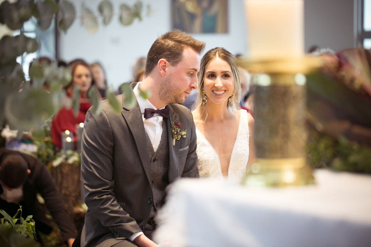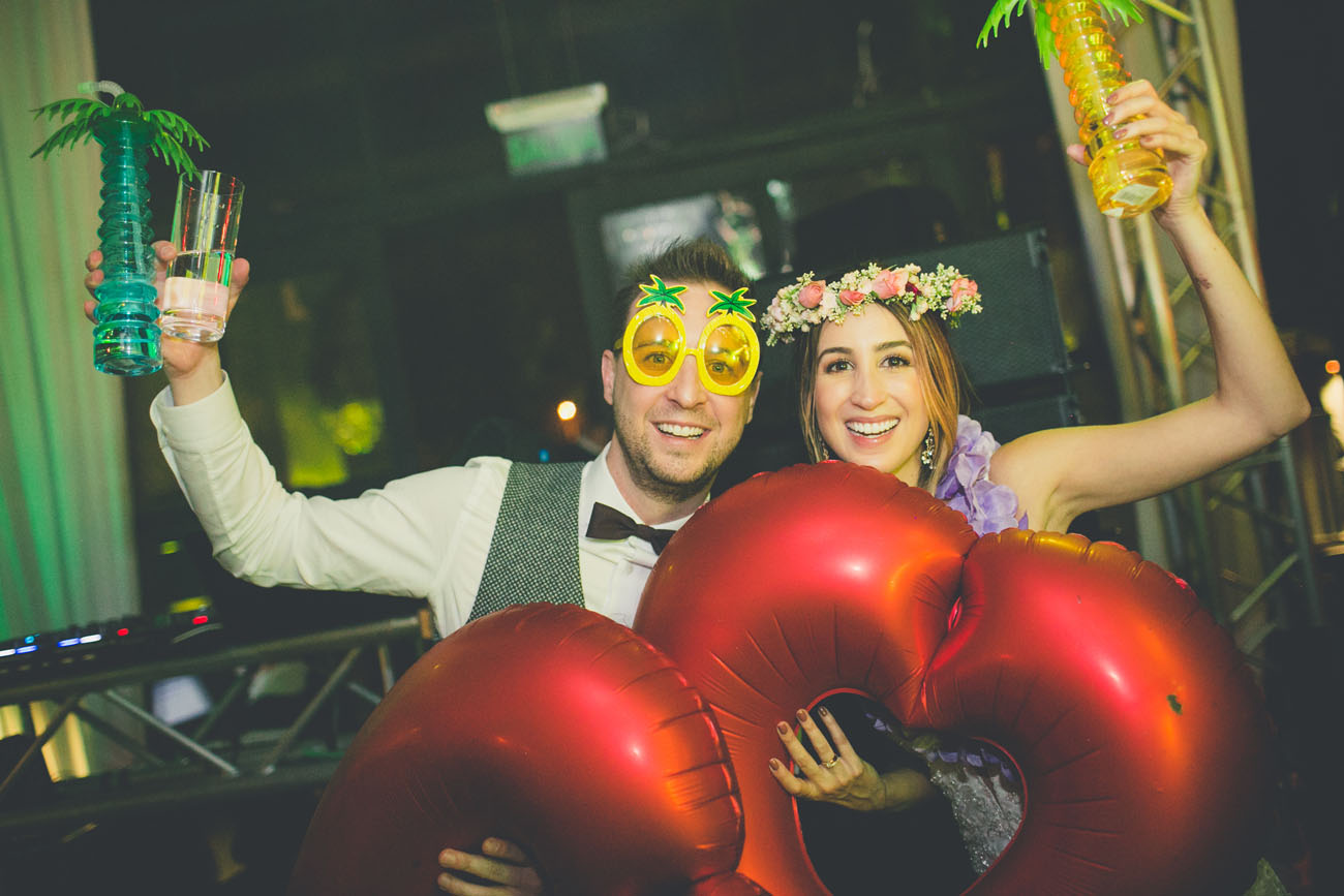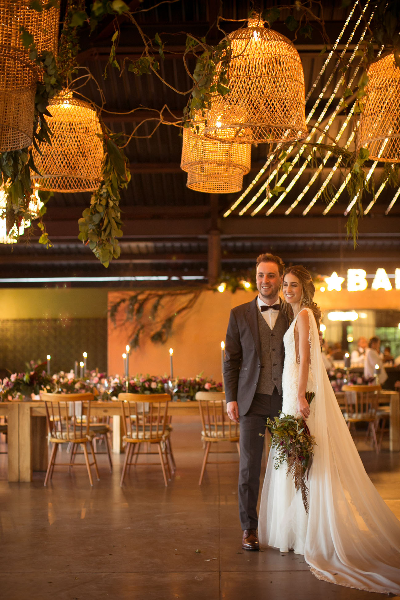 Su personalidad perfeccionista y su obsesión de arquitecta por los detalles, no le permitieron tener wedding planner. Tuvo wedding day -Isabel Estrada- para que la ayudara con la logística, pero fue ella quien se encargó de armar la celebración. Quiso un ambiente romántico, muy alusivo a otra época con toques bohemios. Quiso velas grises, individuales y lámparas en mimbre, candelabros y mucho verde en forma de eucaliptos. Quiso contrastar ese follaje con tonos palo de rosa y vinotintos. En la iglesia quiso muchos tapetes y troncos de madera y de nuevo, árboles de eucalipto que dieran la sensación de refugio, de calidez. Quiso que el ambiente en general se viera uniforme, desestructurado, que no todo fuera idéntico: en algunas mesas había copas de colores, en otras de cristal, algunas lisas, otras con texturas… Mientras Juliana ajustaba cada detalle, Alejandro se encargó de la música: Maritza, una artista que toca en Ambiente Living, fue la elegida para la comida y dj Jose Vargas el encargado de animar el resto de la noche, incluyendo la hora loca tropical.