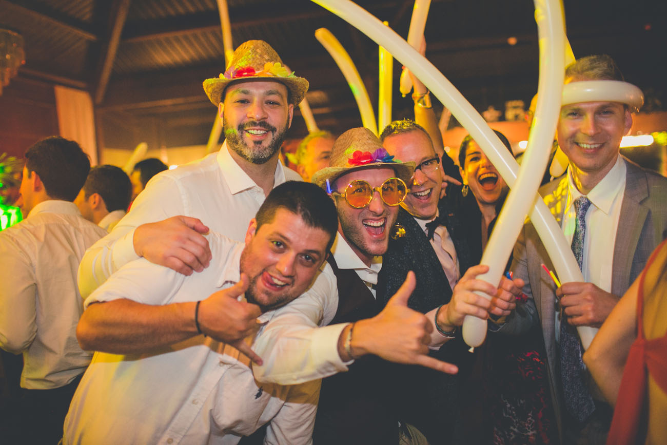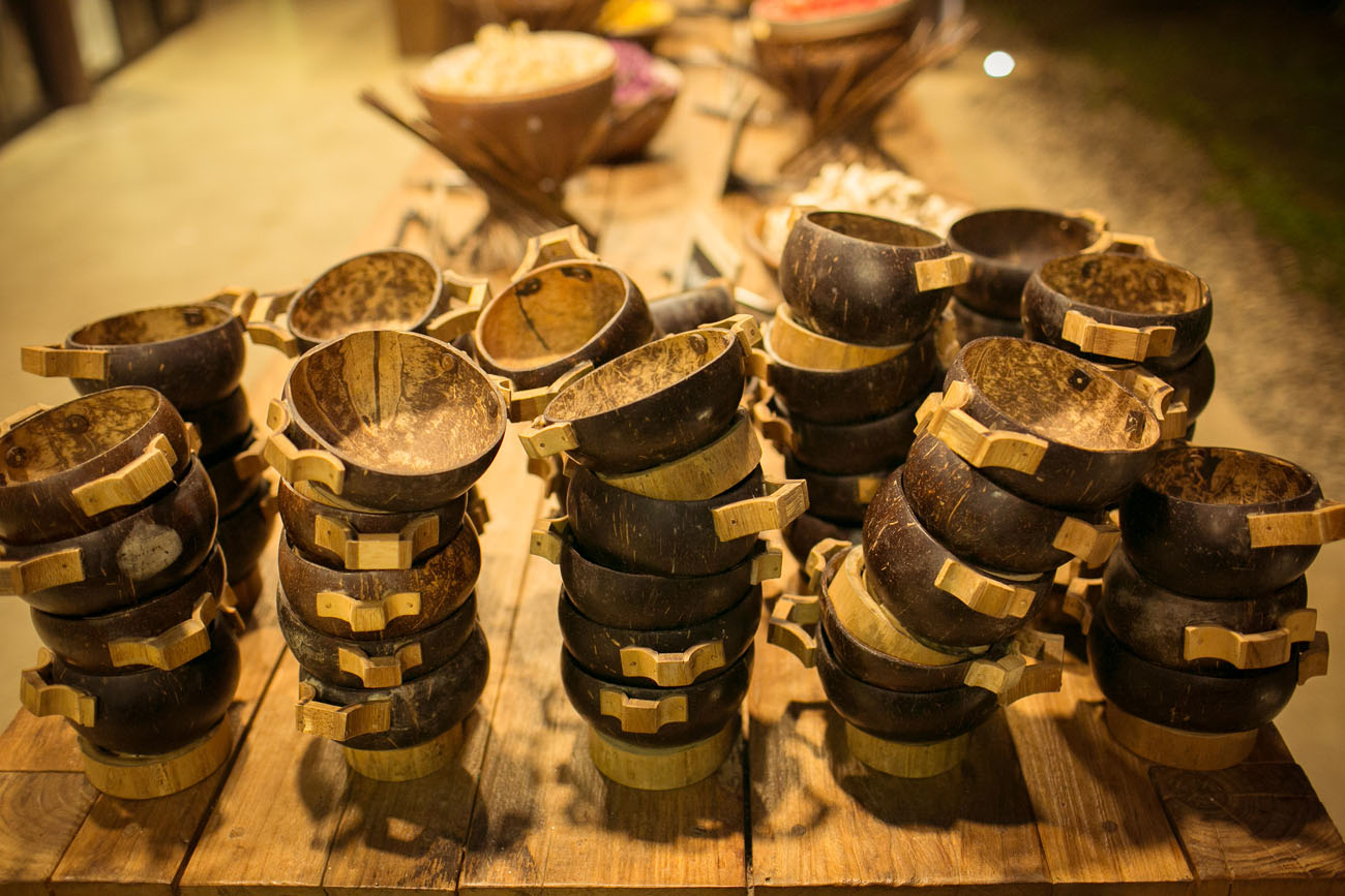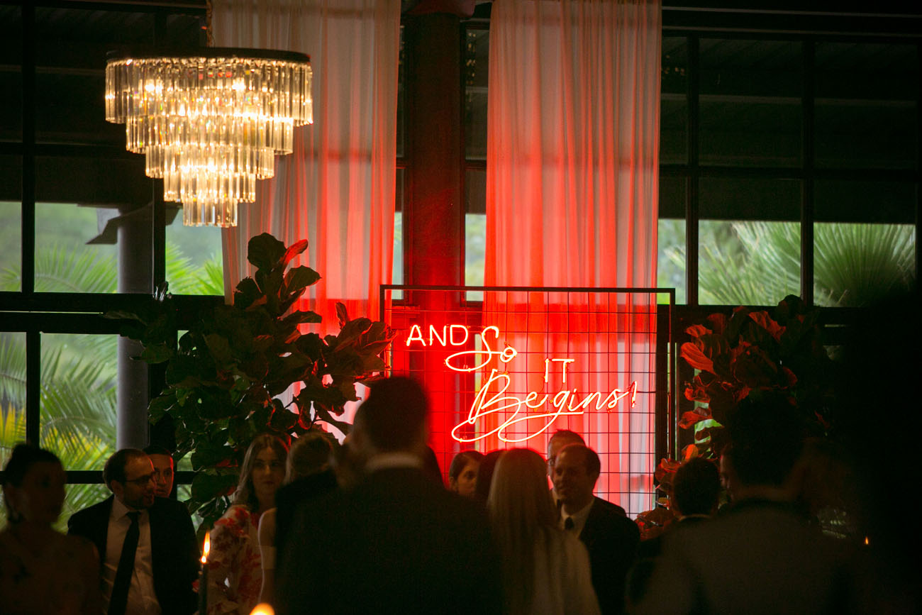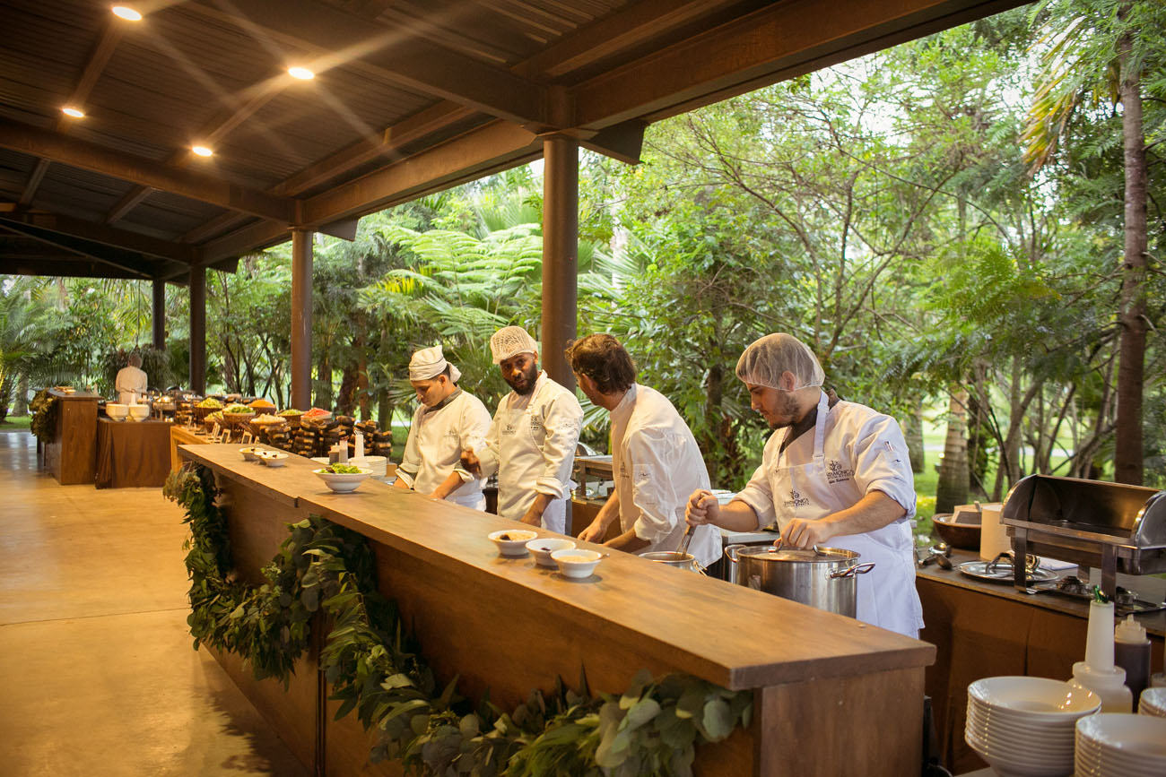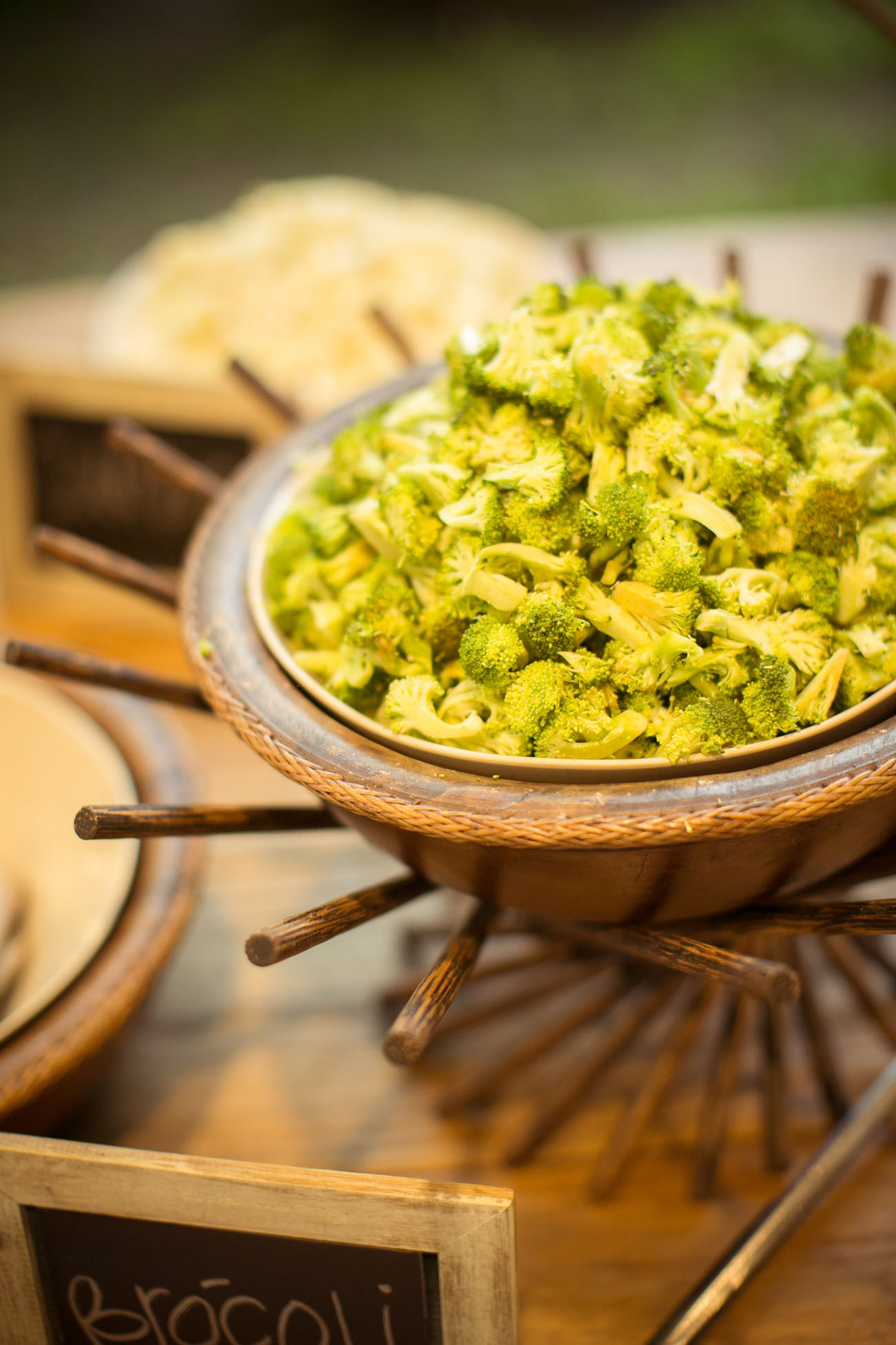 No querían protocolos. No querían un matrimonio por etapas impuestas. El orden común dictando el ánimo de la noche. En cambio, querían libertad, frescura, fluidez. La solución fue que la comida fuera un show, una elección propia: barra amplia de ingredientes para armar un wok al gusto de cada persona y después el chef lo preparaba en vivo. Mientras los invitados hacían fila, les dieron un pocillo con una crema caliente. Otra vez, el frío combinó a la perfección. El catering de Santamonica se supo lucir tal como Juliana y Alejandro imaginaron.