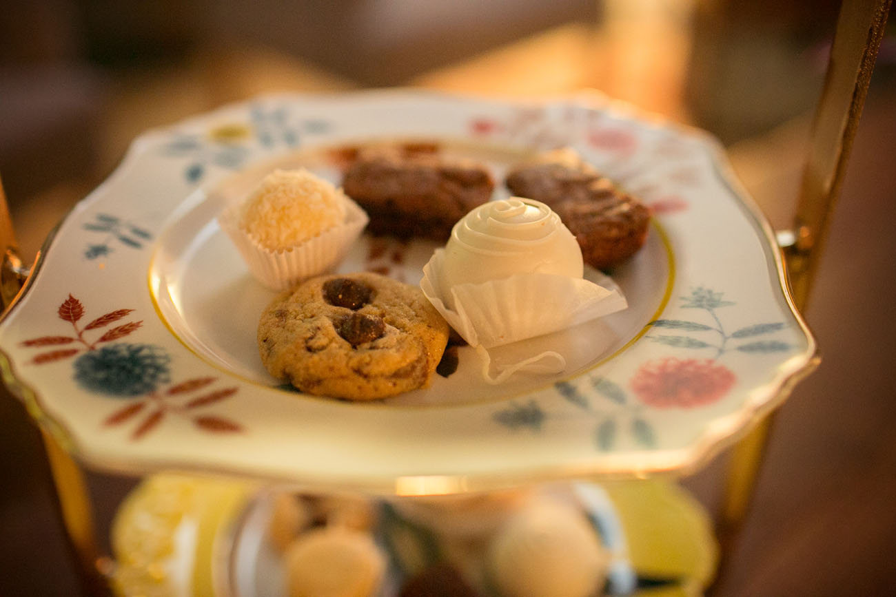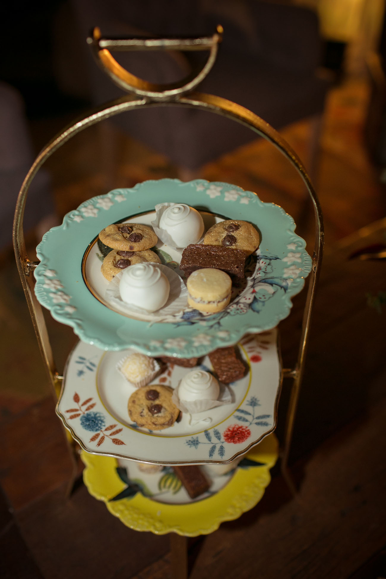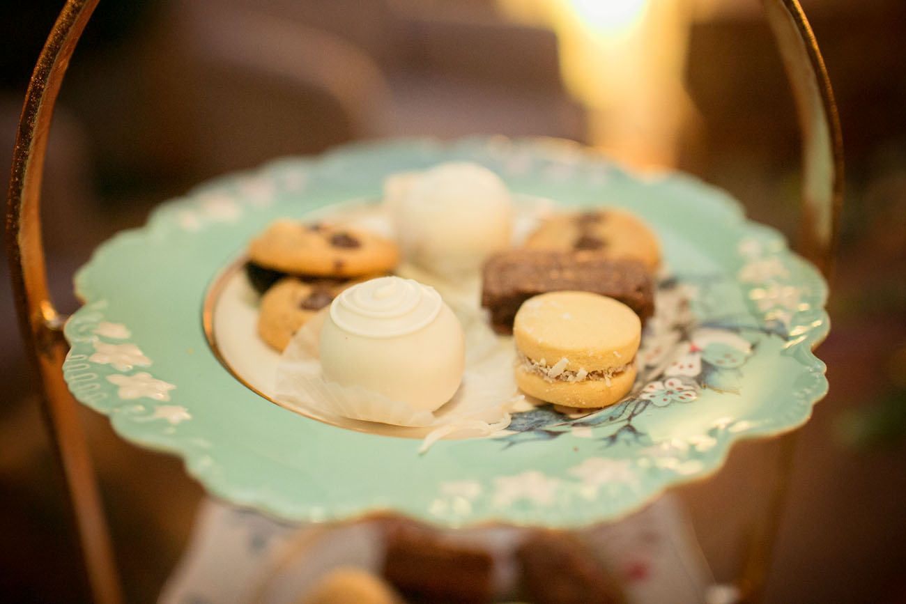 Para los postres, Paula Sierra de Zona E, les hizo (por cada mesa) una torrecita con tres platos diferentes en los que había varios mini dulzuras: galletas de chips de chocolate y brownies hechos por Decciocolate (la marca de la prima de Alejandro), alfajores, trufas, brigadeiros. Un cierre dulce y a la medida.