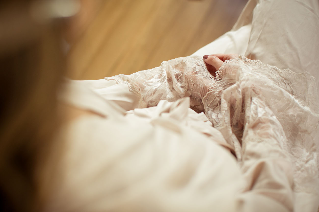 Entonces, su abuelita le contó que Las Barboto, Ángela y Sonia, aquellas modistas vieja guardia, finas y cuidadosas en su costura, eran primas del abuelo. Juliana, que siempre ha tenido afinidad con las abuelitas, no lo dudó: se fue para donde ellas con un montón de referentes de vestidos de Berta para que entre las tres llegaran a una combinación precisa. Fue amor a primera vista. Los días de mediciones y de ajustes eran los más felices. Le encantaba chismosear con ellas, tomar el algo. Admiraba su esmero, su inmersión en cada puntada, su costura exigente de tiempo atrás. Fue tanto el cariño, la conexión, que Juliana quiso que el día del matrimonio ellas estuvieran mientras se arreglaba: que hicieran los últimos ajustes, que almorzaran juntas, que la vieran con la sonrisa enorme de estar con el vestido exacto que habían logrado con tanto amor.