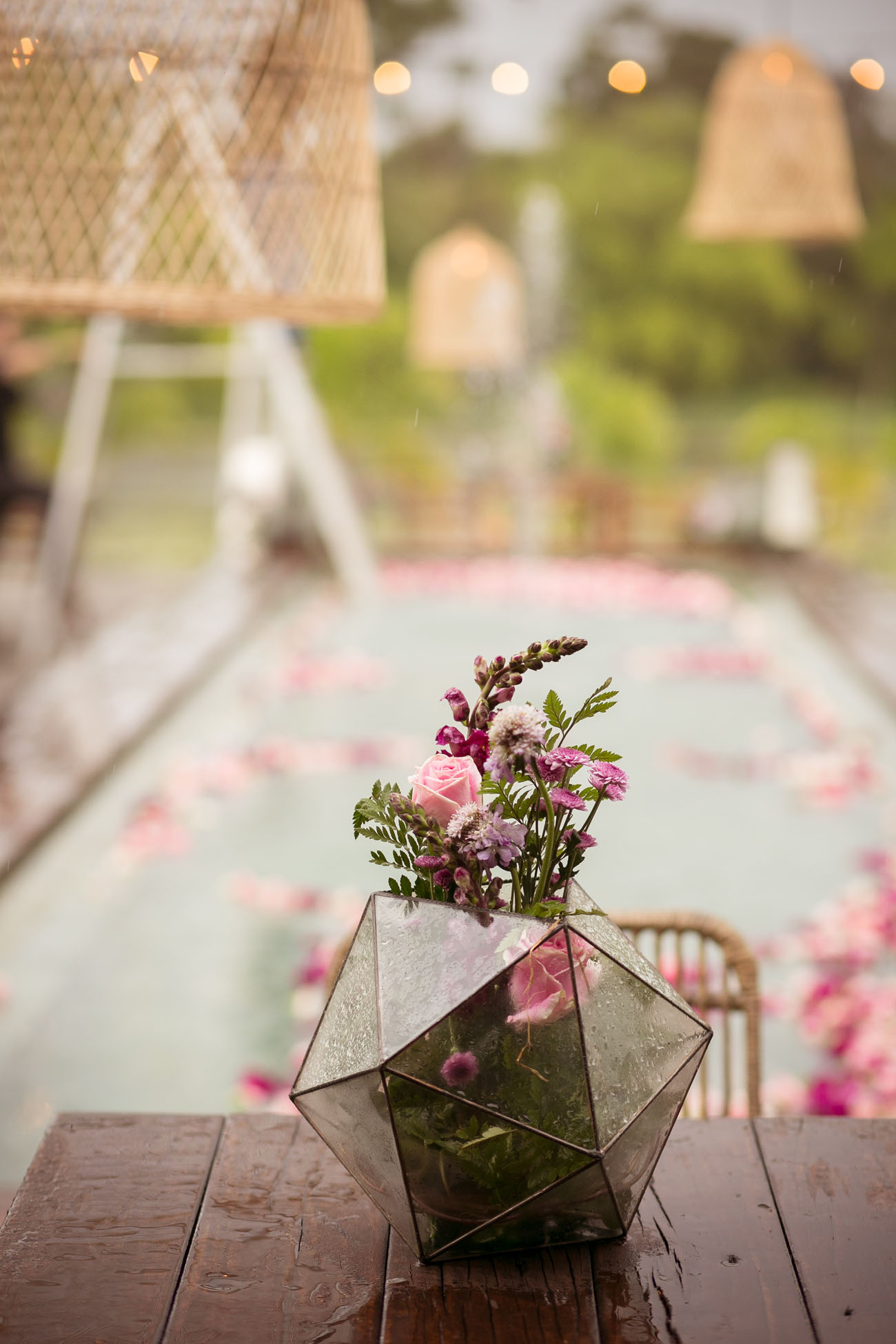 Quería casarse en verano, pero el sol no salió. En cambio, no paró de llover. Qué más daba: se bajó del carro sin sombrilla y entró a la iglesia mojada, pero feliz; con lágrimas de alegría, de sensibilidad, de chispa en el pecho. No paró de llover, pero lo miró con ojos de tranquilidad, de gratitud. La decoración tan invernal (Eucaliptos, velas, madera) sobresalía, encajaba más. El coctel, que nunca le gustó mucho que ocurriera afuera se trasladó para el interior; desde donde se veía el lago, las lámparas colgando, las lucecitas, un escenario romántico y lluvioso. Cada vez que lo recuerda, le gusta saber que ese día pasaron cosas que no pudo controlar y que terminaron siendo un regalo.