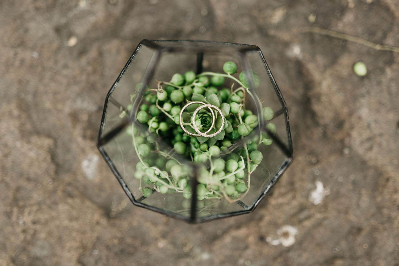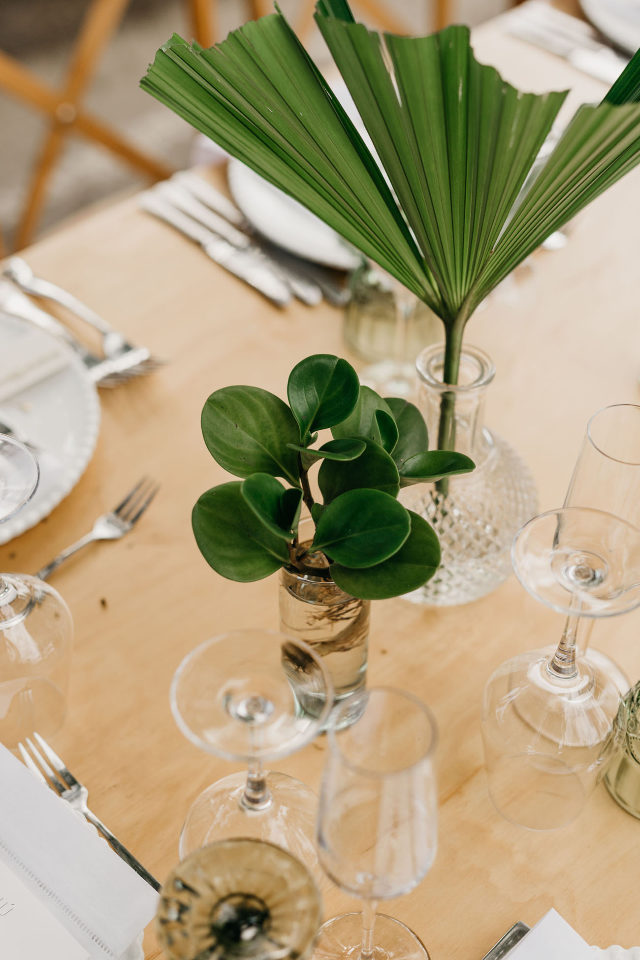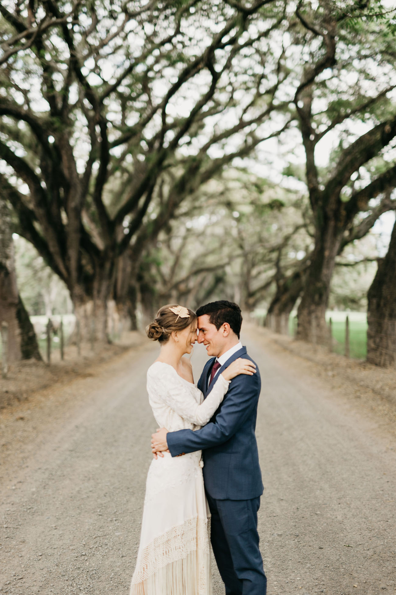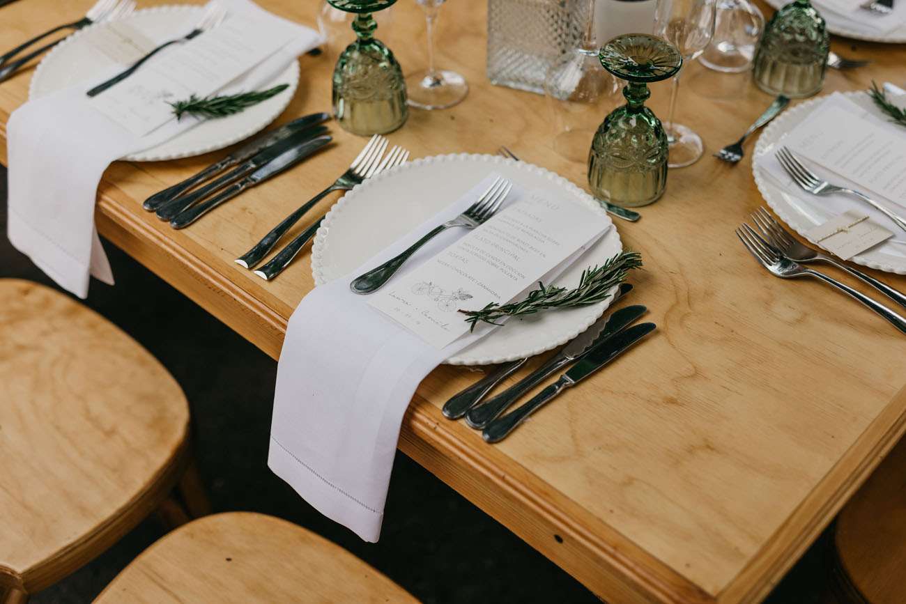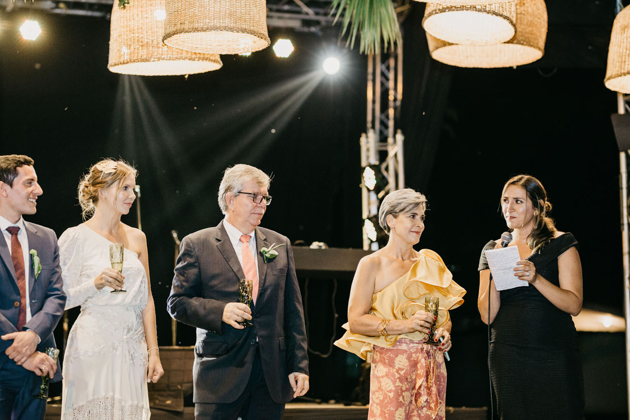 Ese matrimonio que soñaban, tan nuestro, simple, minimalista, descomplicado, elegante, rústico, fue el espejo del que tuvieron. Mesas en madera, sillas de estilo industrial, bombillos, lámparas artesanales, follaje verde y miel, ni una sola flor, excepto la del yugo de Laura. Se aprovecharon del contraste propio del piso en piedra, de las tonalidades naturales y dejaron que el color lo pusieran las personas, porque de todos los temas las personas también fueron prioridad, porque los dos tienen familias grandes y unidas, porque comparten los amigos desde el colegio, porque estar en compañía de tantos que no ven muy a menudo y, también, de esos que ven con frecuencia, era la razón de esa fiesta en medio de lo que parecía un bosque, una feria íntima, un festín de otra época, un pueblito macondiano.
