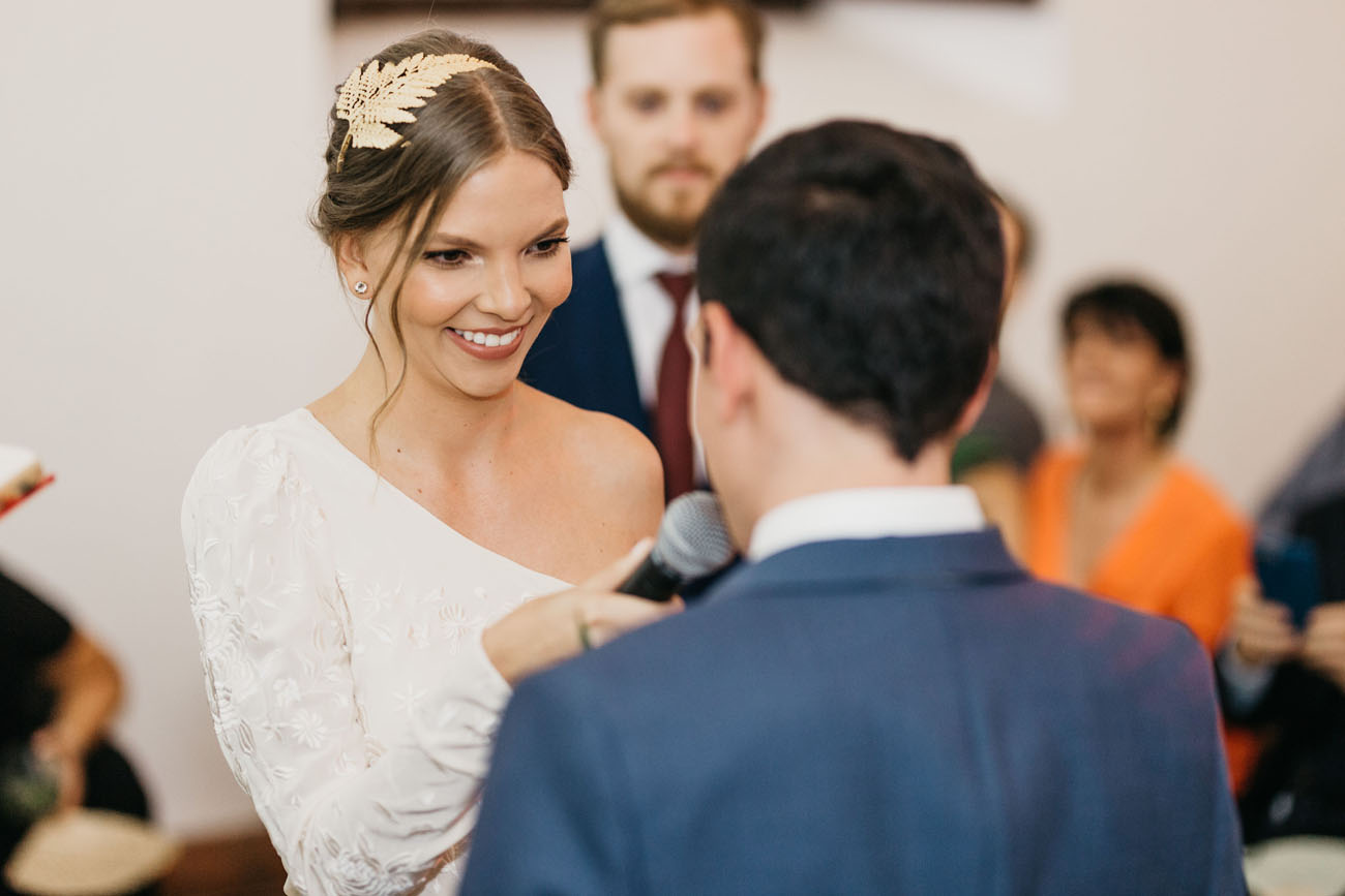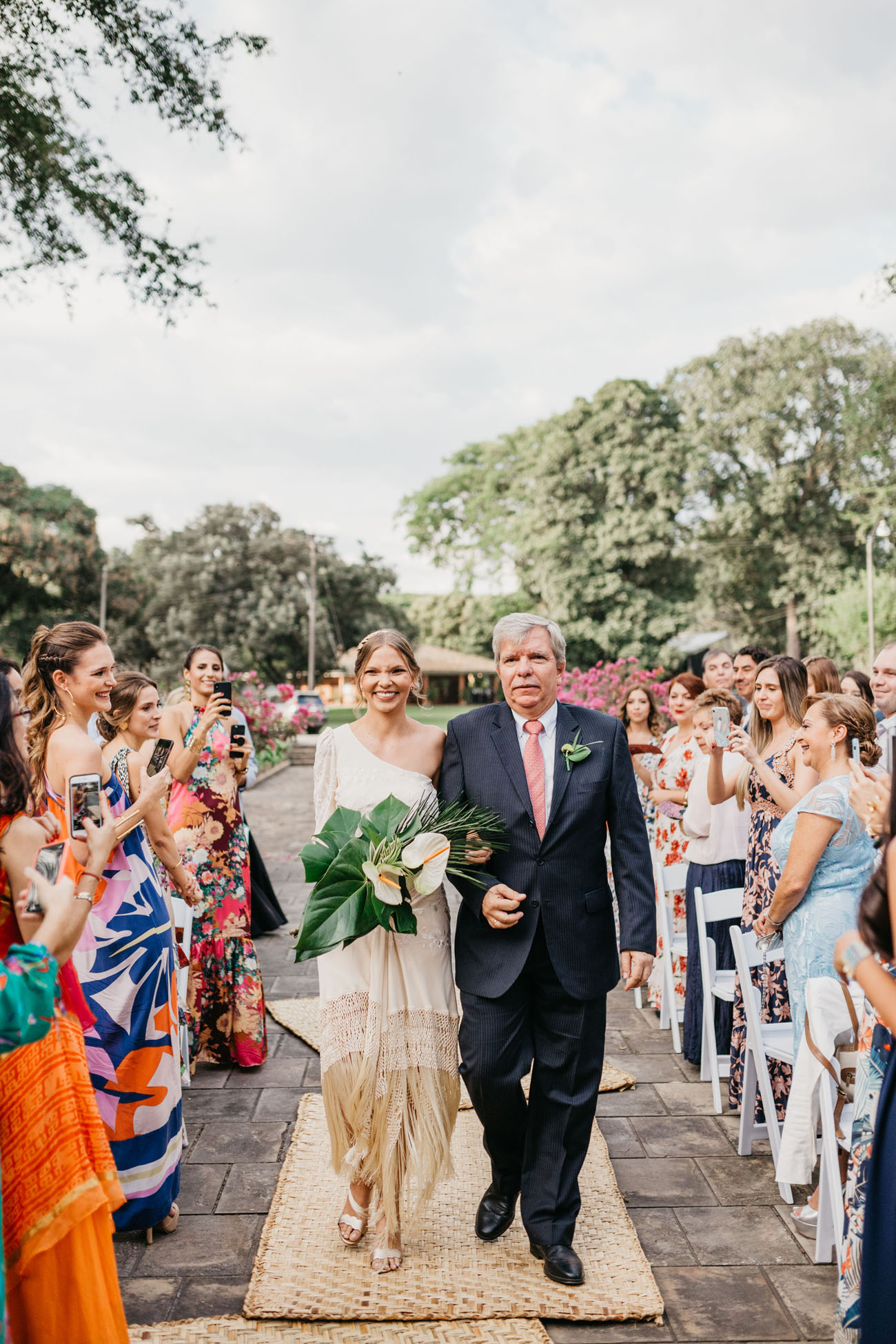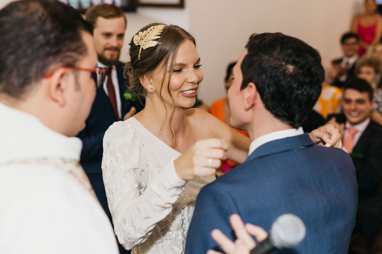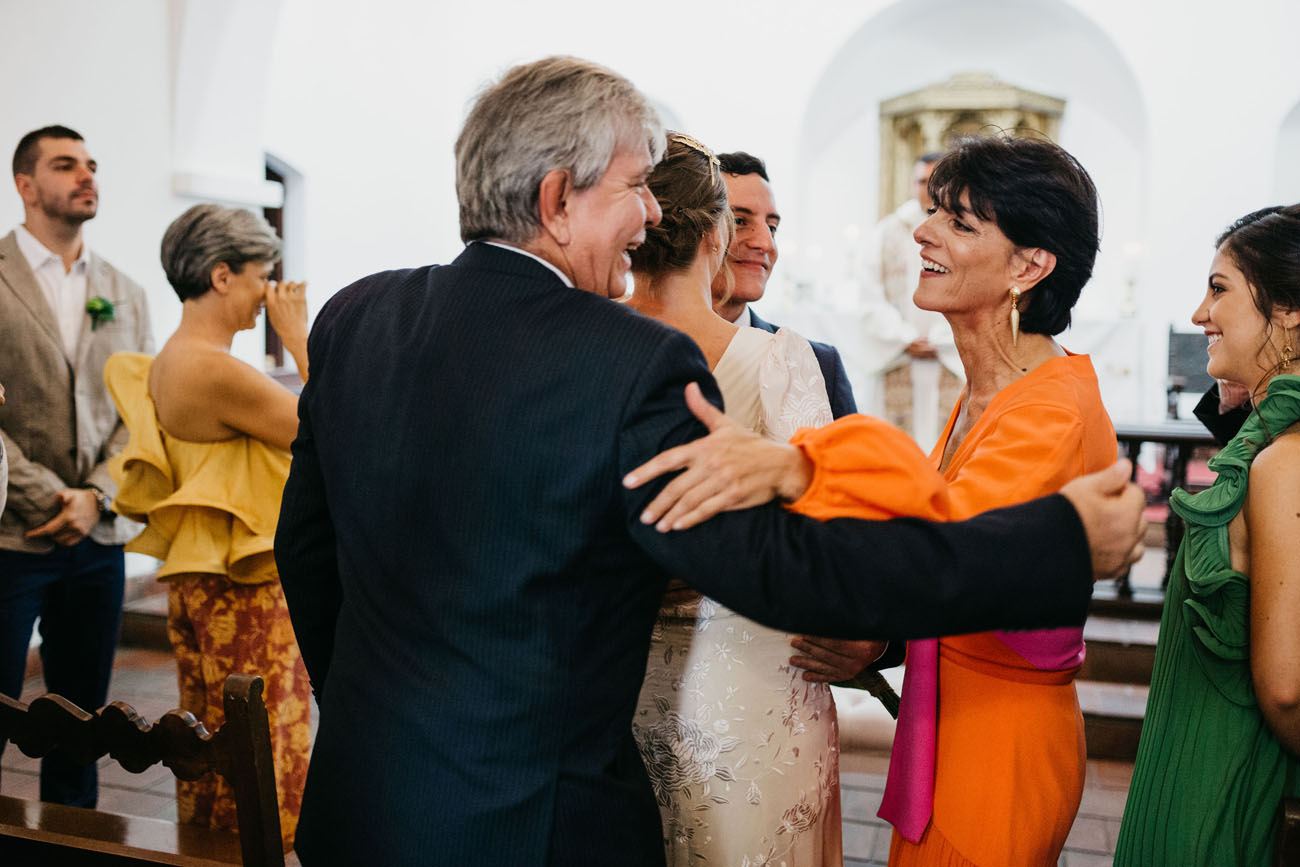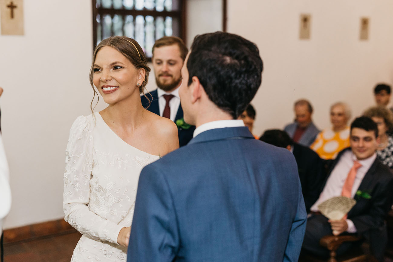 En esa iglesia que tenía tanto significado para Camilo cabían 100 invitados. Agregaron 100 sillas más afuera y a los invitados les dieron abanicos hechos por una artesana de Putumayo, para el calor. Además de los votos, que ellos personalizaron, la música hizo que la ceremonia fuera un momento más emotivo de lo que ya significa ese ritual donde muchas personas se reúnen para celebrar el amor. Una mujer, un hombre y tres instrumentos con la fuerza de lo que pareció un coro completo cantaron canciones en inglés, en español y en italiano. El sacerdote, además, fue un acierto de los más gratos: un discurso fresco, franco, sencillo que logró abrazar la esencia de los dos. En palabras de Laura, capturó la atención hasta de los menos creyentes.