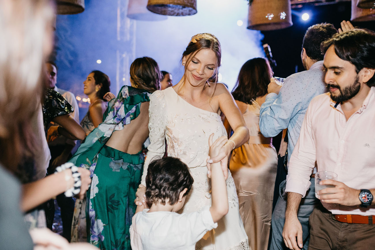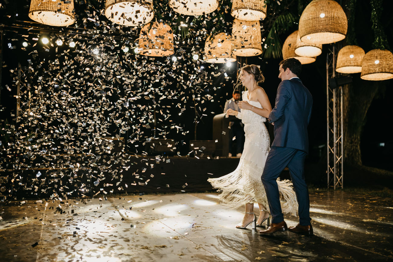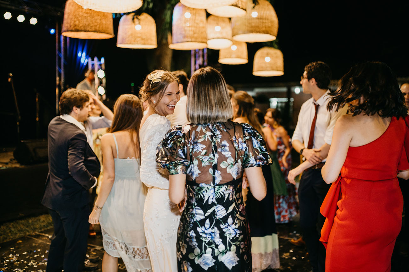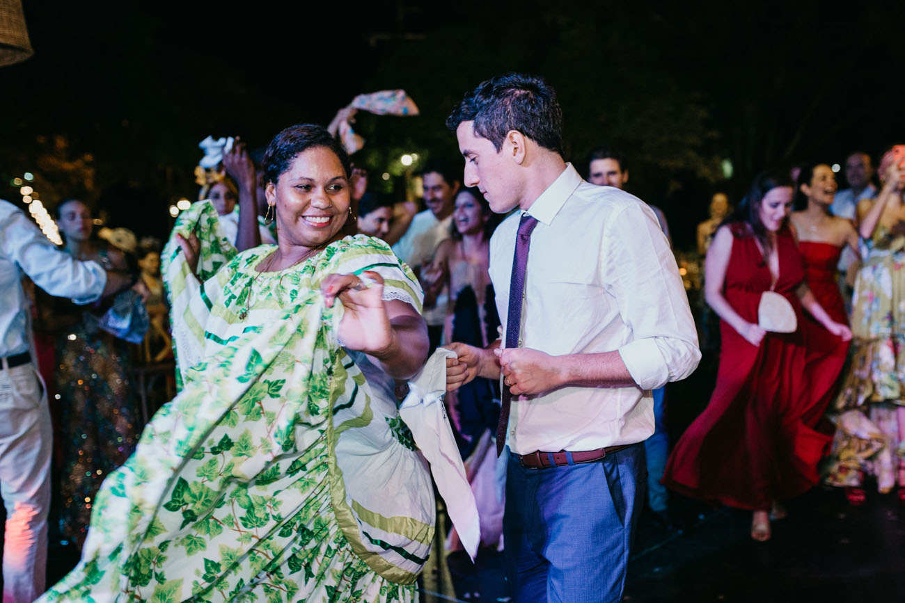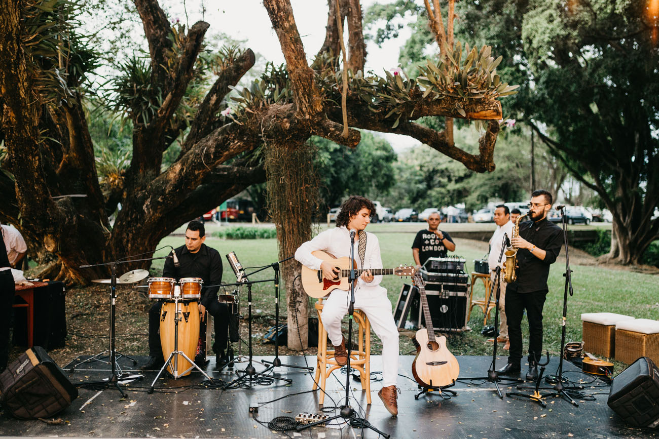 La música, que ya venía siendo protagonista en la ceremonia, volvió a robarse los ánimos. Primero en el coctel, con Mareh, ese músico caleño que acaba de grabar un video con Monsieur Periné: las canciones de Vicente García y de su nuevo álbum Amuleto hicieron eco en las emociones, sobre todo en las de Laura y Camilo que desde enero llevan disfrutando su música. Después vendría el primer baile con De qué callada manera, esa canción que escribió Pablo Milanés, que tantos grupos tropicales han interpretado y que ellos bailaron al ritmo de salsa cubana para prender la fiesta. Al final, una hora loca que Camilo se encargó de organizar aludiendo al Pacífico, al gusto de ambos por el festival Petronio Álvarez: al son de la música del grupo Pura Sangre, de sus vestuarios coloridos, de los turbantes que repartieron para las mujeres, de las canciones movidas, de la brisa y la energía de los árboles, ese 20 de julio tuvo un final de aplausos, de plenitud, de un destino que parece estar a favor de la felicidad y de un amor con chispa.