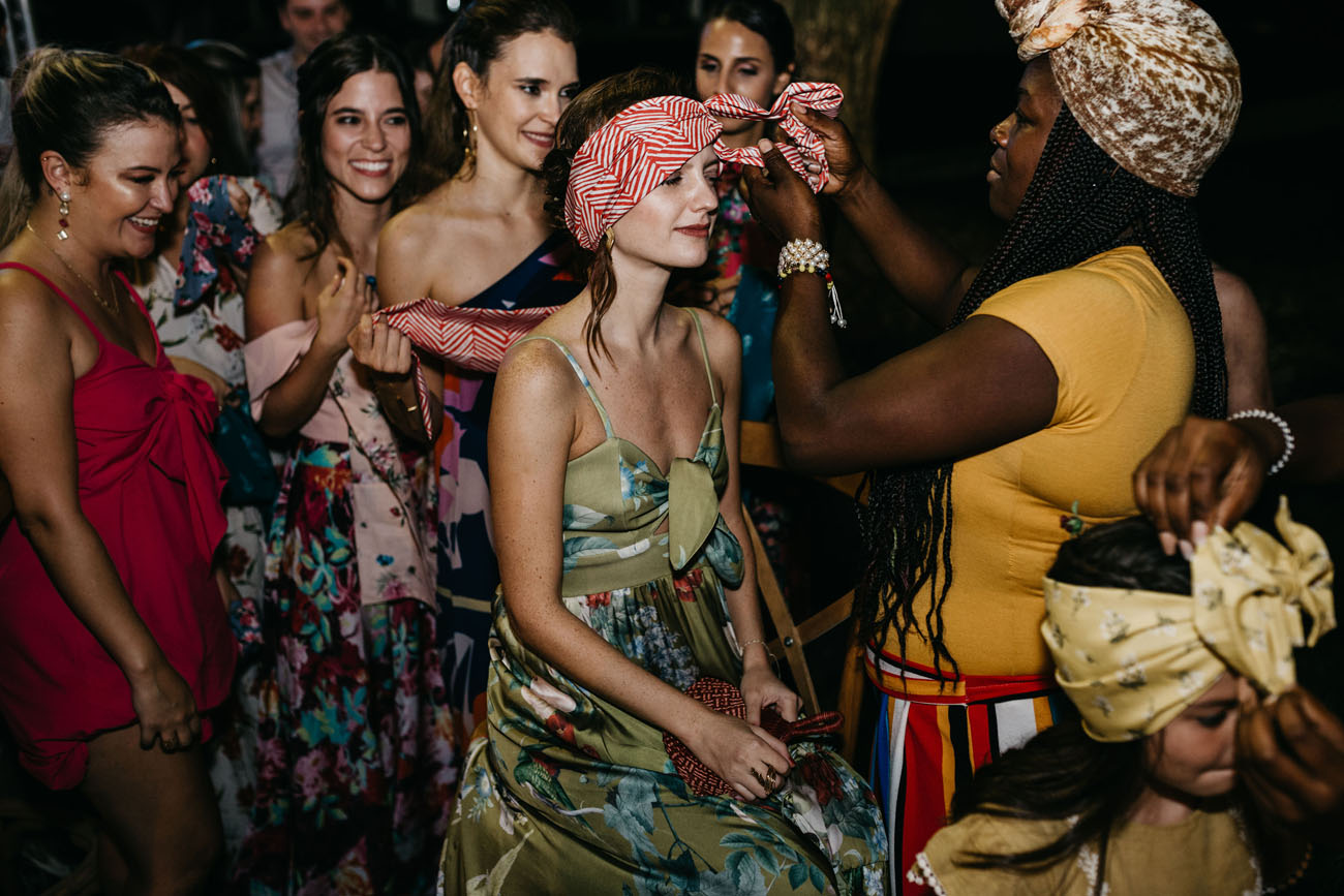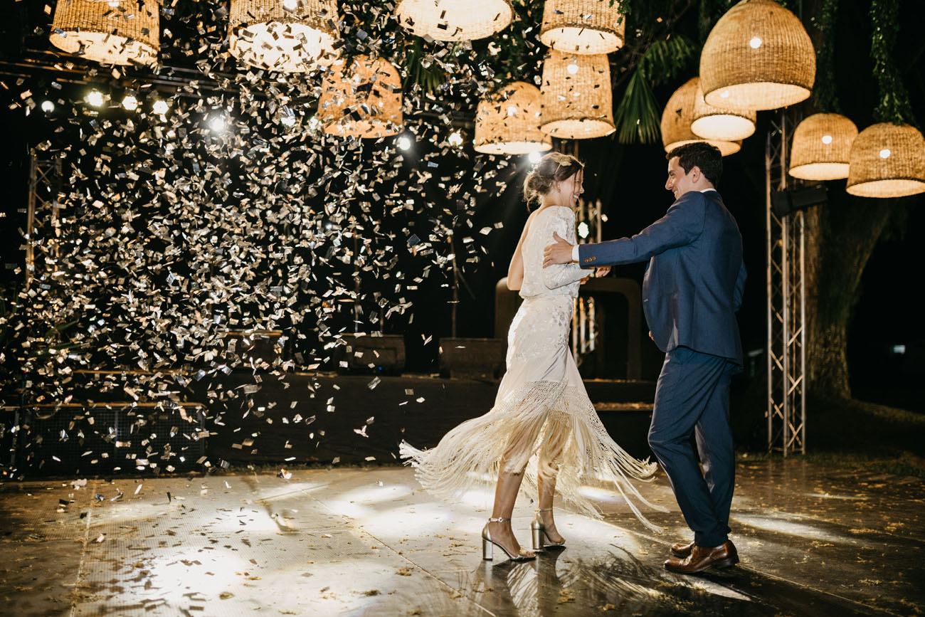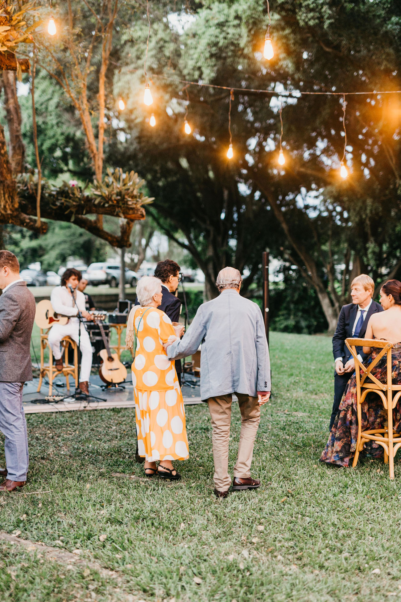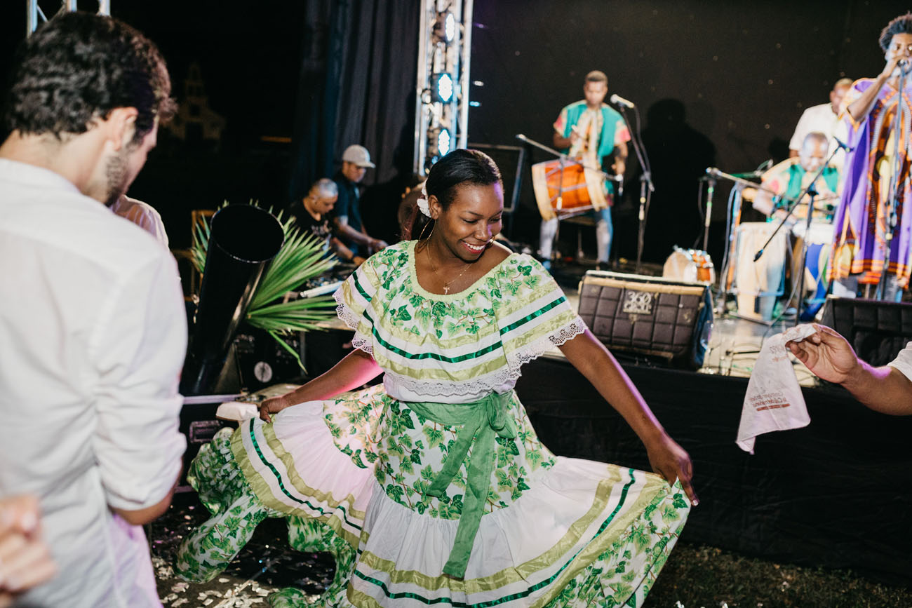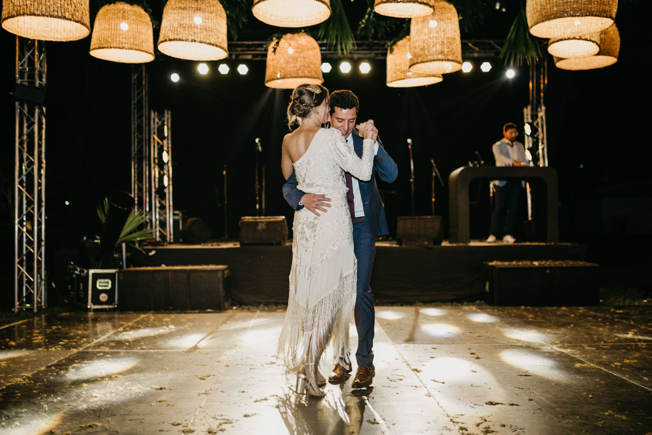 La música, que ya venía siendo protagonista en la ceremonia, volvió a robarse los ánimos. Primero en el coctel, con Mareh, ese músico caleño que acaba de grabar un video con Monsieur Periné: las canciones de Vicente García y de su nuevo álbum Amuleto hicieron eco en las emociones, sobre todo en las de Laura y Camilo que desde enero llevan disfrutando su música. Después vendría el primer baile con De qué callada manera, esa canción que escribió Pablo Milanés, que tantos grupos tropicales han interpretado y que ellos bailaron al ritmo de salsa cubana para prender la fiesta. Al final, una hora loca que Camilo se encargó de organizar aludiendo al Pacífico, al gusto de ambos por el festival Petronio Álvarez: al son de la música del grupo Pura Sangre, de sus vestuarios coloridos, de los turbantes que repartieron para las mujeres, de las canciones movidas, de la brisa y la energía de los árboles, ese 20 de julio tuvo un final de aplausos, de plenitud, de un destino que parece estar a favor de la felicidad y de un amor con chispa.