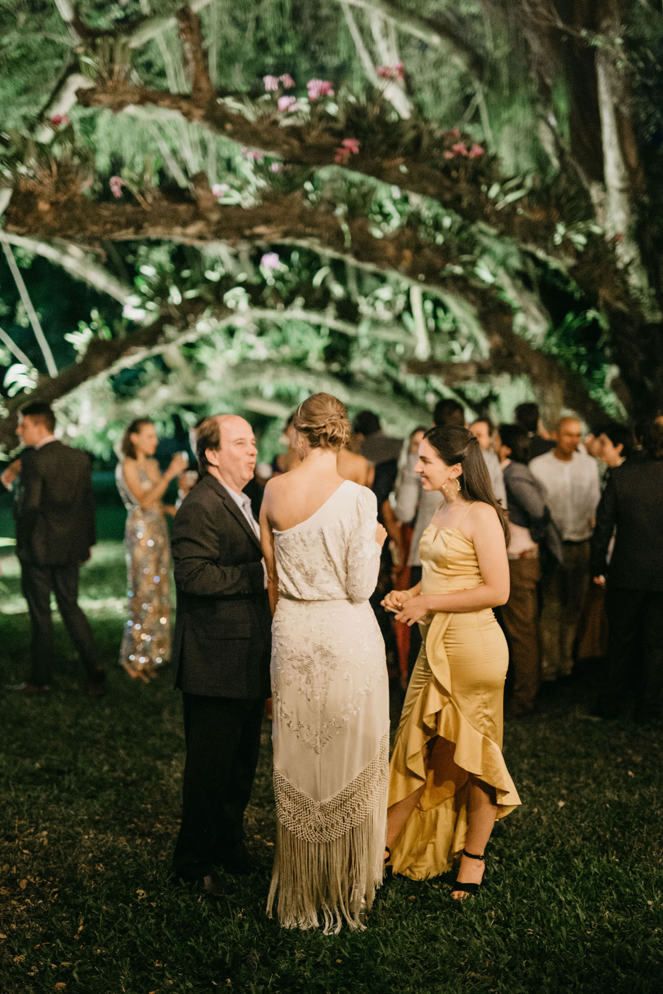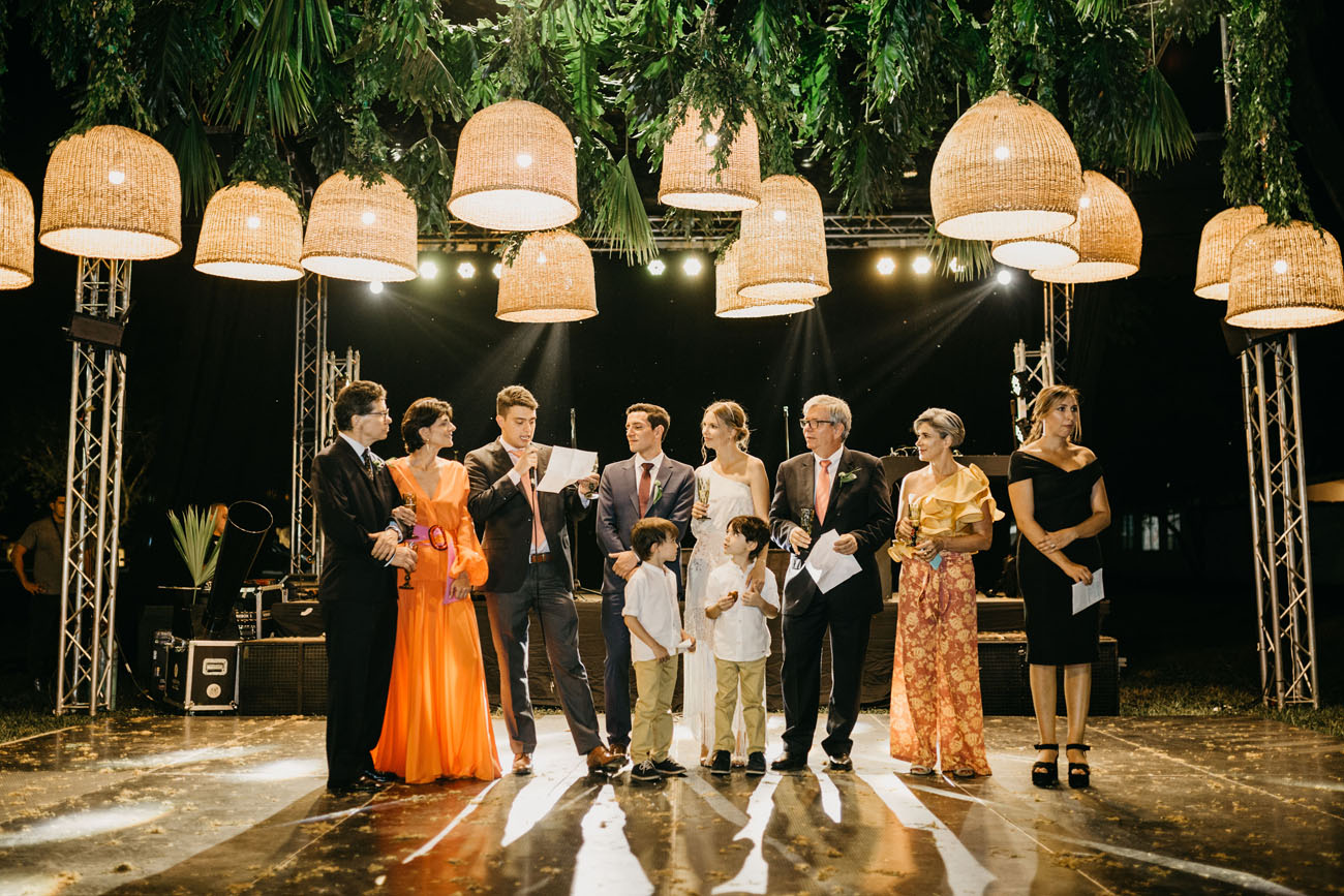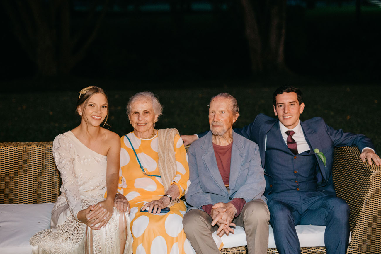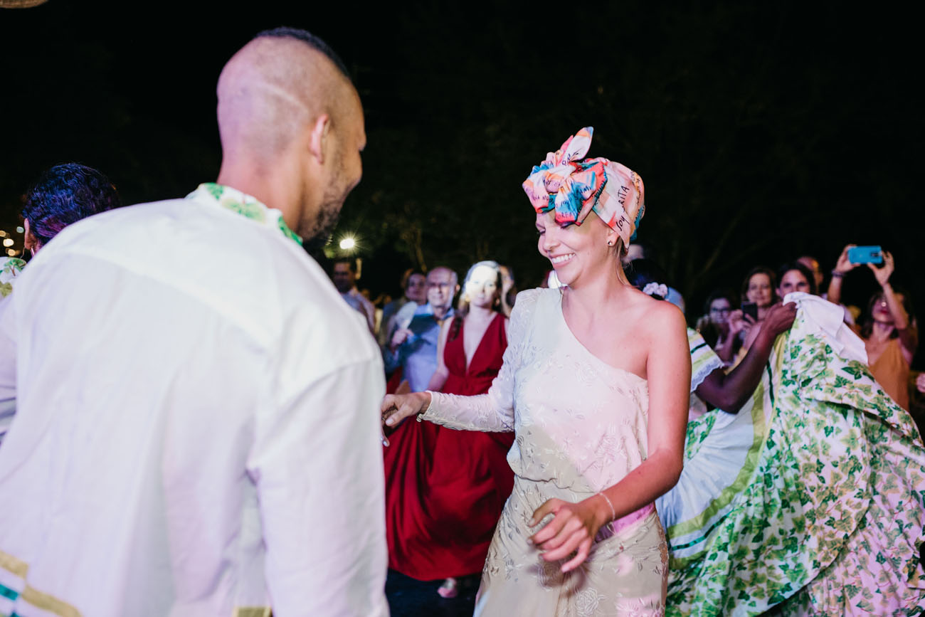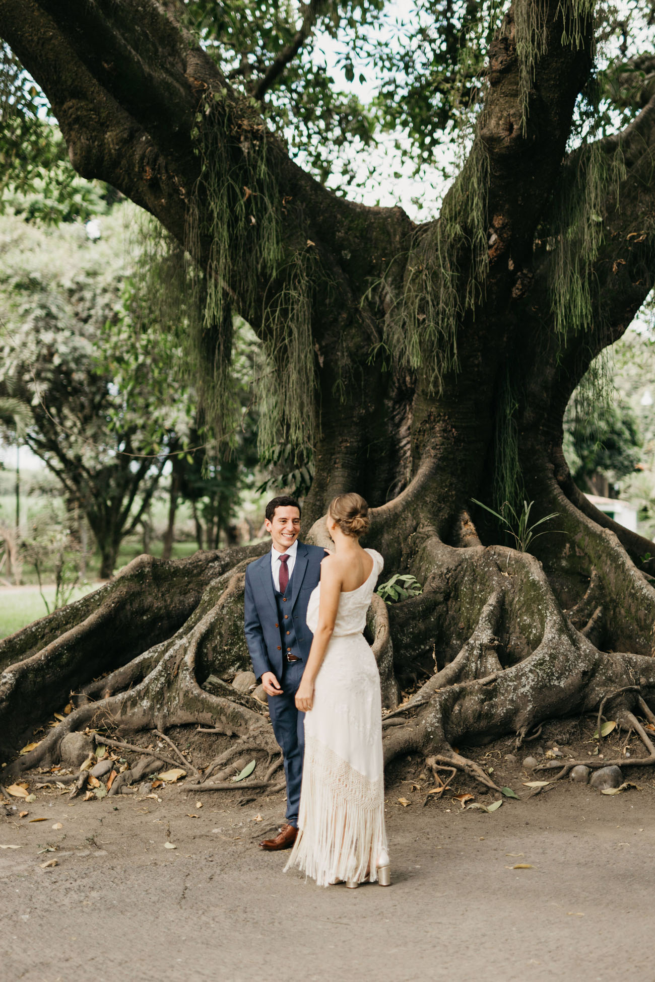 La música, que ya venía siendo protagonista en la ceremonia, volvió a robarse los ánimos. Primero en el coctel, con Mareh, ese músico caleño que acaba de grabar un video con Monsieur Periné: las canciones de Vicente García y de su nuevo álbum Amuleto hicieron eco en las emociones, sobre todo en las de Laura y Camilo que desde enero llevan disfrutando su música. Después vendría el primer baile con De qué callada manera, esa canción que escribió Pablo Milanés, que tantos grupos tropicales han interpretado y que ellos bailaron al ritmo de salsa cubana para prender la fiesta. Al final, una hora loca que Camilo se encargó de organizar aludiendo al Pacífico, al gusto de ambos por el festival Petronio Álvarez: al son de la música del grupo Pura Sangre, de sus vestuarios coloridos, de los turbantes que repartieron para las mujeres, de las canciones movidas, de la brisa y la energía de los árboles, ese 20 de julio tuvo un final de aplausos, de plenitud, de un destino que parece estar a favor de la felicidad y de un amor con chispa.