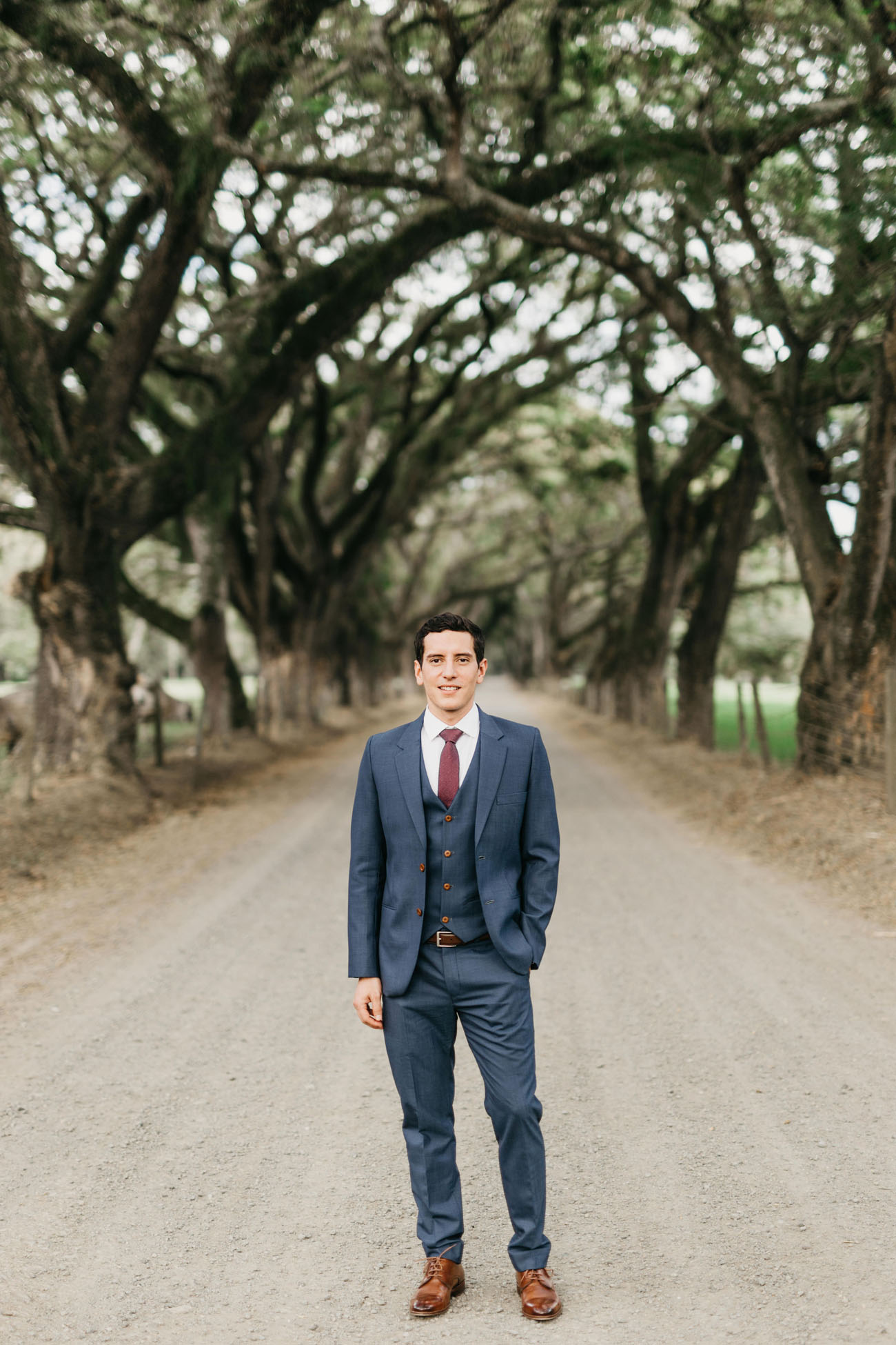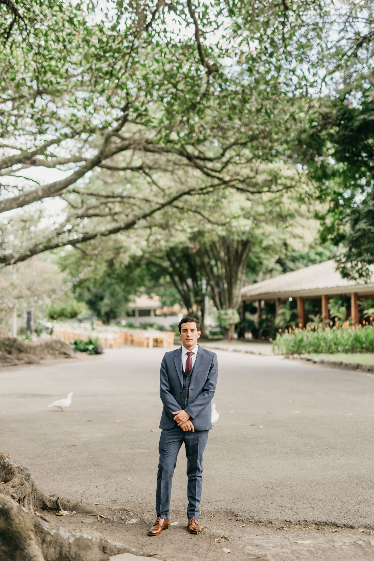 El traje de Camilo lo hizo un amigo de ella que es sastre en Medellín: Jorge Orozco. La anécdota del proceso es que Camilo se quebró el pie cuatro meses antes del matrimonio y las pruebas se complicaron un poco; solo hubo dos, pero el diseño fue preciso, justo y sobrio. Pareciese que cuando a la vida no se le ponen trabas, ella se encarga de no anteponerse; en cambio, conjuga aciertos, crea corrientes serenas.
