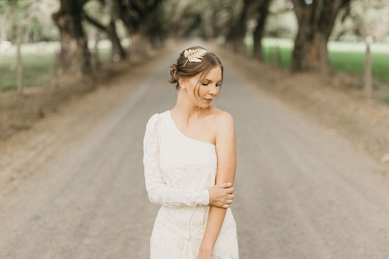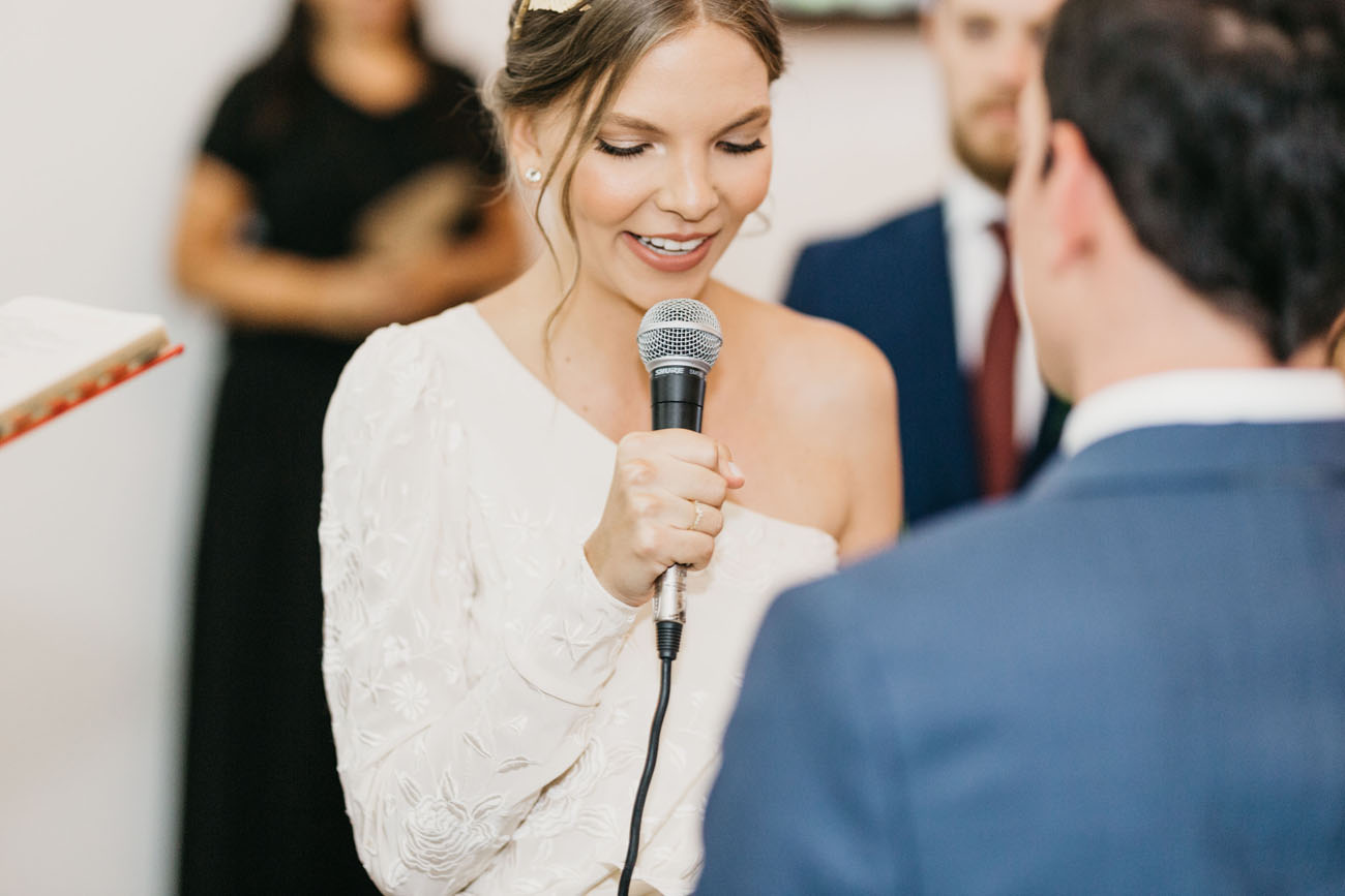 Laura es una mujer segura de sí misma. Su lenguaje —verbal y corporal— lo valida. Recuerda haber visto un vestido en un post de esta Libreta morada que decía quiero seguir viendo novias donde no las hay, pero donde podría haberlas y recuerda saber —desde ese momento— que era su vestido: cómodo, diferente, elegante. Al día siguiente fue al almacén de Johanna Ortiz. Lo compró. Fue el único que se midió. En definitiva, resulta ser un vestido tan alejado a los ideales y a los comunes que habla de esa esencia disruptiva de Laura.