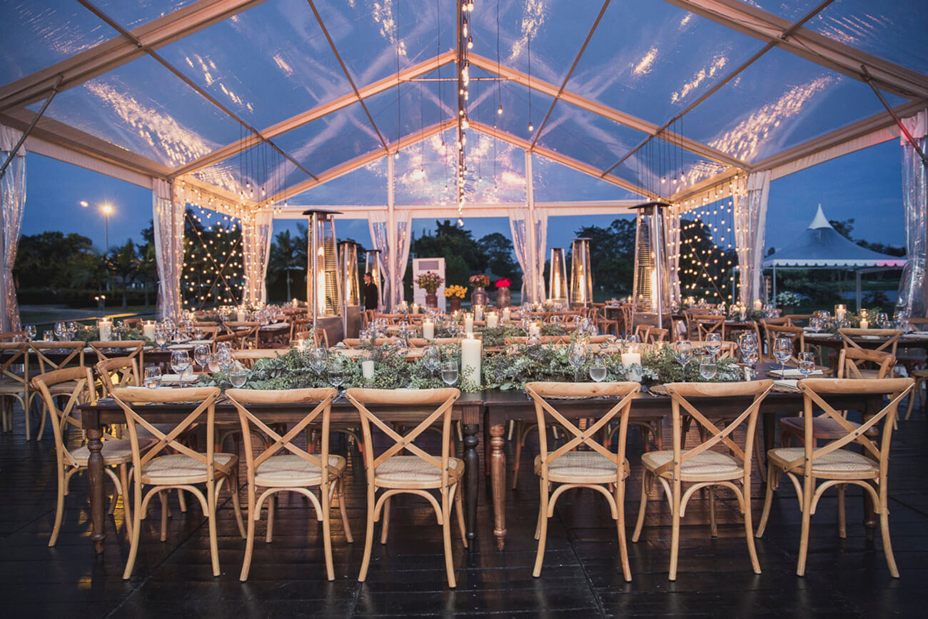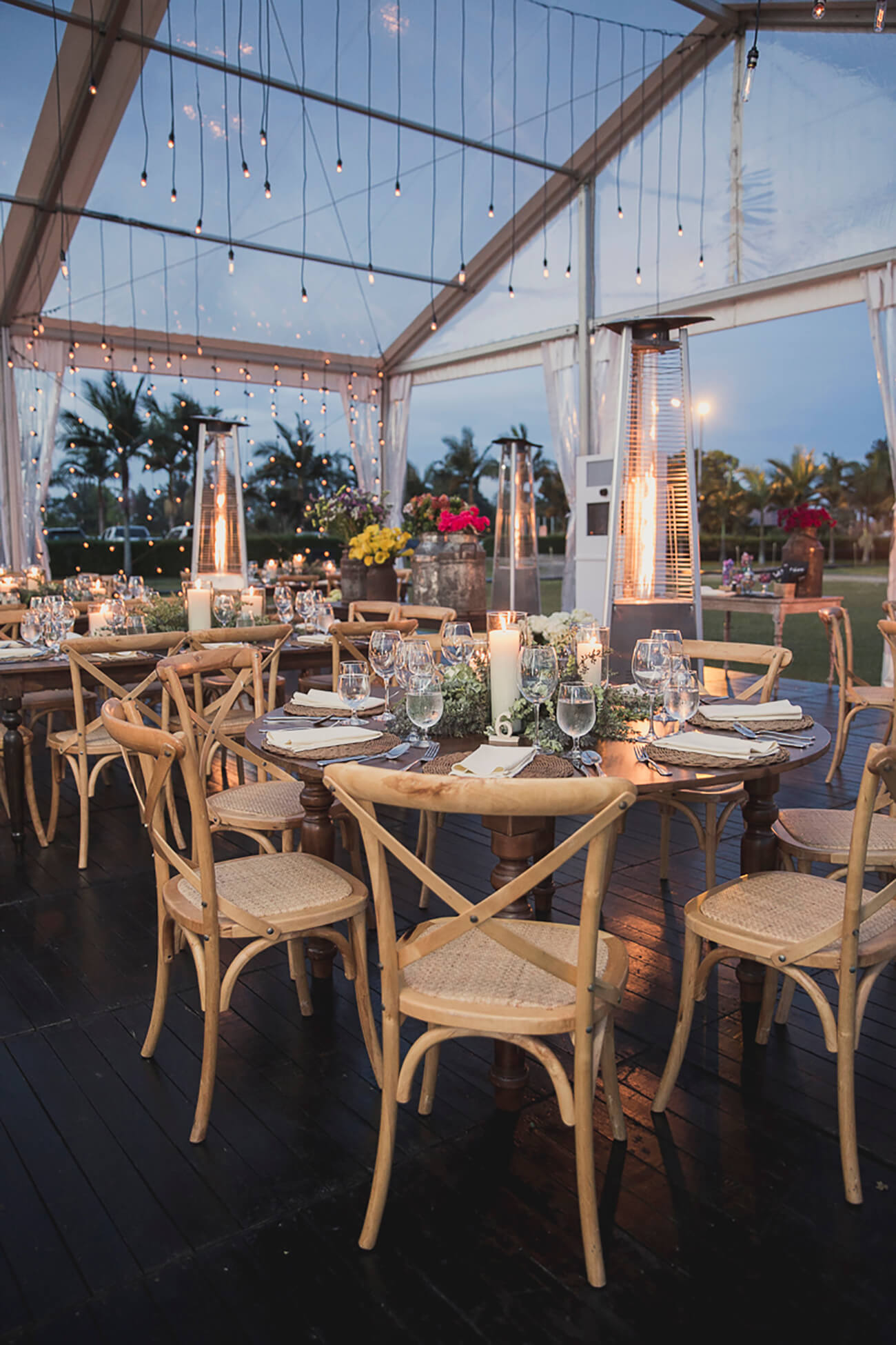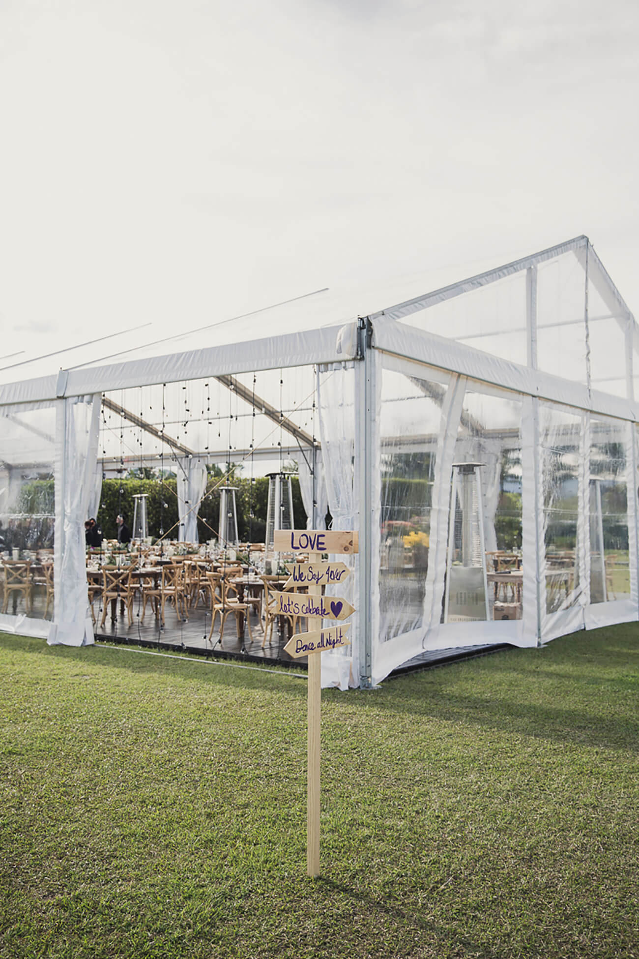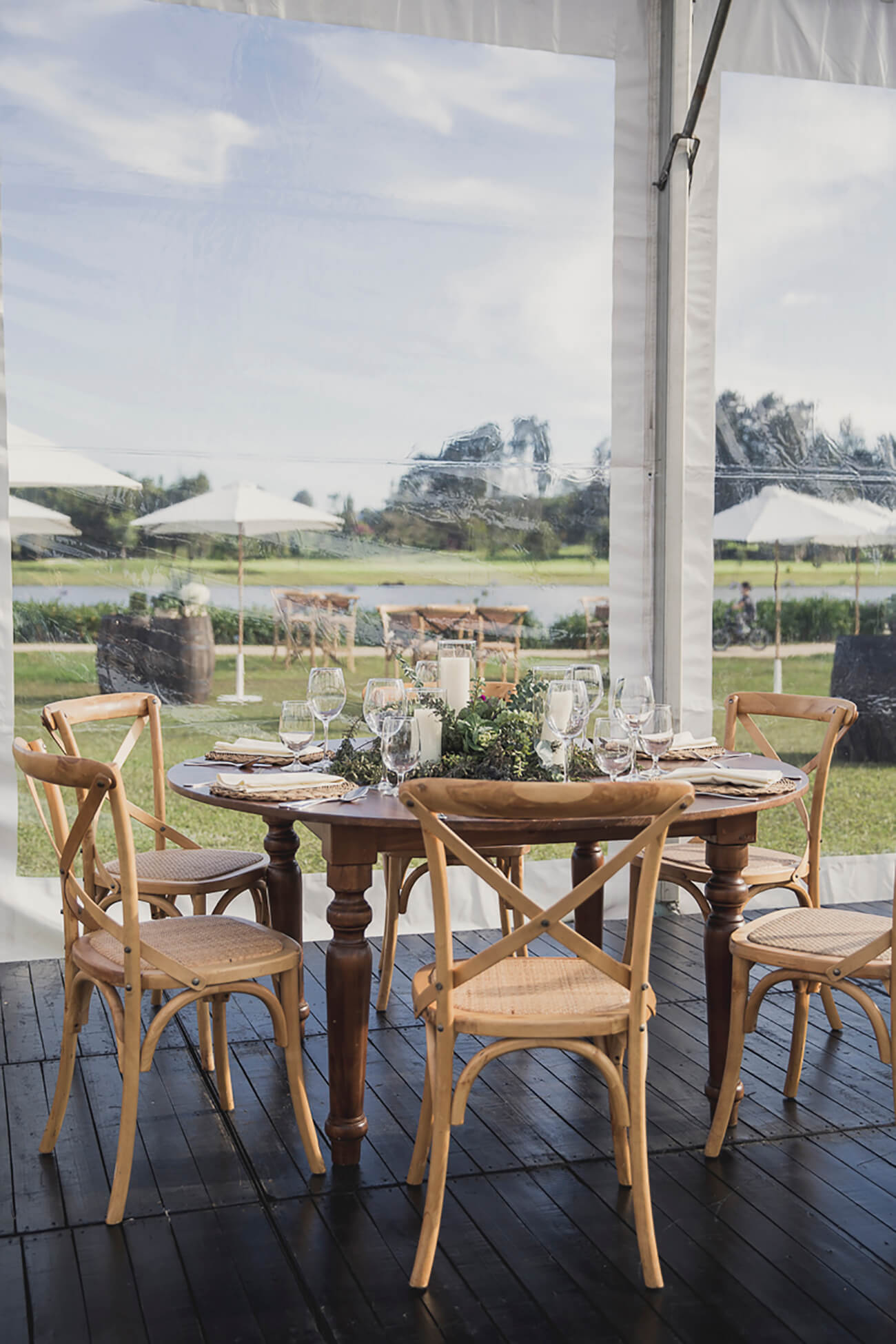 Tengo algo de bohemia, pero me gusta lo cool y lo sofisticado. Quería mucho verde y un lago, porque me parece que inspira calma. El clima en Medellín es muy loco entonces no podíamos arriesgarnos a no tener carpas, así que tuvimos unas transparentes espectaculares