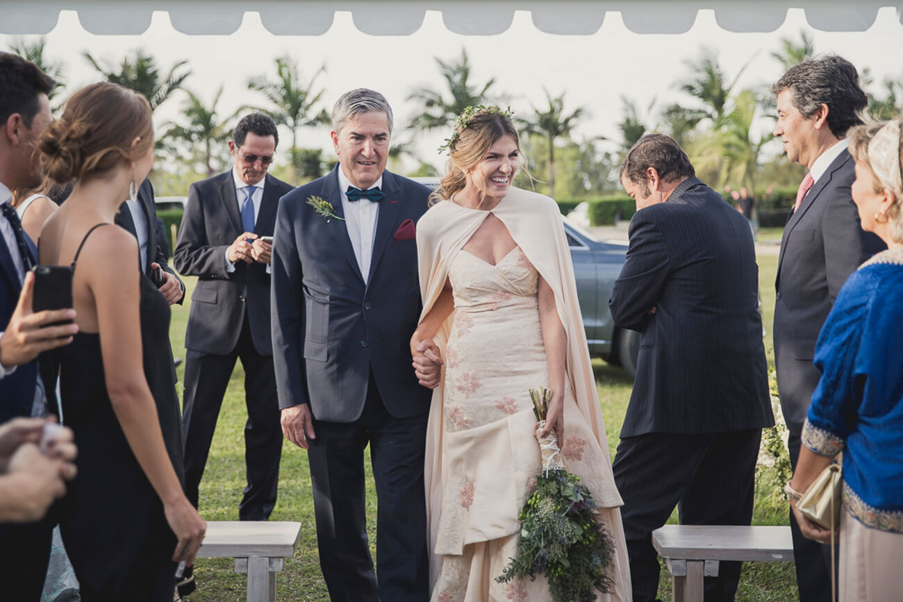 Momentos es que te pregunten por tu momento favorito de ese día y descubras que no fue solo uno, fueron muchos. “El primero, subirme al carro con mi papá. Él tiene una súper energía y yo tenía mucho afán. Yo había advertido que el que no llegara a las 4:00 p.m. no me veía casar, porque iba a empezar a esa hora en punto, pero mi papá llamó a Juli y ella le dijo que la gente apenas estaba llegando, entonces paramos en una tienda a tomar Manzana Postobón. Ese momento me encantó, en una tienda, con él, haciendo tiempo”.