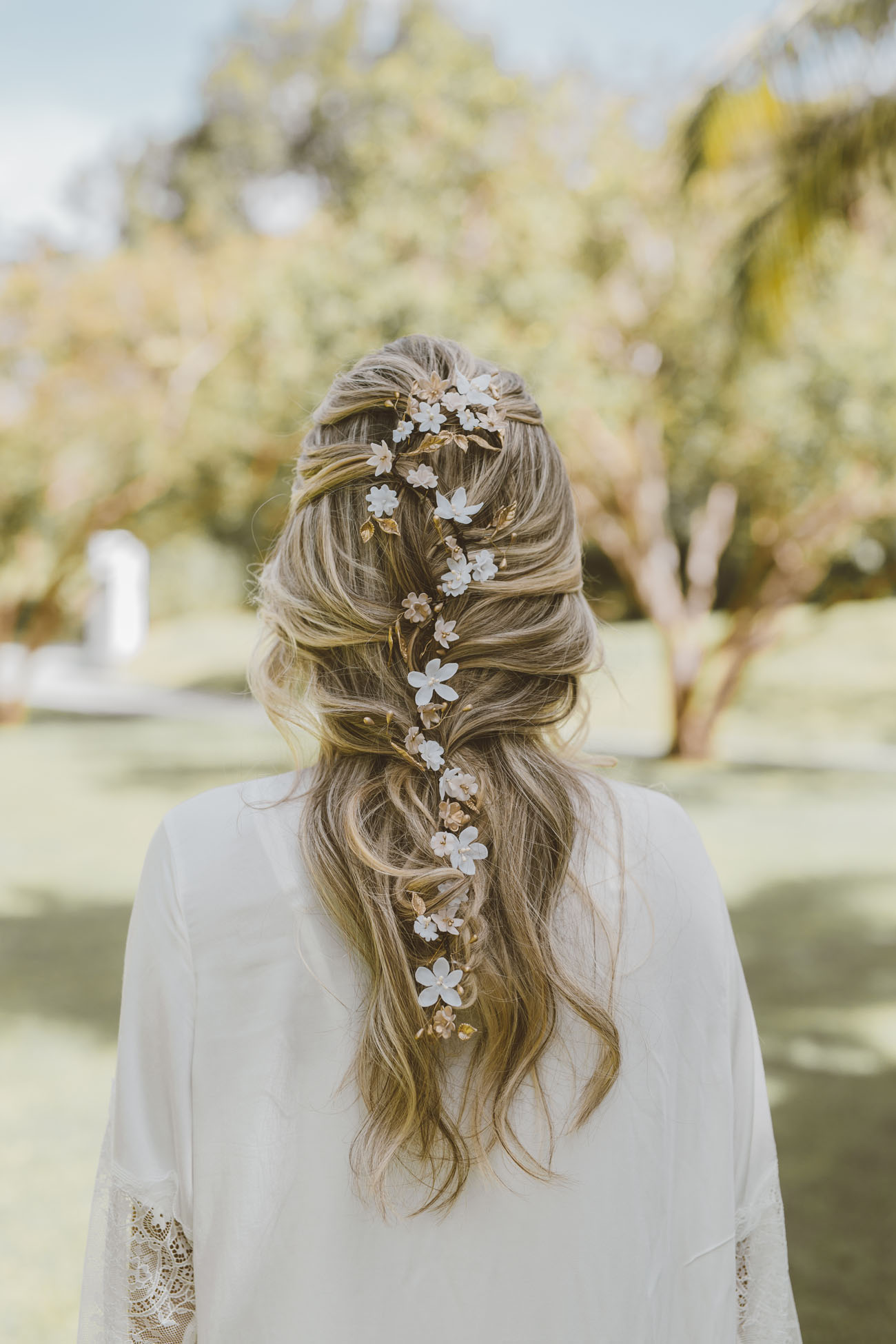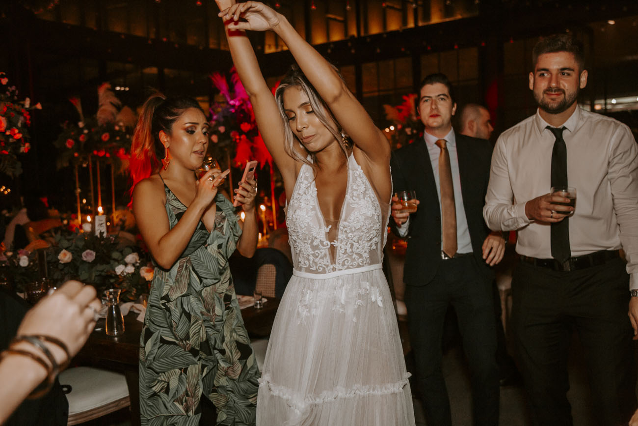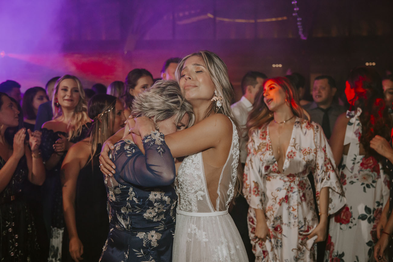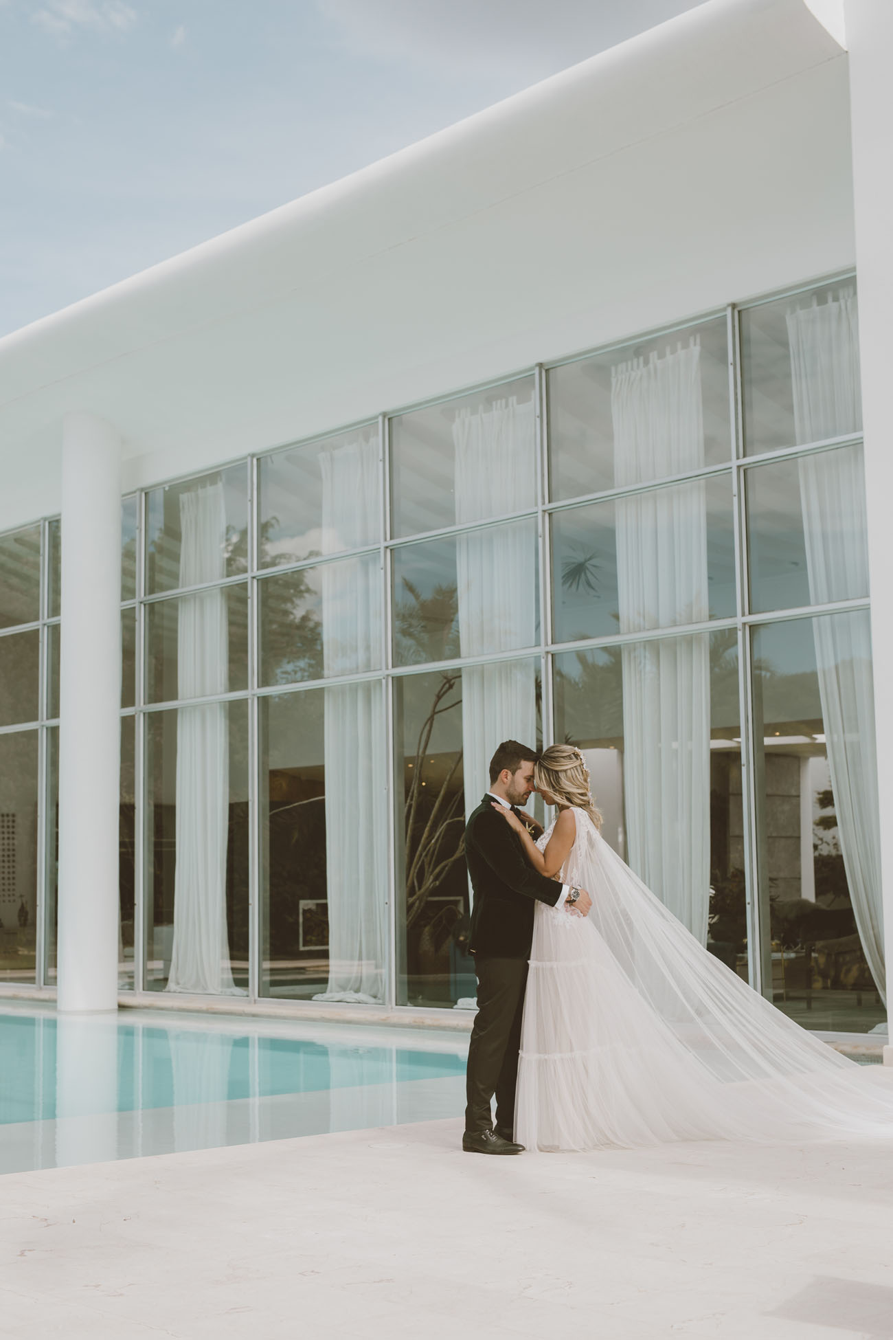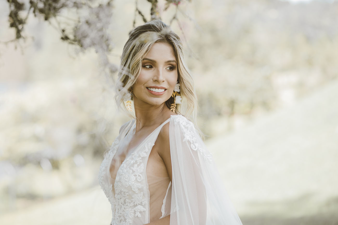 Si para la fiesta Melissa tenía muchas cosas claras, para el vestido no tanto. No sabía si mandarlo a hacer, si alquilarlo, si comprarlo. Le recomendaron varios lugares y se dedicó a buscar su silueta. Con eso listo, se enteró de De Novia a Novia y allí lo encontró: uno de la colección cápsula de Luisa Nicholls. Lo compró y se reunió con ella para ajustar detalles. Una capa, por ejemplo. Ese vestido que Luisa diseñó pensando en alguna novia se convirtió en el vestido de Melissa. En el que se sintió ella, en el que se disfrutó como sin afanes.