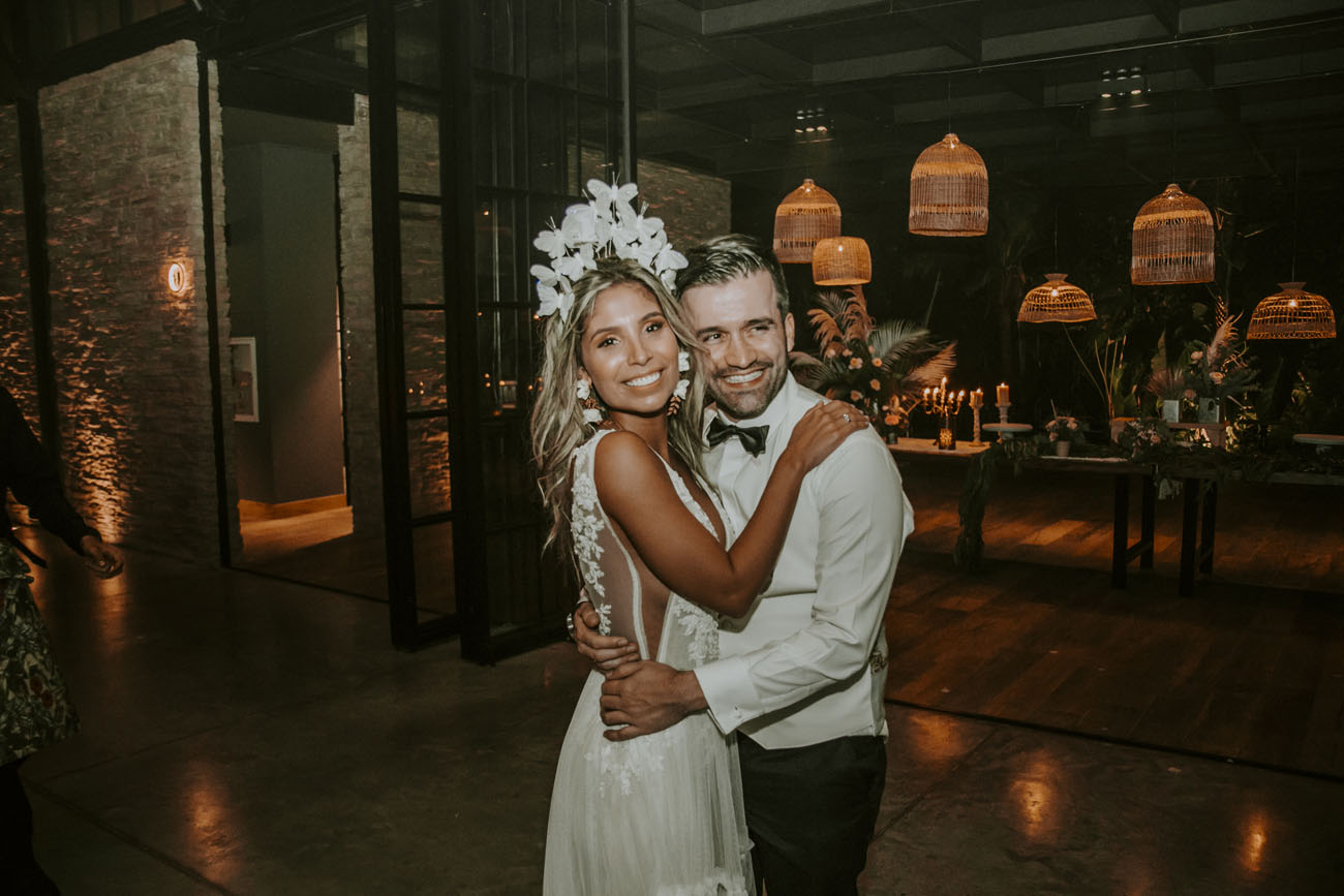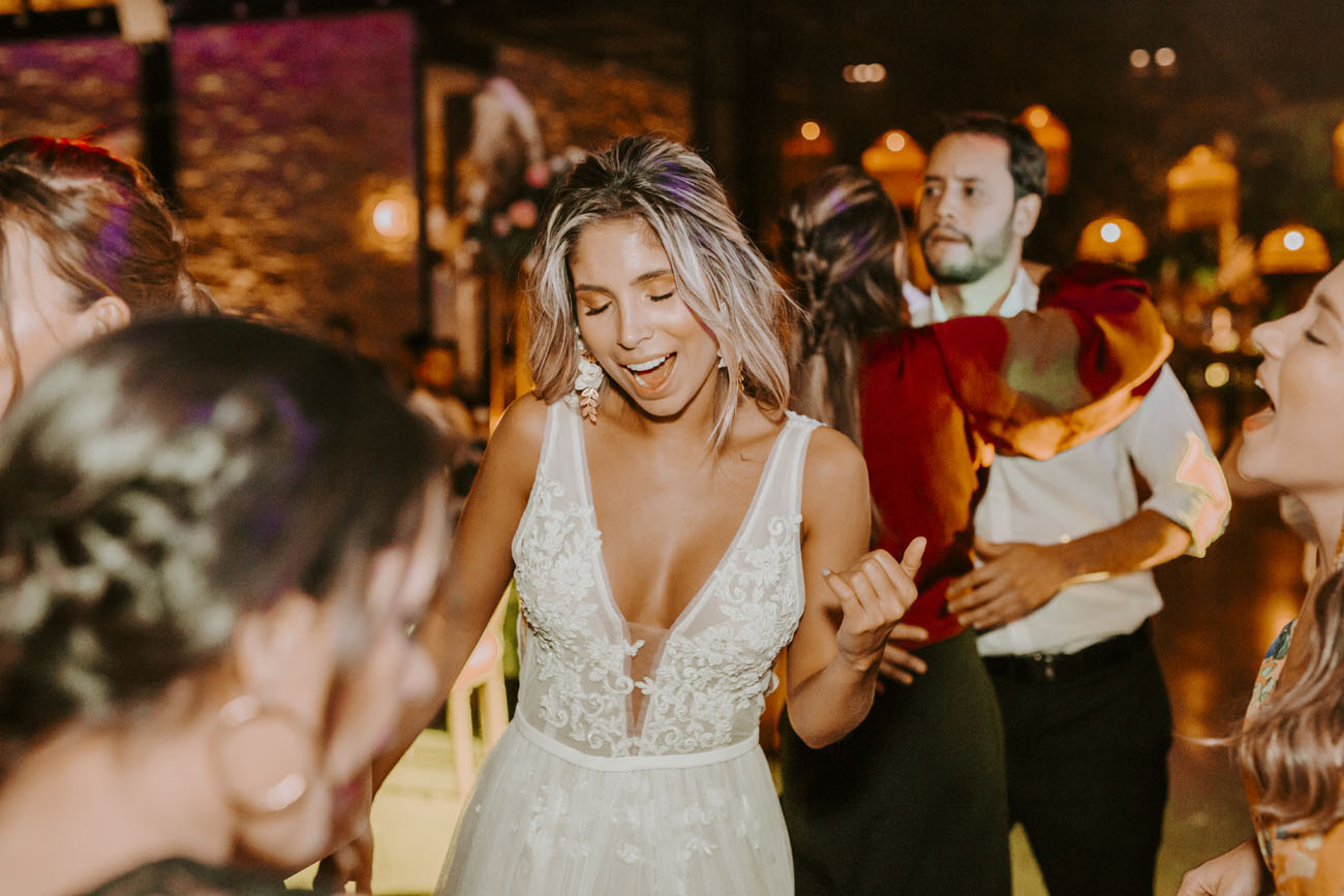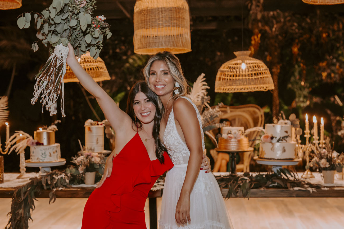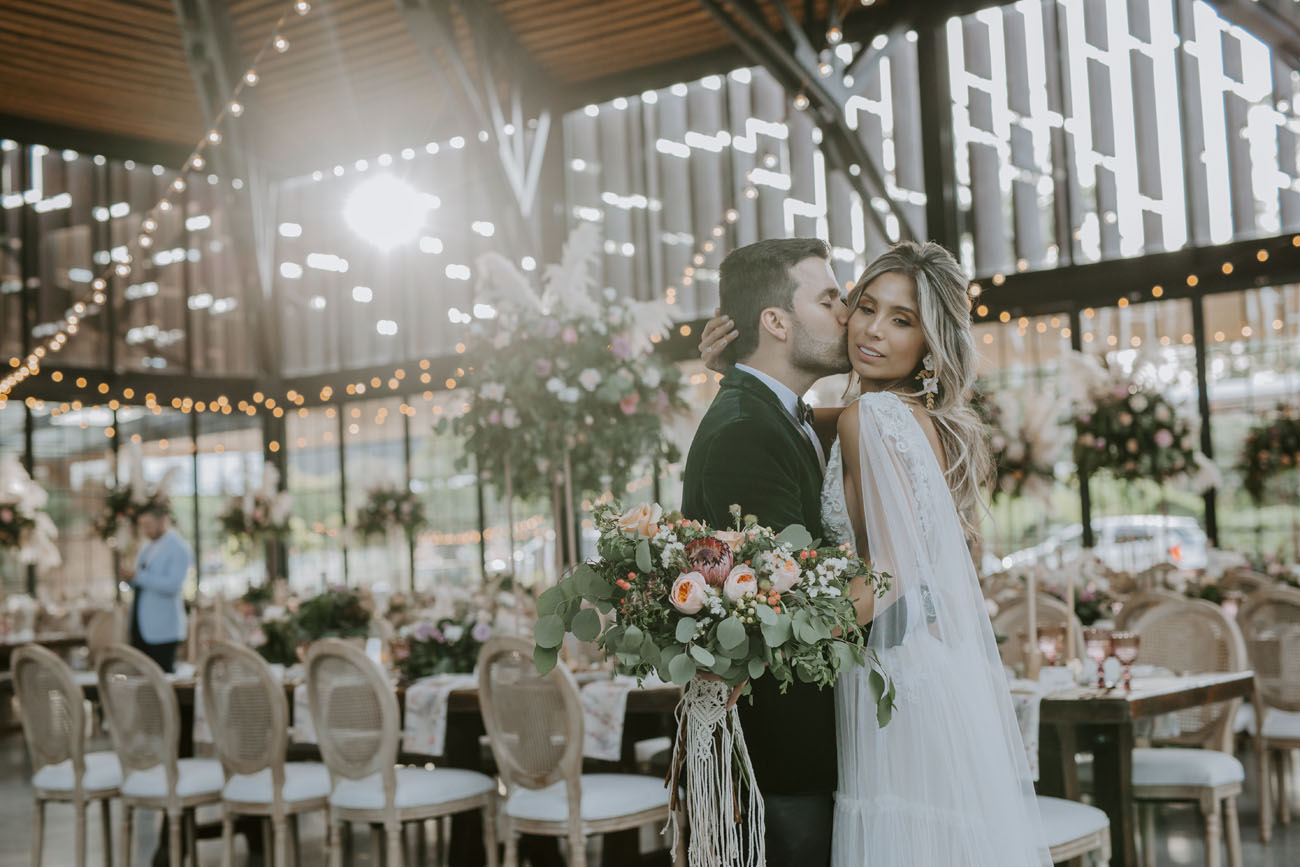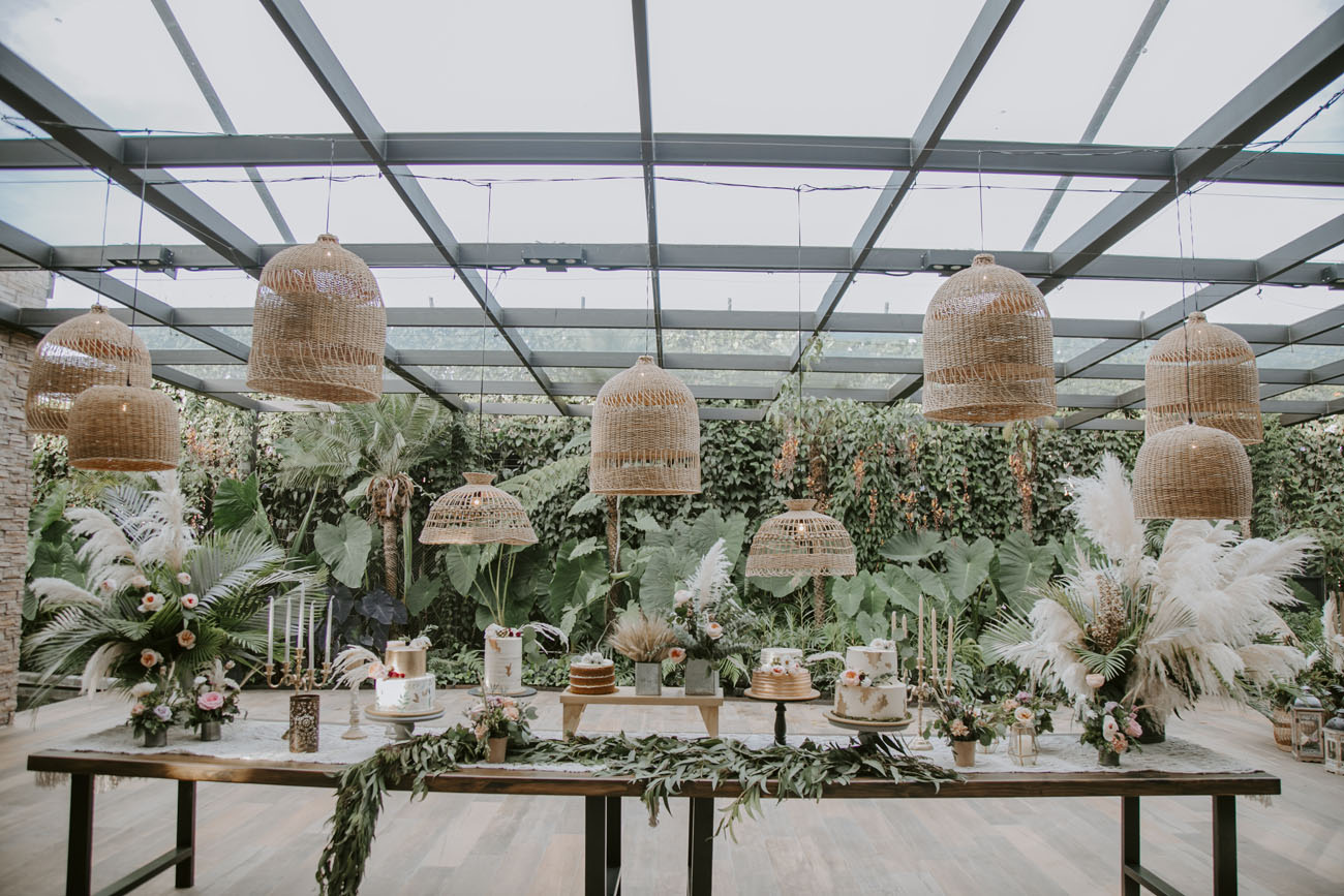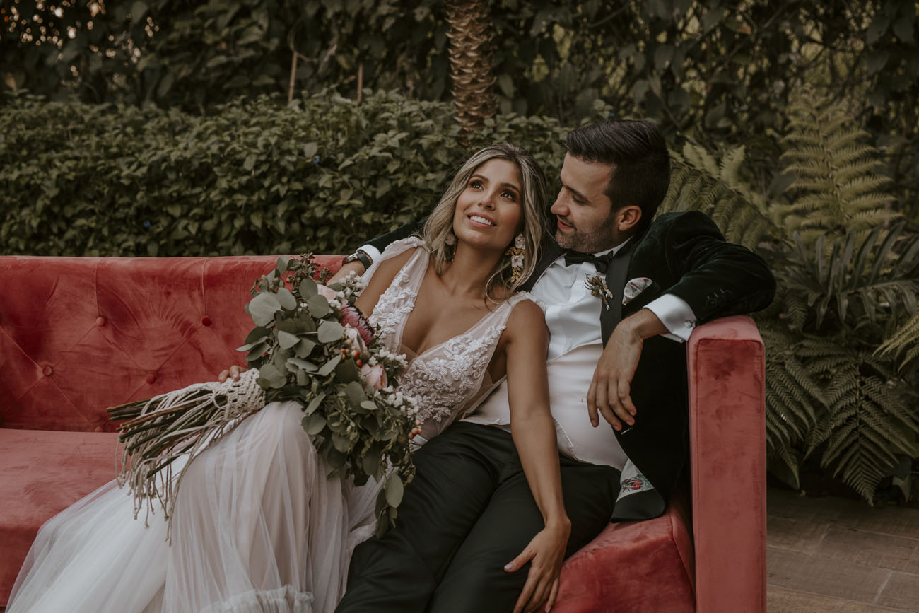 Tenían claro que querían una fiesta. Sobre todo, por Rafa: tan amiguero, tan social, con una familia tan grande. Querían una rumba; ese era el centro de todo el asunto. Una rumba para gozarse la vida, el amor, el tiempo juntos. Querían un lugar que sus amigos (con los que suelen ir a más matrimonios) no conocieran. Eligieron Villa Celeste. Un lugar, también, que iba en la misma vía de la decoración: boho elegante. Un lugar acogedor y a la vez, con mucho verde.