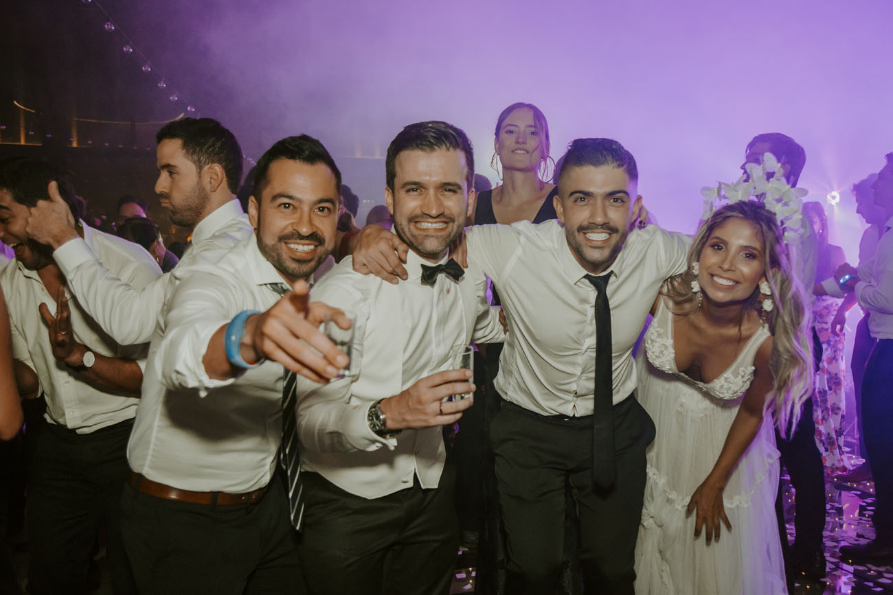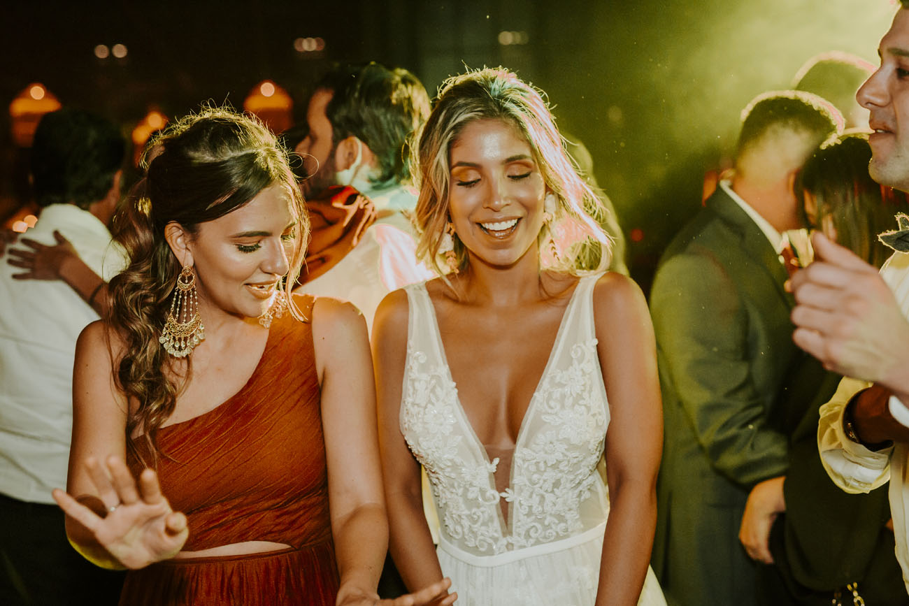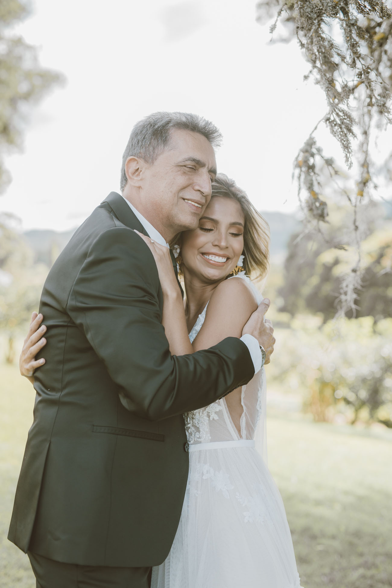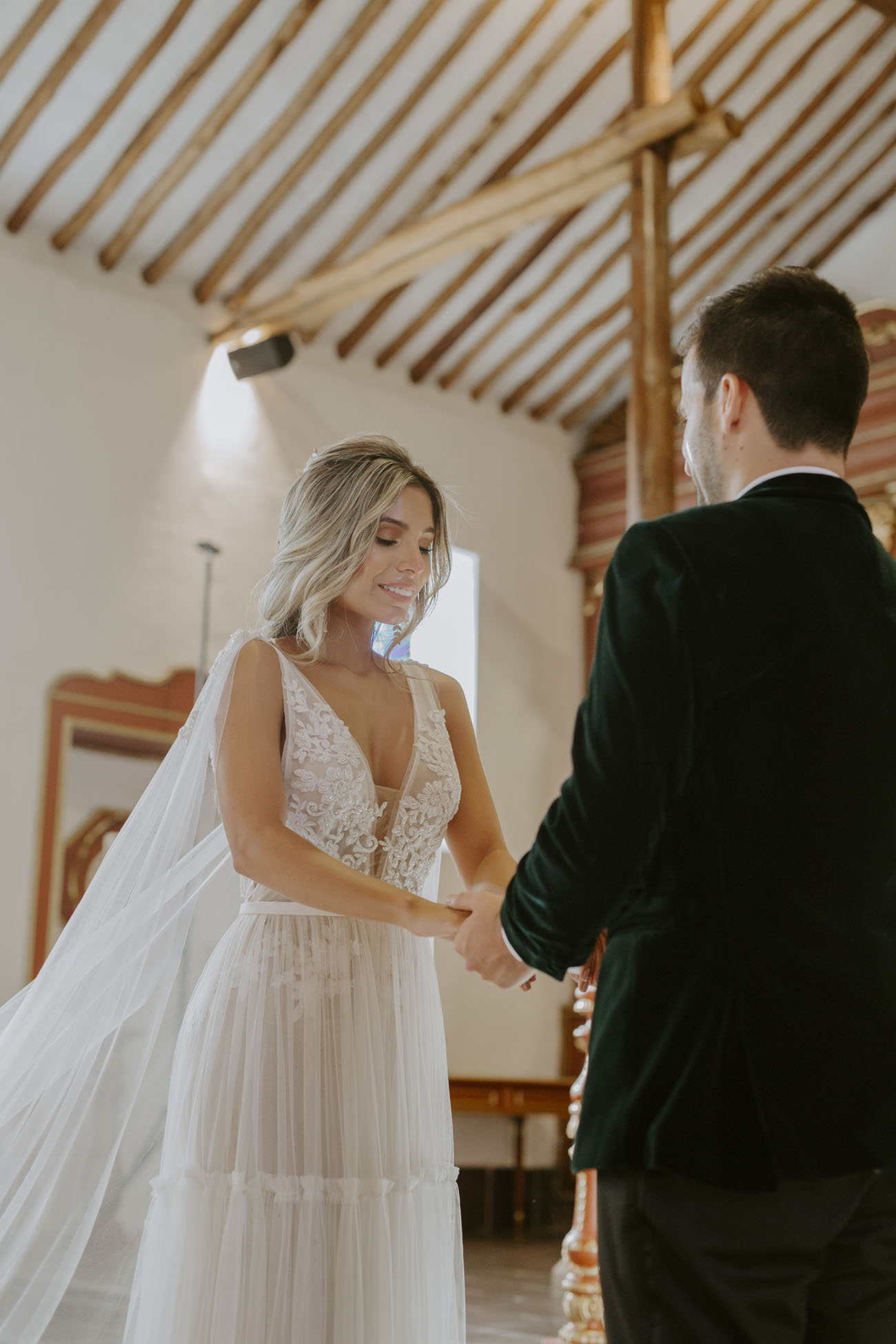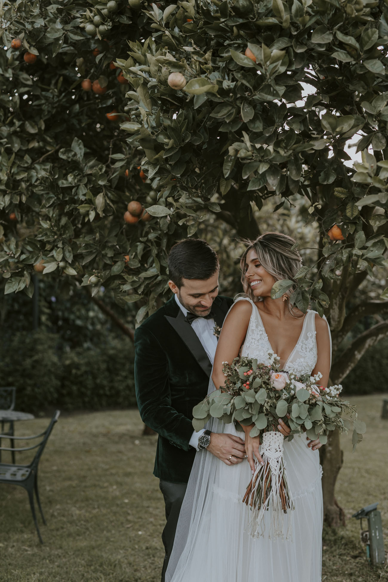 Tenían claro que querían una fiesta. Sobre todo, por Rafa: tan amiguero, tan social, con una familia tan grande. Querían una rumba; ese era el centro de todo el asunto. Una rumba para gozarse la vida, el amor, el tiempo juntos. Querían un lugar que sus amigos (con los que suelen ir a más matrimonios) no conocieran. Eligieron Villa Celeste. Un lugar, también, que iba en la misma vía de la decoración: boho elegante. Un lugar acogedor y a la vez, con mucho verde.