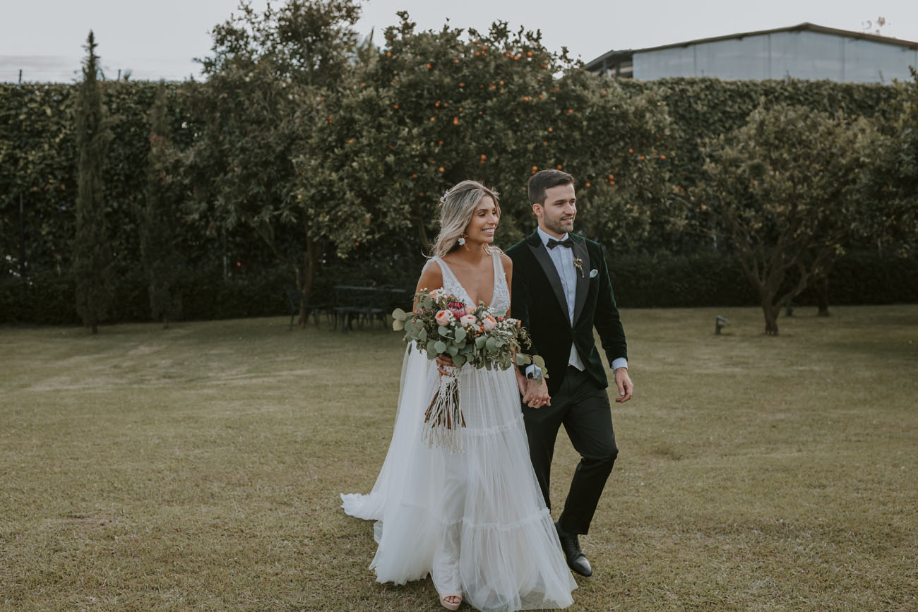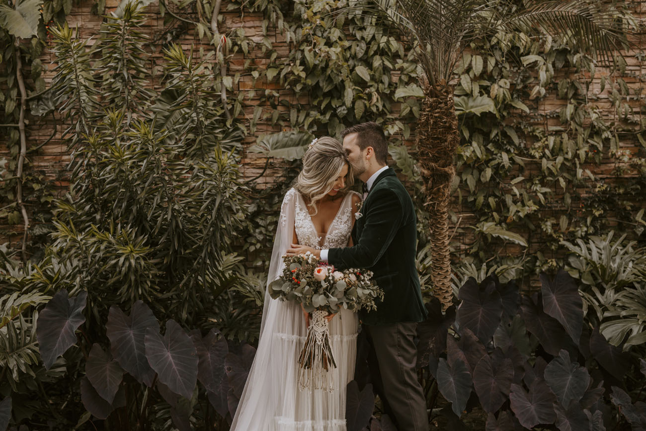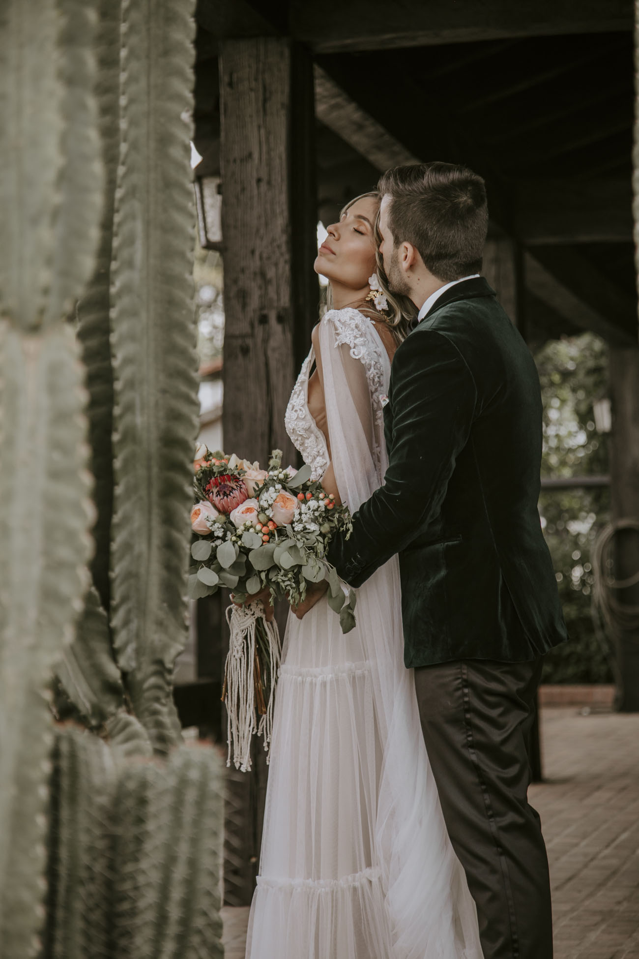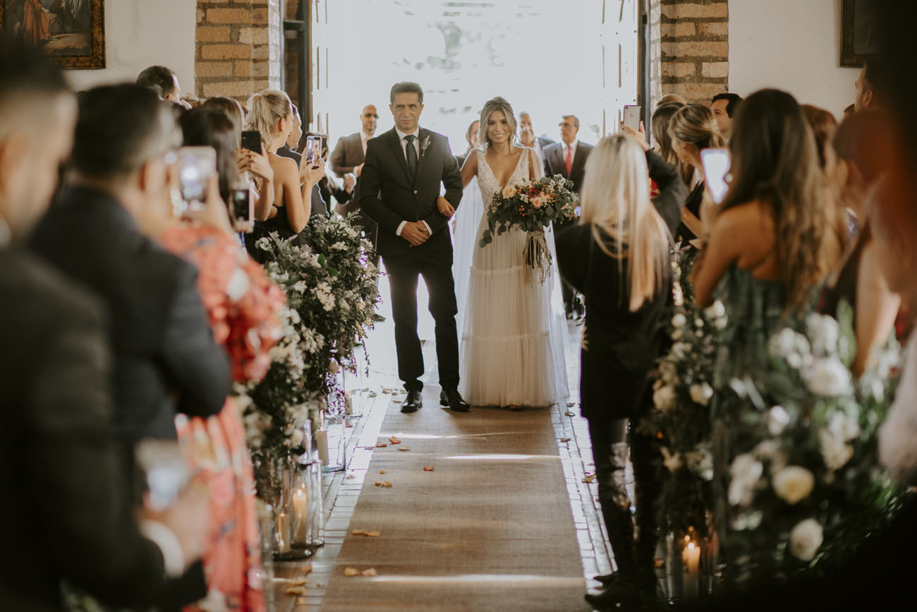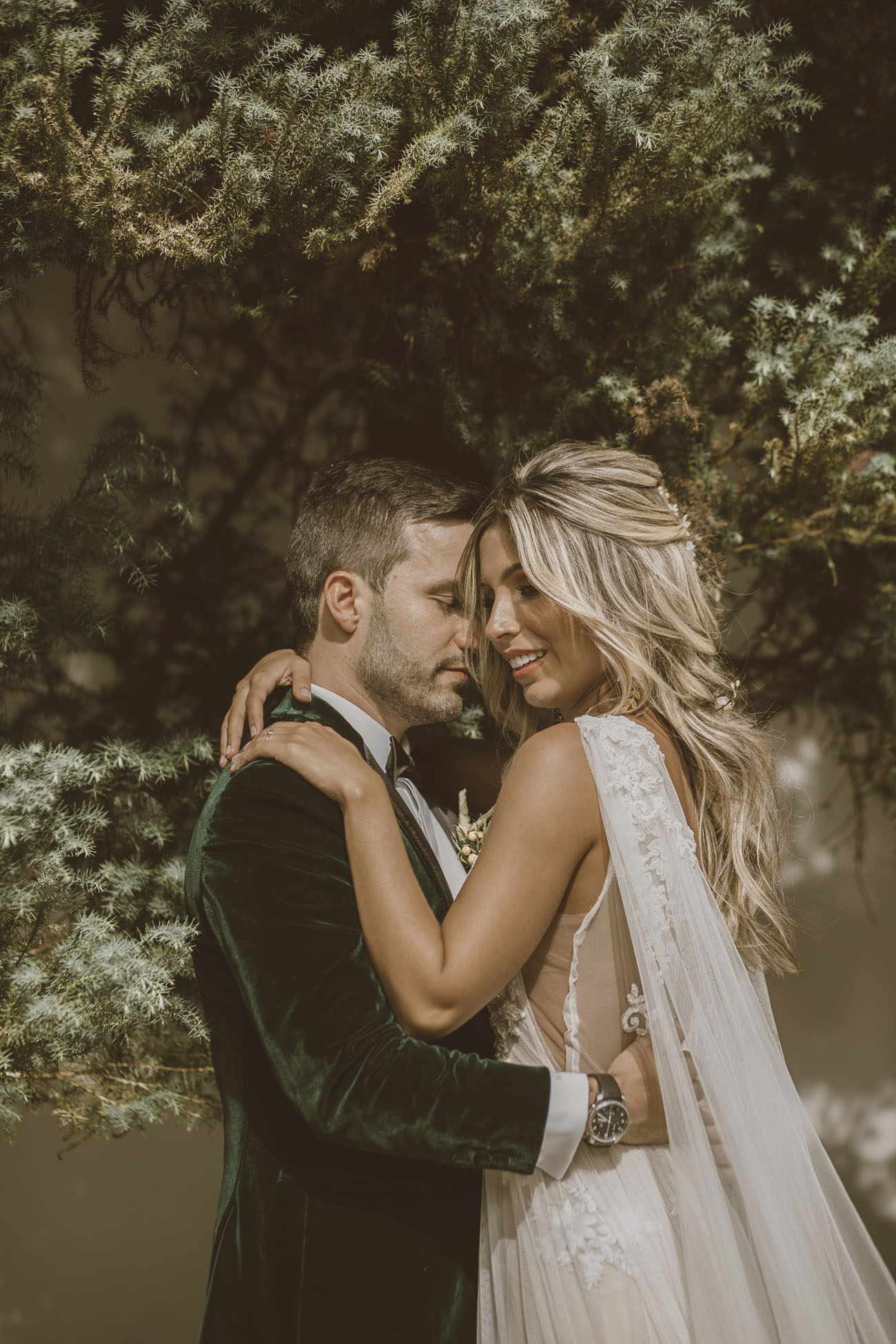 Tenían claro que querían una fiesta. Sobre todo, por Rafa: tan amiguero, tan social, con una familia tan grande. Querían una rumba; ese era el centro de todo el asunto. Una rumba para gozarse la vida, el amor, el tiempo juntos. Querían un lugar que sus amigos (con los que suelen ir a más matrimonios) no conocieran. Eligieron Villa Celeste. Un lugar, también, que iba en la misma vía de la decoración: boho elegante. Un lugar acogedor y a la vez, con mucho verde.