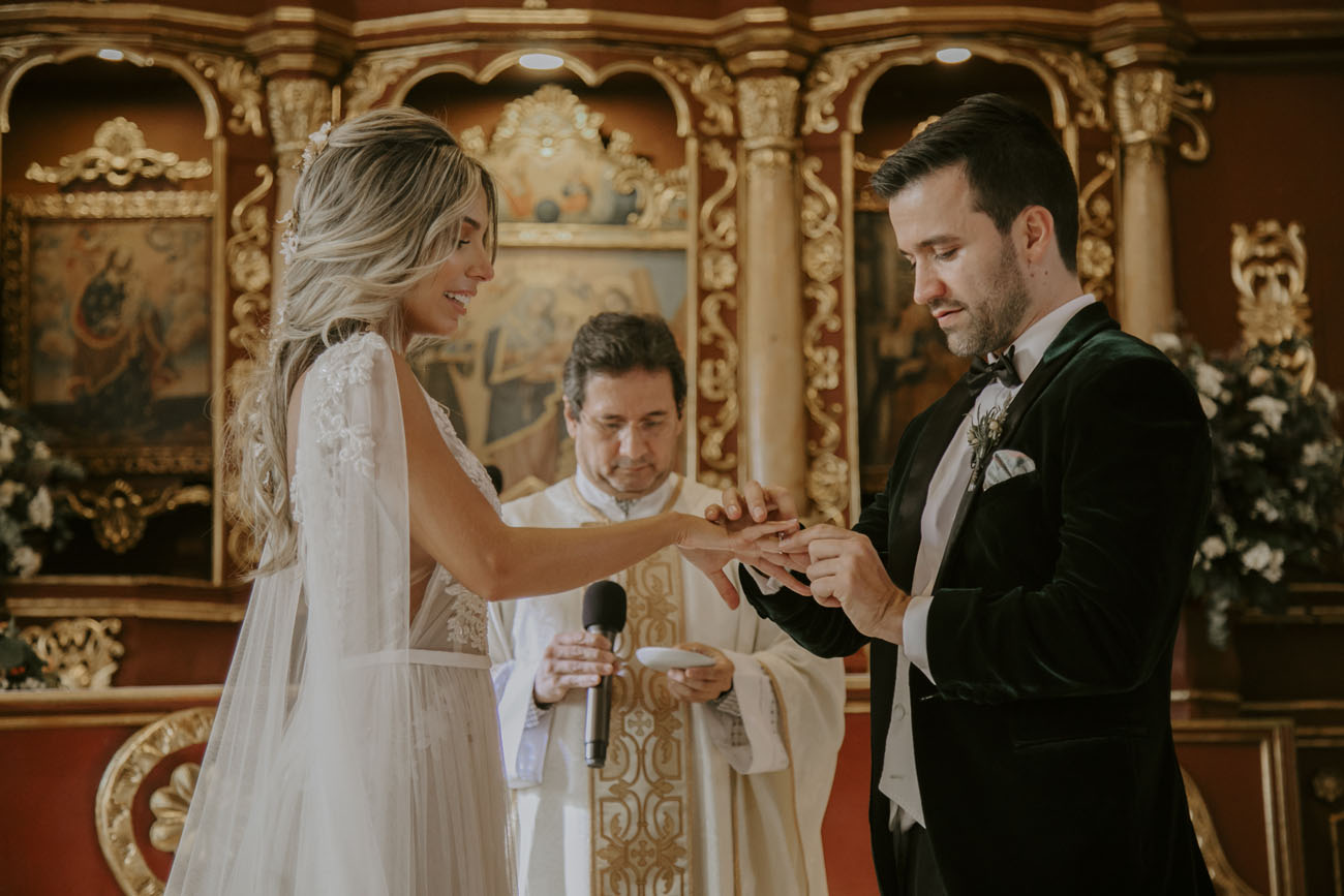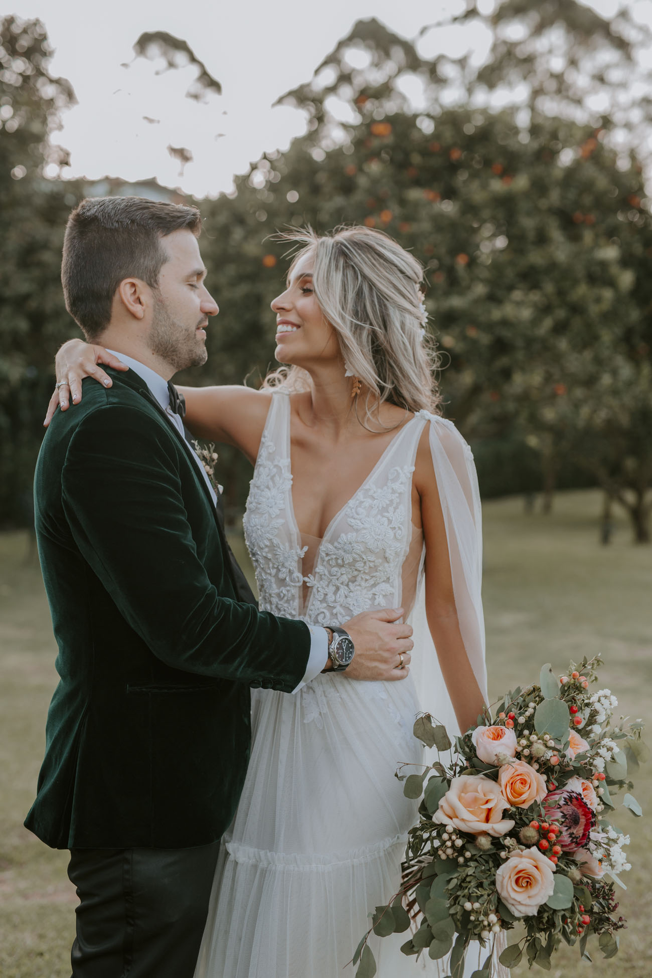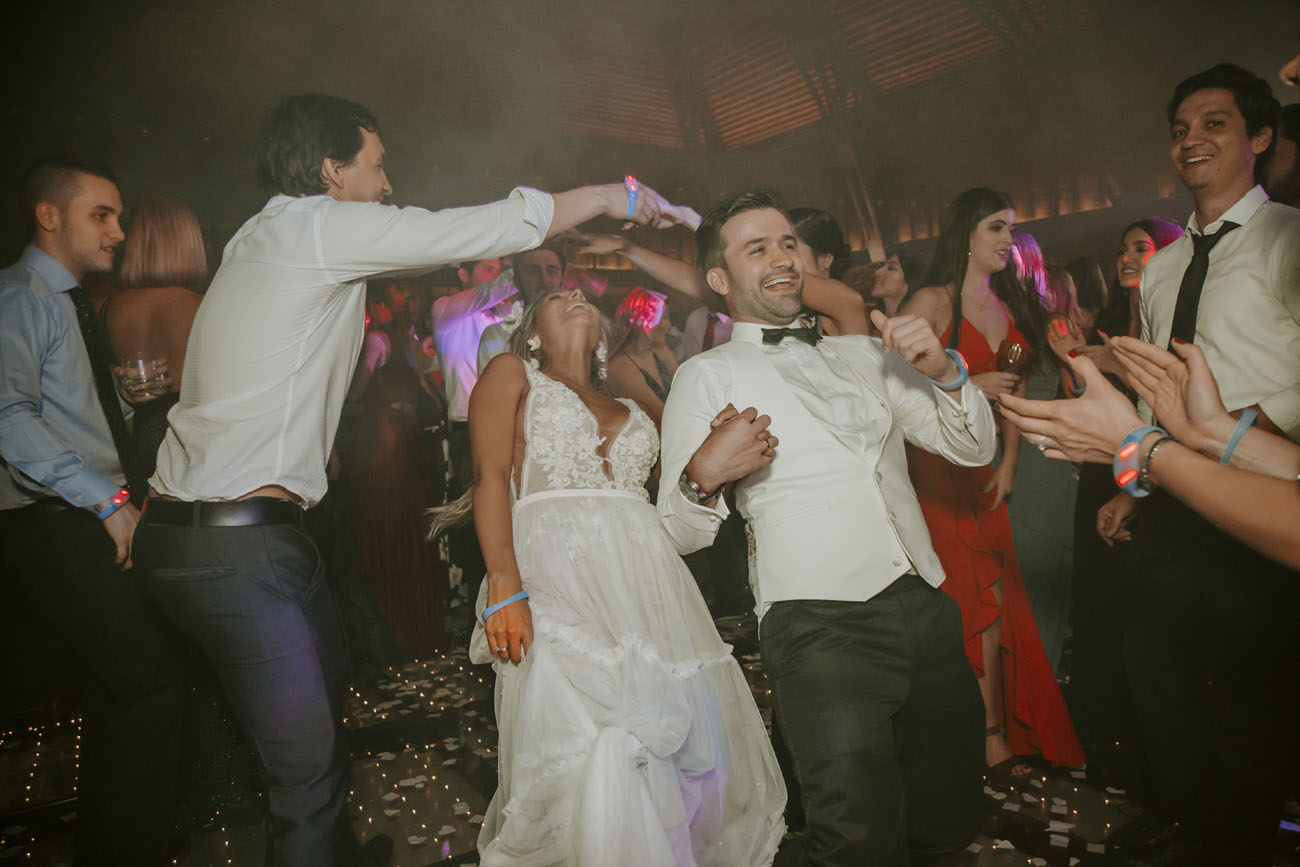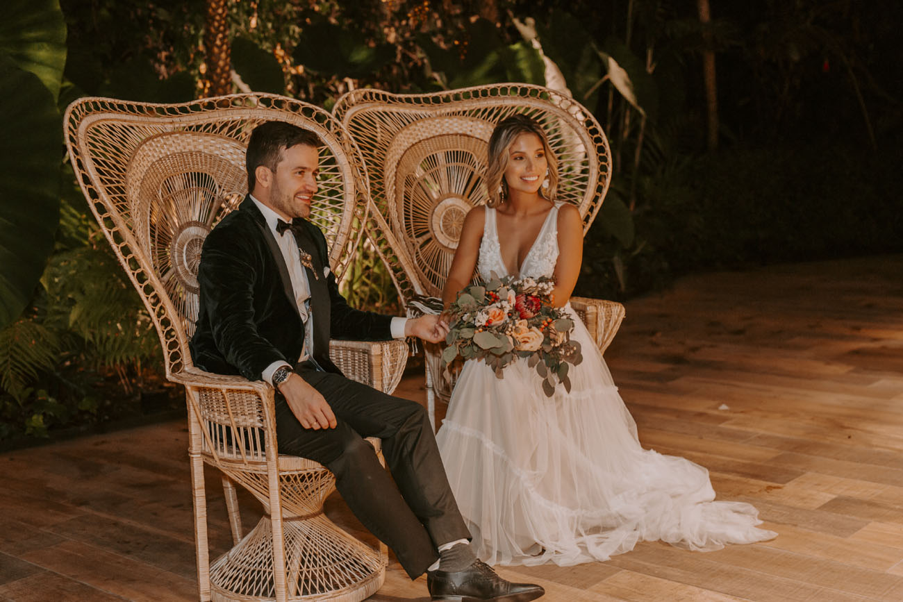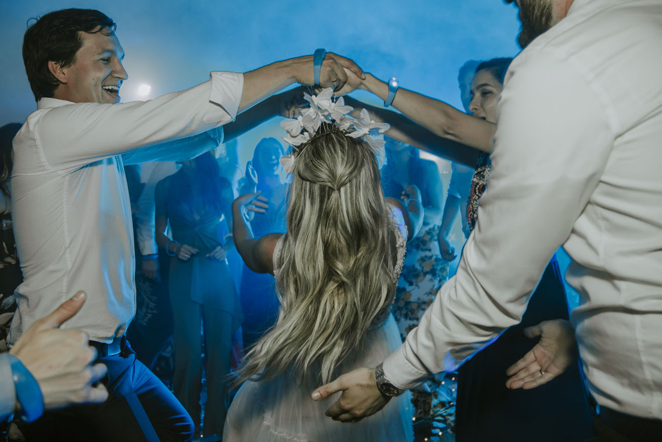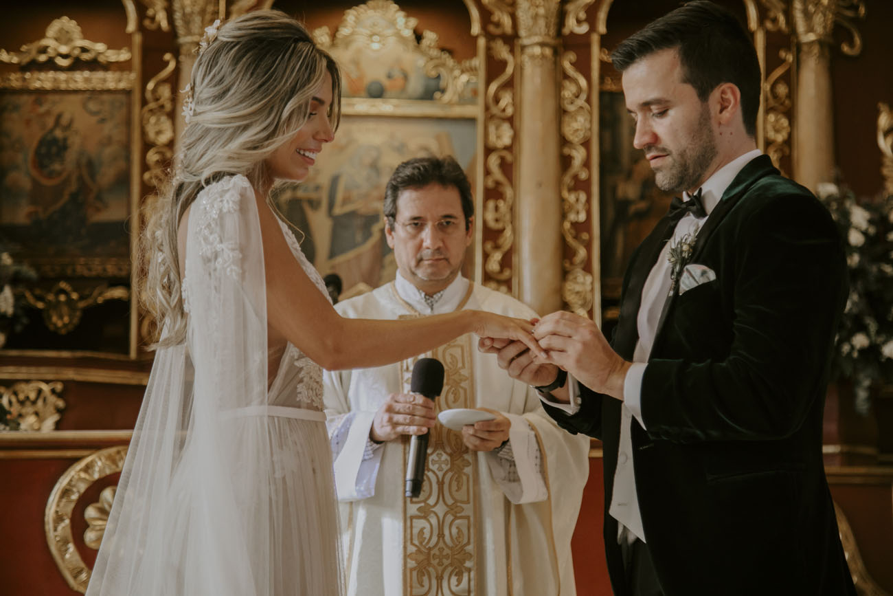 Tenían claro que querían una fiesta. Sobre todo, por Rafa: tan amiguero, tan social, con una familia tan grande. Querían una rumba; ese era el centro de todo el asunto. Una rumba para gozarse la vida, el amor, el tiempo juntos. Querían un lugar que sus amigos (con los que suelen ir a más matrimonios) no conocieran. Eligieron Villa Celeste. Un lugar, también, que iba en la misma vía de la decoración: boho elegante. Un lugar acogedor y a la vez, con mucho verde.