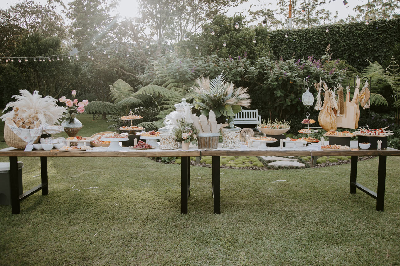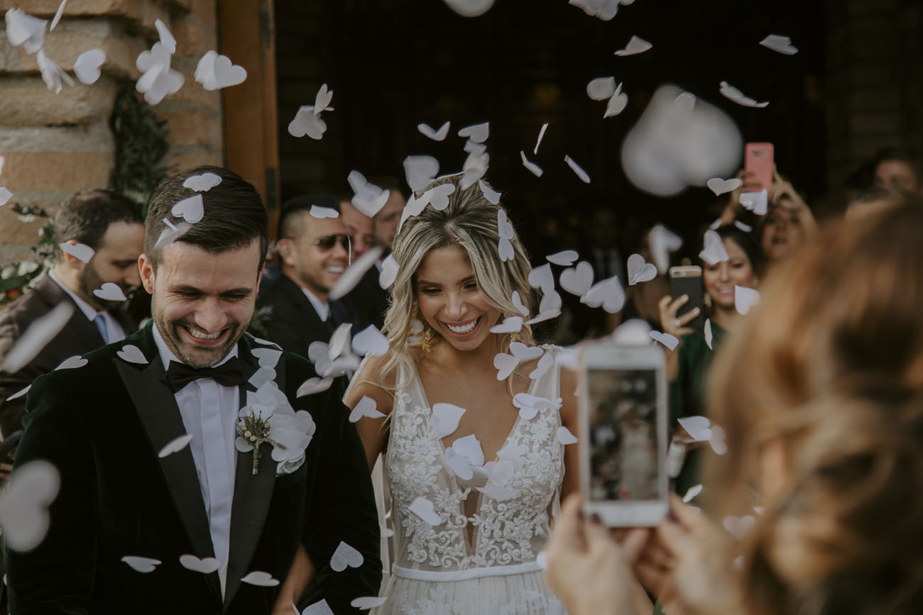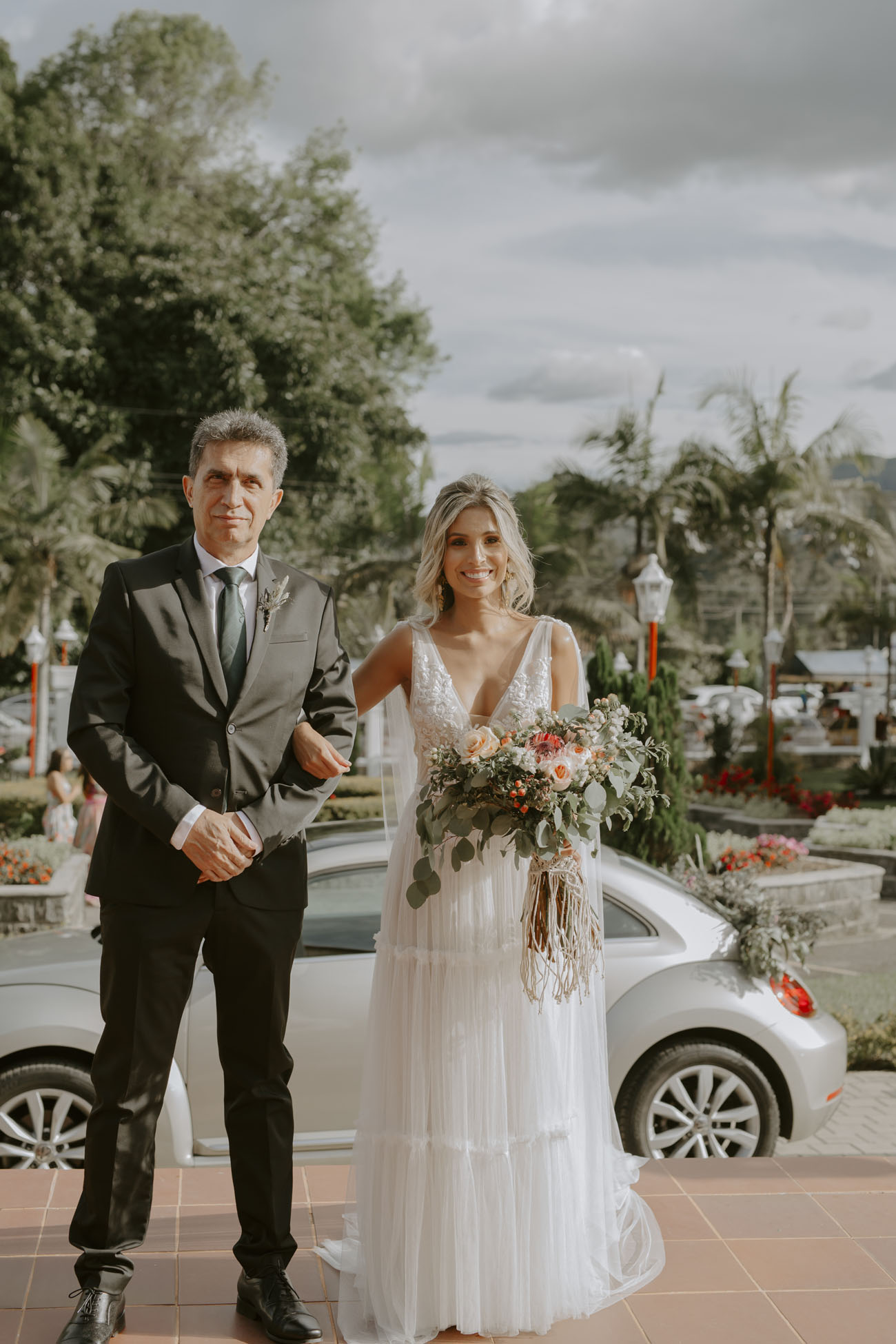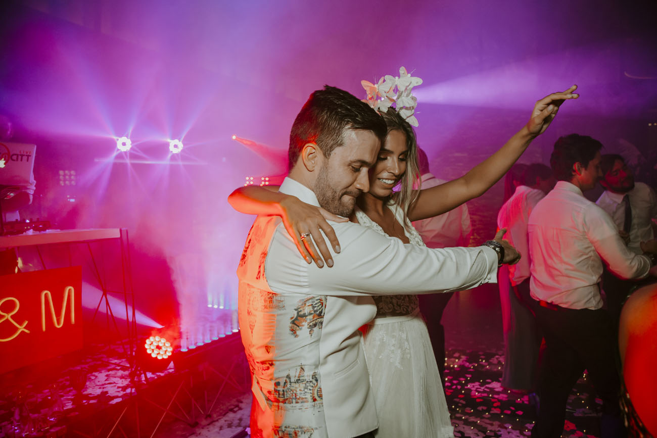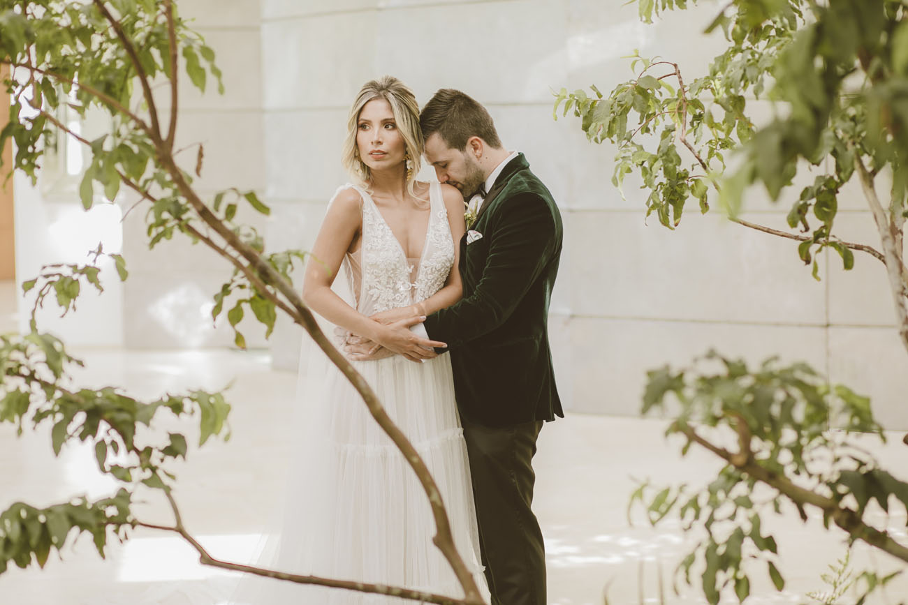 Tenían claro que querían una fiesta. Sobre todo, por Rafa: tan amiguero, tan social, con una familia tan grande. Querían una rumba; ese era el centro de todo el asunto. Una rumba para gozarse la vida, el amor, el tiempo juntos. Querían un lugar que sus amigos (con los que suelen ir a más matrimonios) no conocieran. Eligieron Villa Celeste. Un lugar, también, que iba en la misma vía de la decoración: boho elegante. Un lugar acogedor y a la vez, con mucho verde.