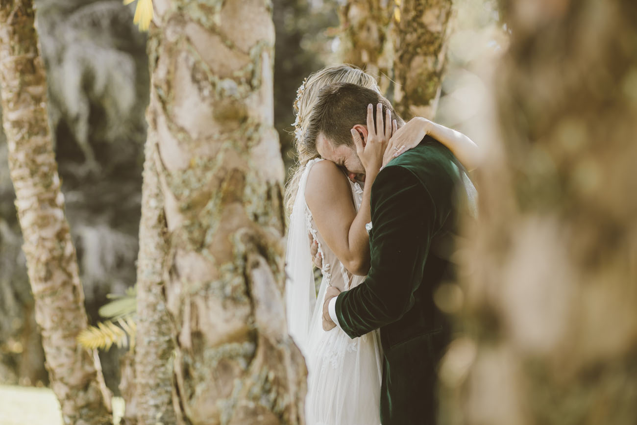 Cuando se vieron por primera vez: en esa sesión fotográfica que hicieron en una casa en Fizebad antes, mucho antes de la ceremonia. Los dos, en la intimidad de la naturaleza mirándose a los ojos, hablándose desde lágrimas de alegría, desde manos temblorosas de amor, desde la serenidad de estar más juntos que siempre.