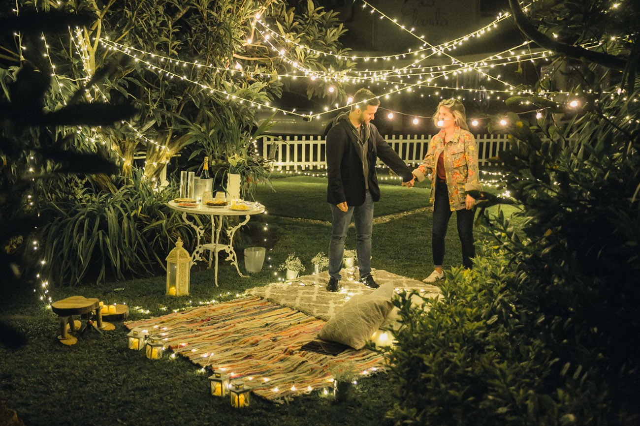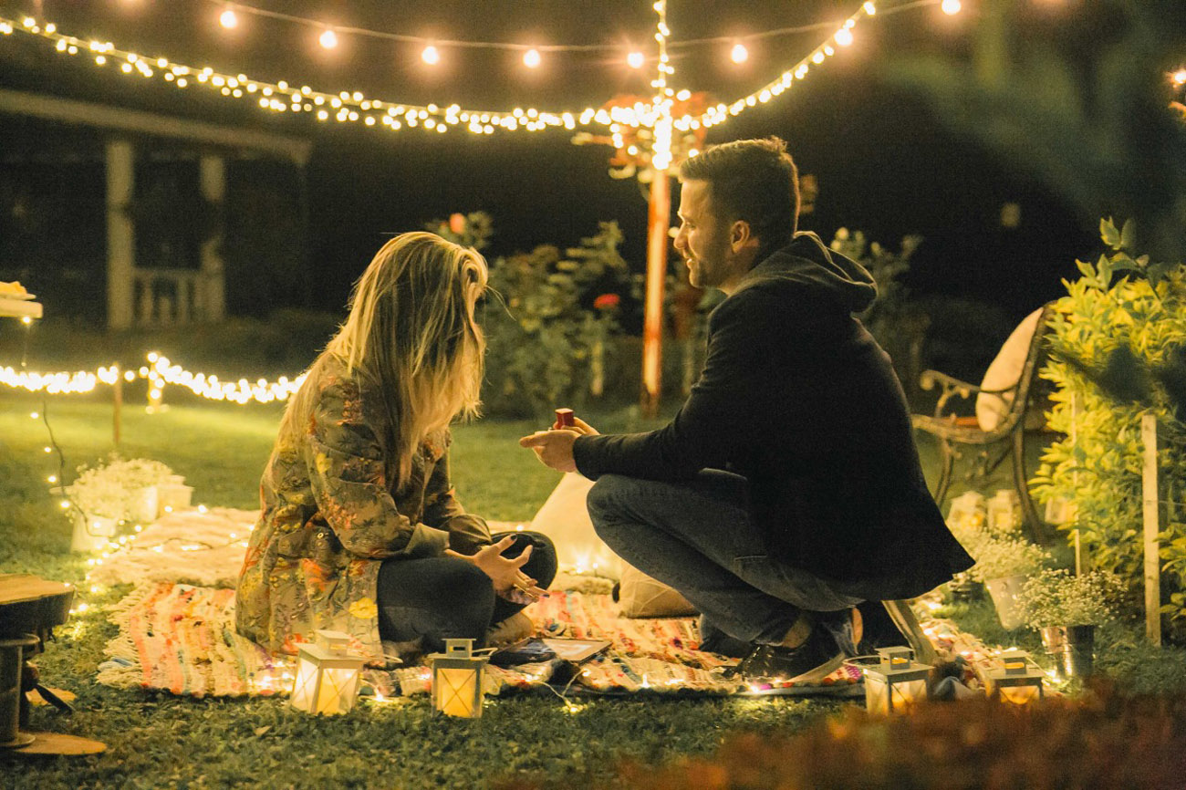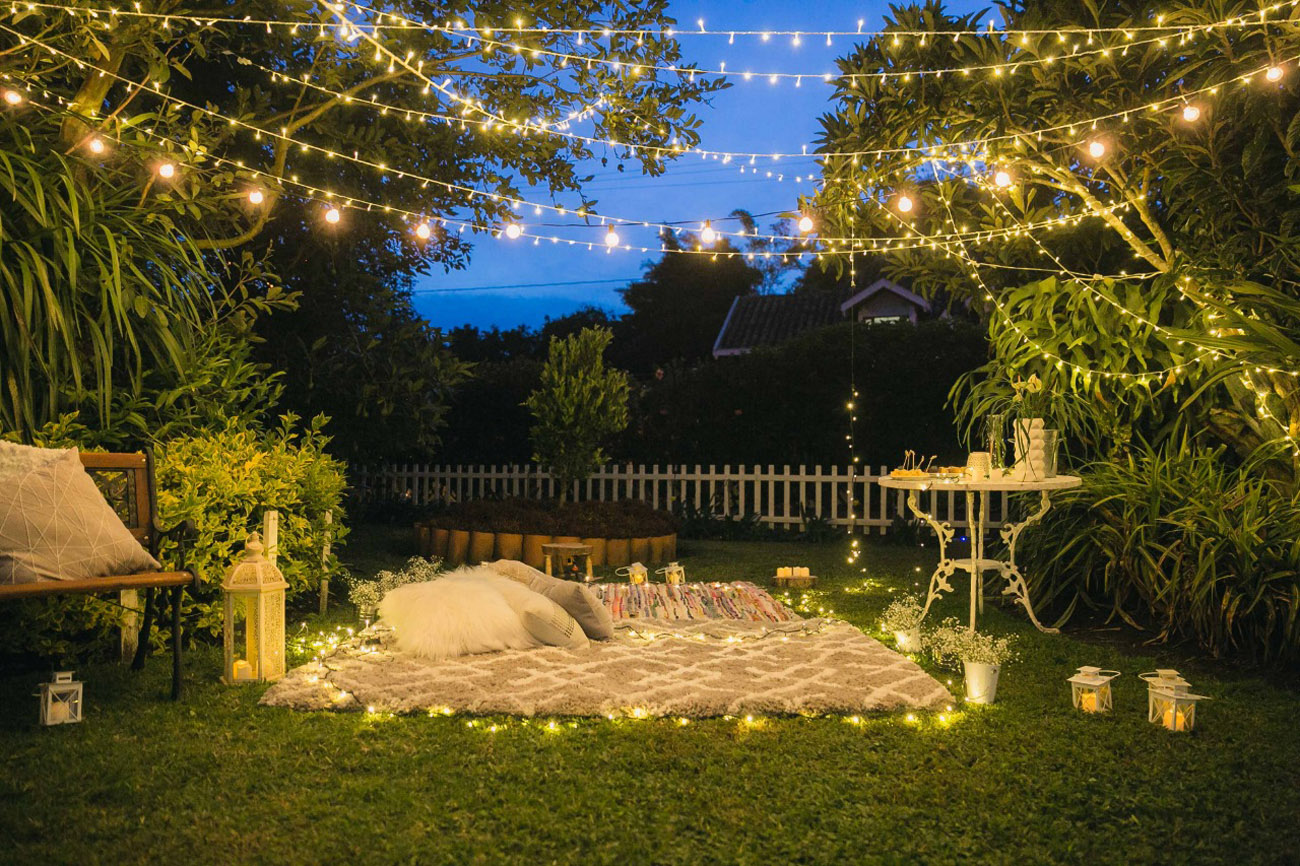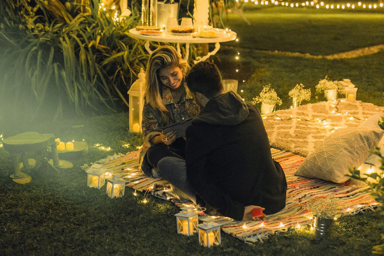 Aquí les compatirmos los detalles de ese picnic nocturno, con lucecitas, cojines, mantas, velas y flores. Un sí en un rinconcito romántico y acogedor.