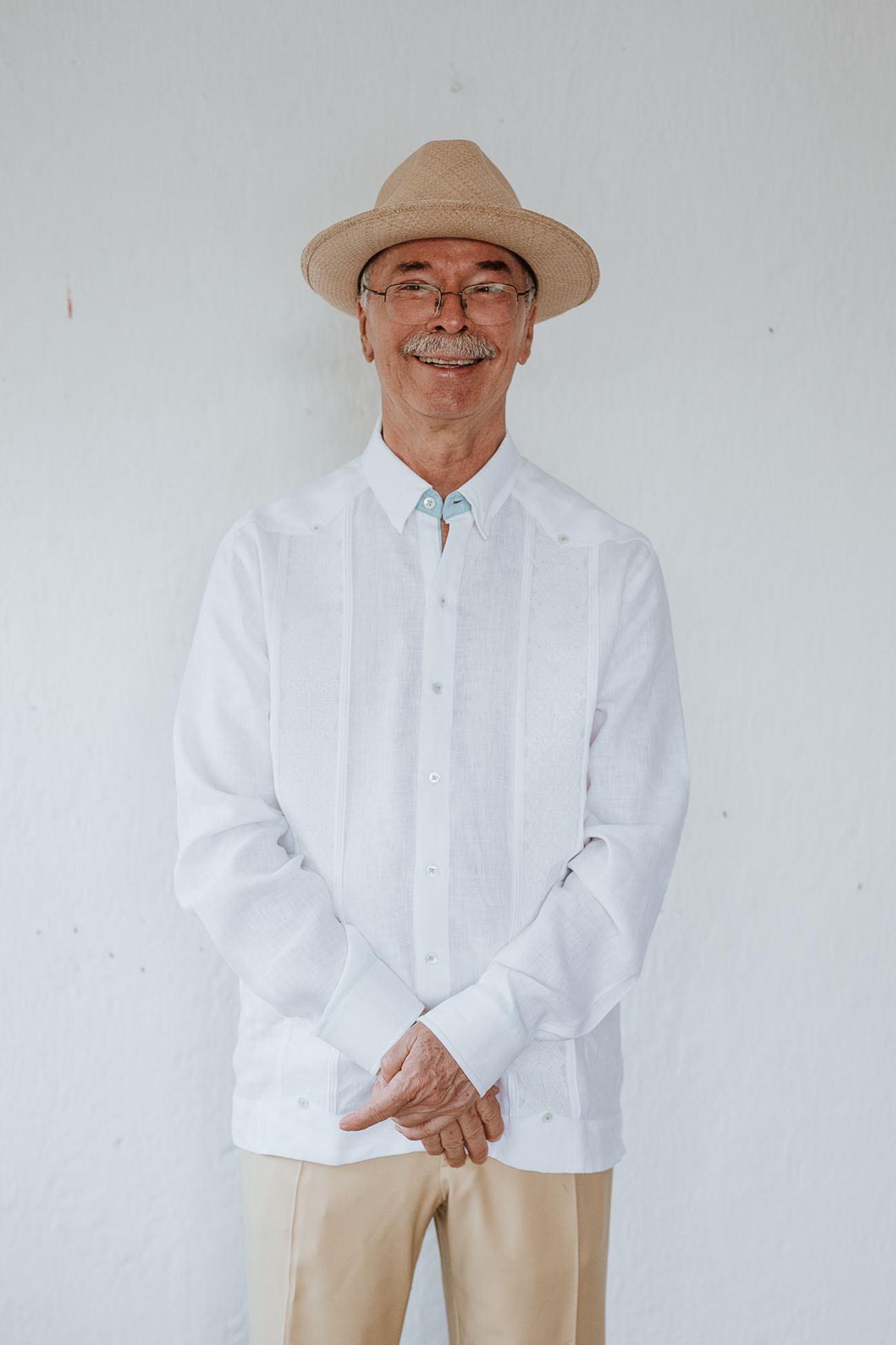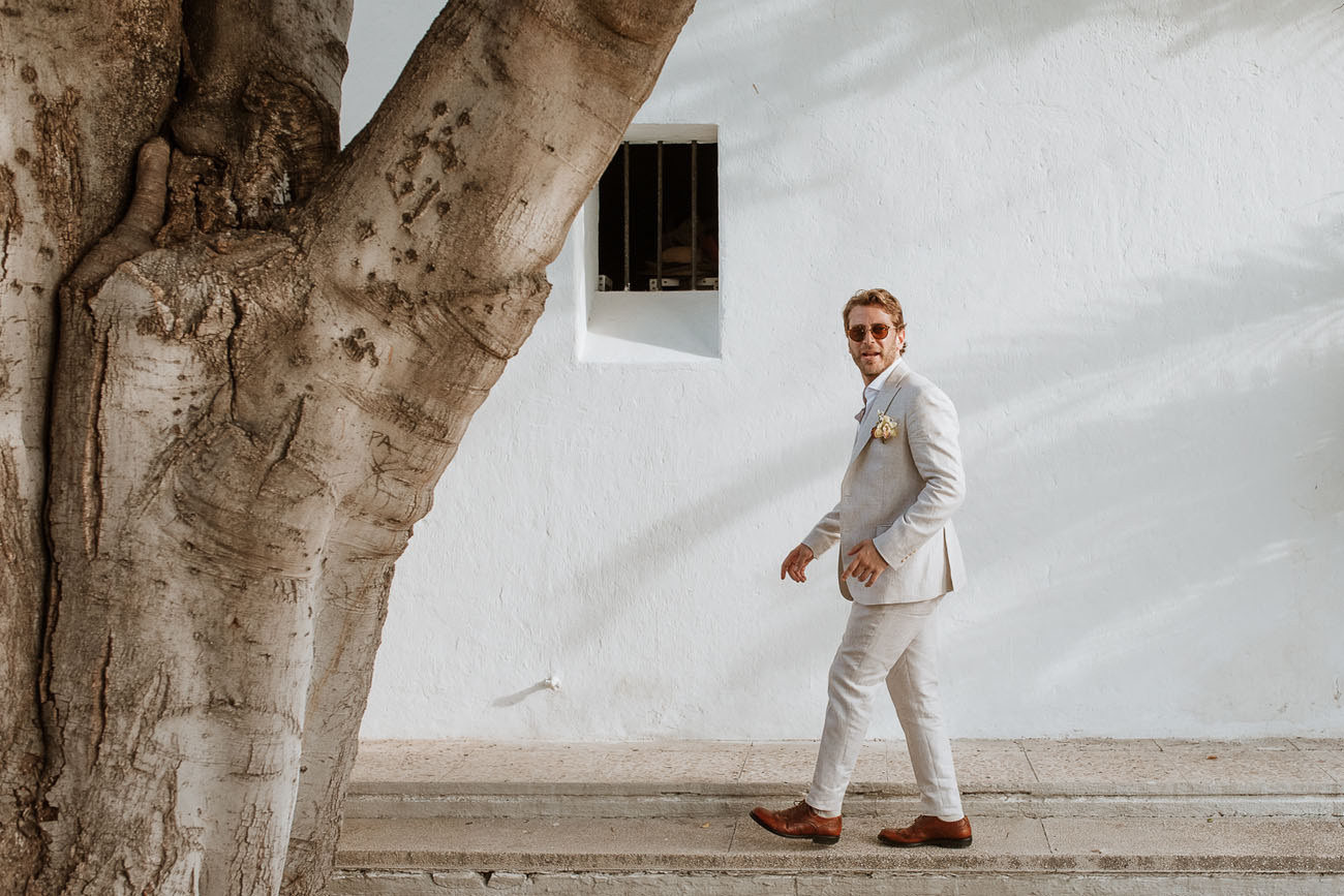 El traje de José fue de Whitman. Siempre quiso algo elegante, pero fresco, entonces eligió un vestido en lino color hueso.