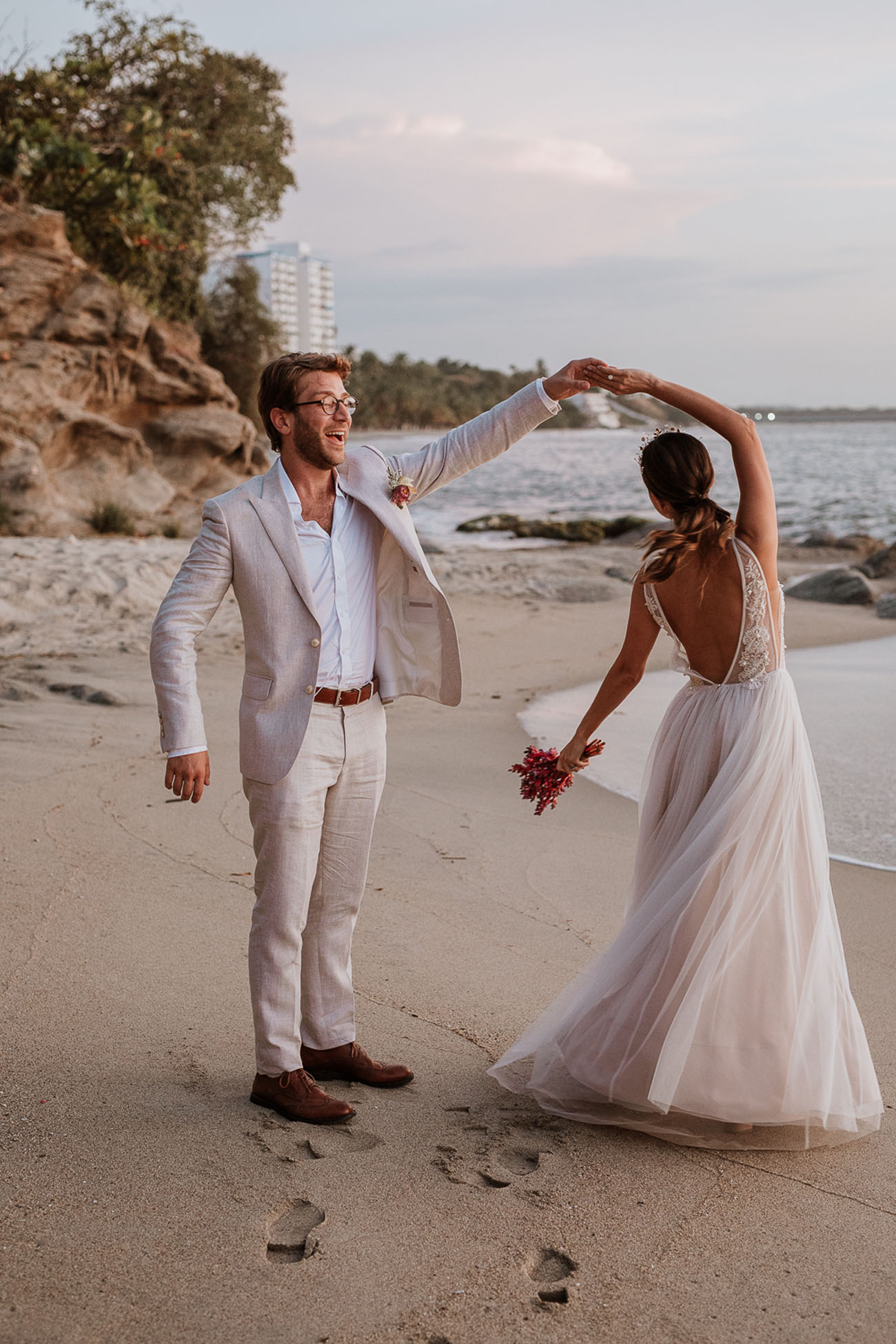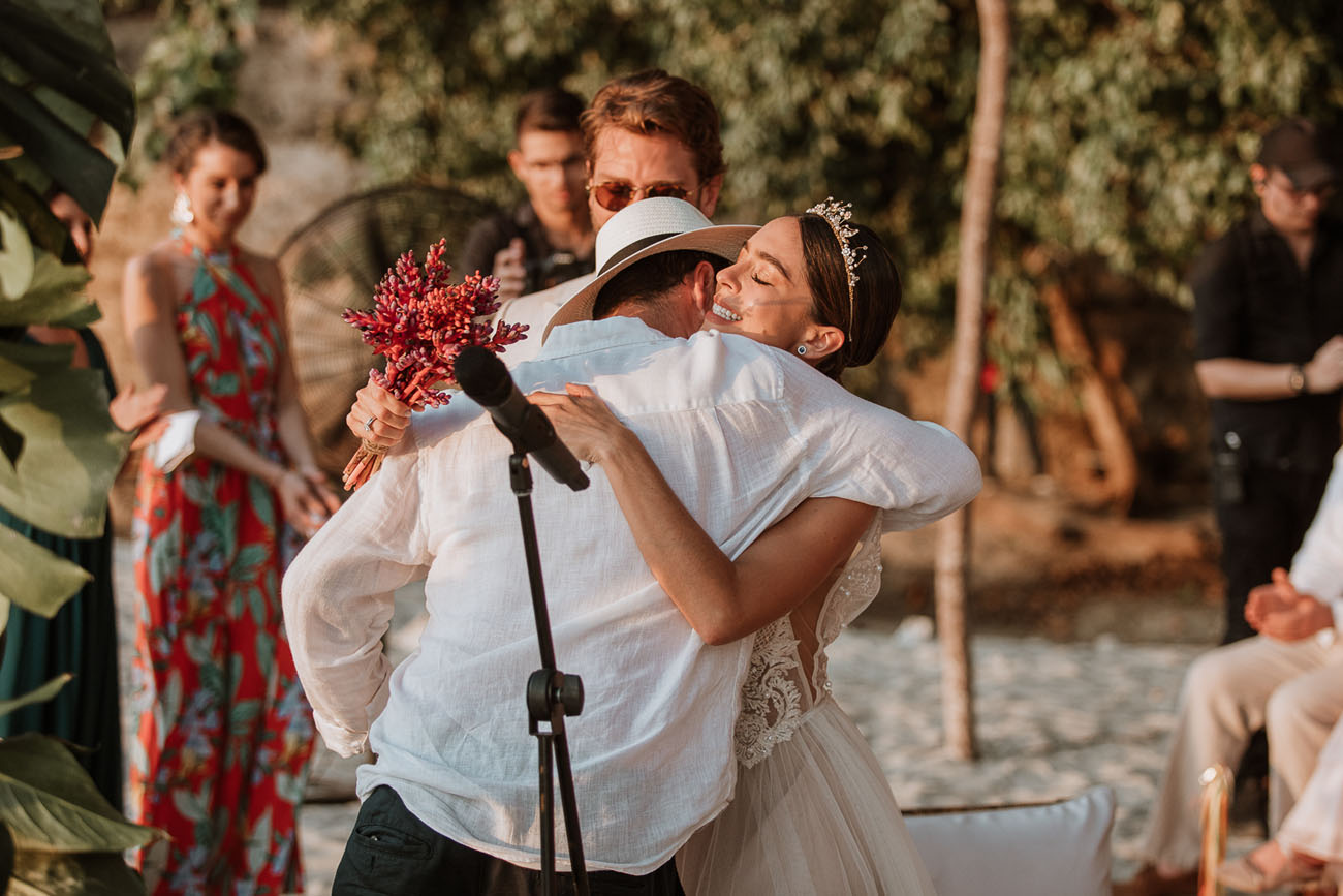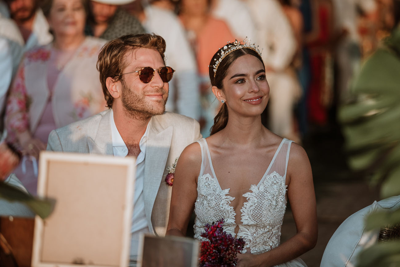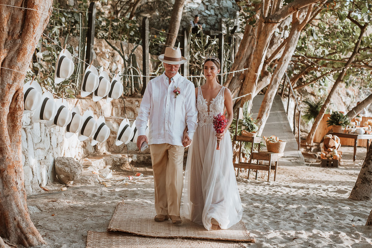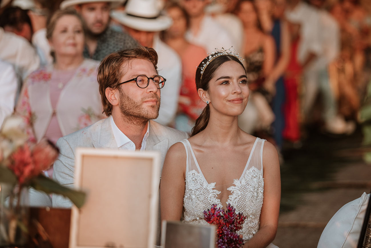Aunque el lugar que eligieron (Kapikua, en Santa Marta) no tenía algún significado para ellos, sí hacía alusión a esa nostalgia caribeña que querían tener como inspiración, como referencia, como sentir. Se antojaron de un matrimonio folclórico, combinado con la cultura mexicana (la mamá de ella es de ese país), con estética alternativa y romántica, con aires bohemios que desvincularan lo tradicional, lo clásico, lo rígido.