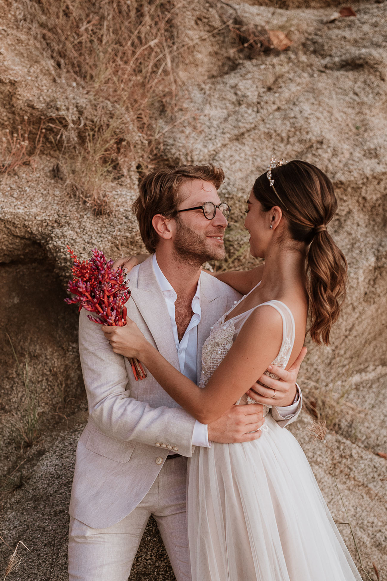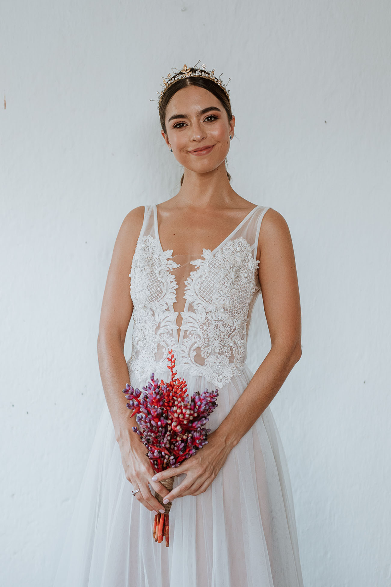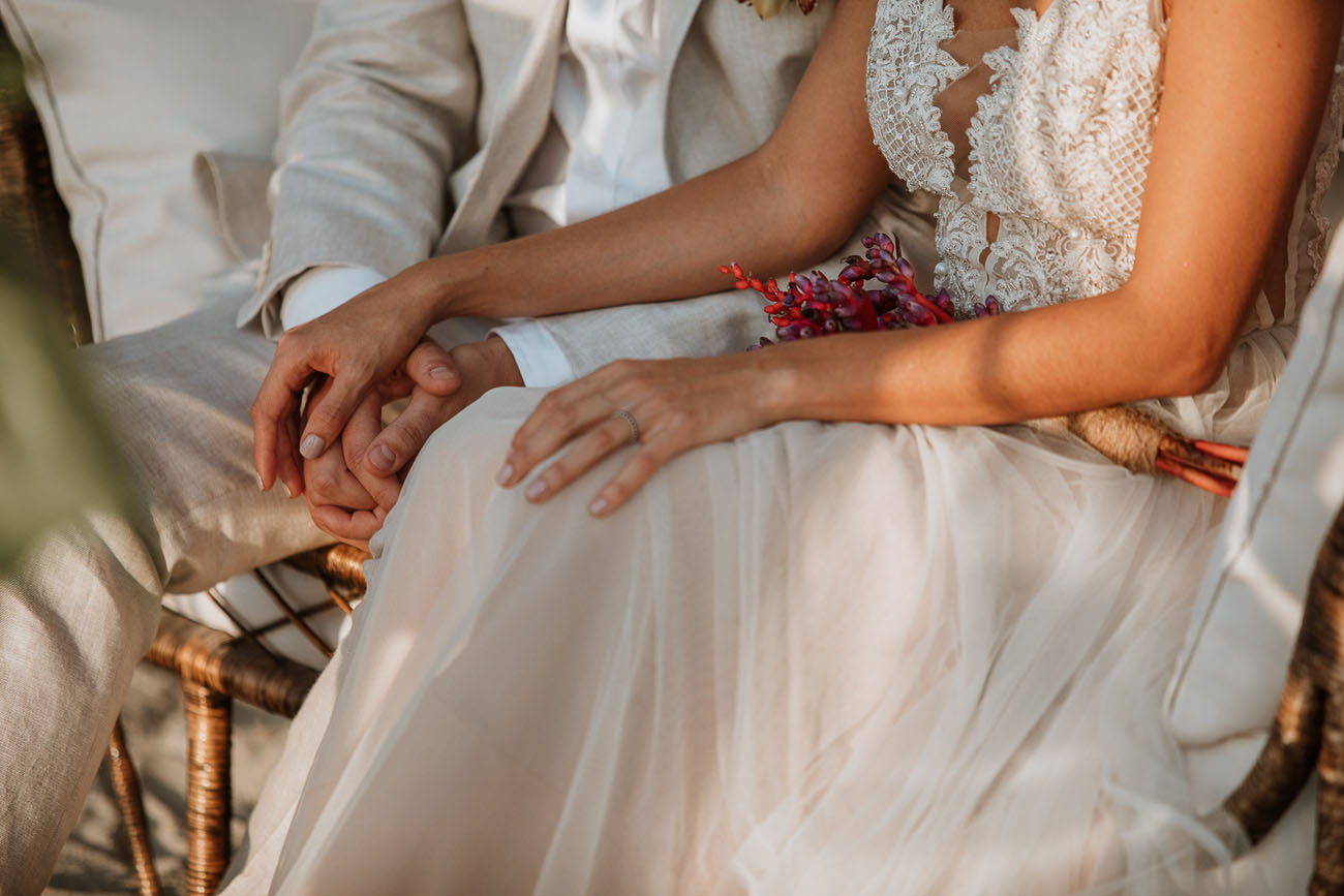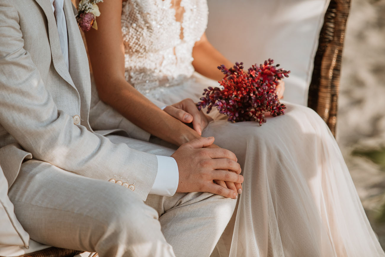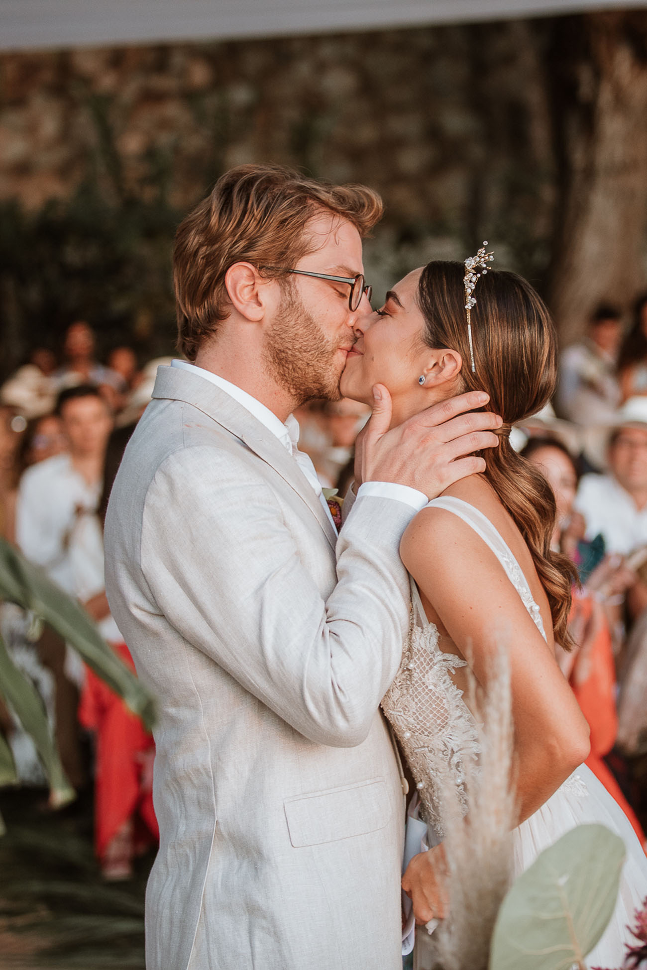 Aunque el lugar que eligieron (Kapikua, en Santa Marta) no tenía algún significado para ellos, sí hacía alusión a esa nostalgia caribeña que querían tener como inspiración, como referencia, como sentir. Se antojaron de un matrimonio folclórico, combinado con la cultura mexicana (la mamá de ella es de ese país), con estética alternativa y romántica, con aires bohemios que desvincularan lo tradicional, lo clásico, lo rígido.