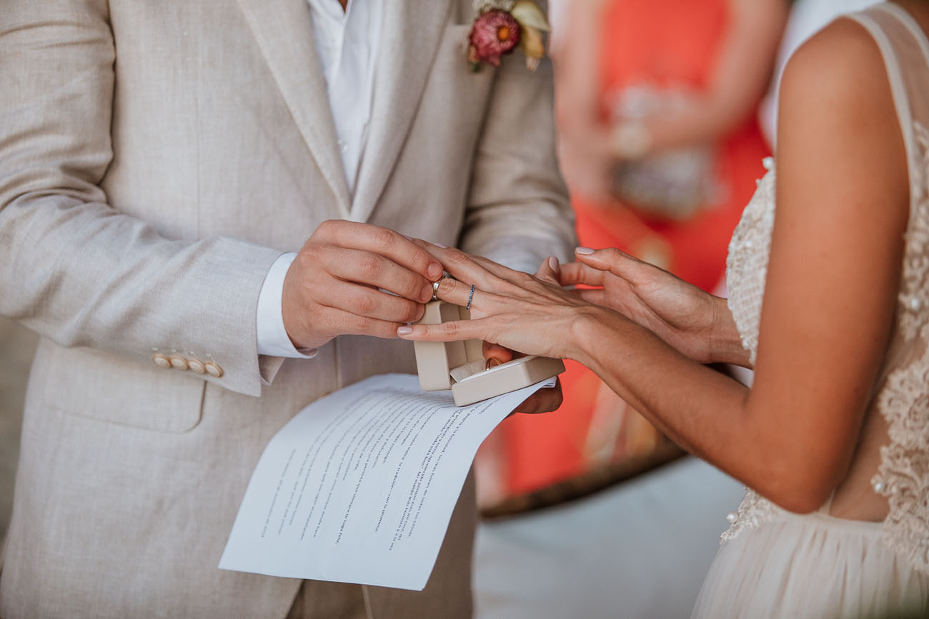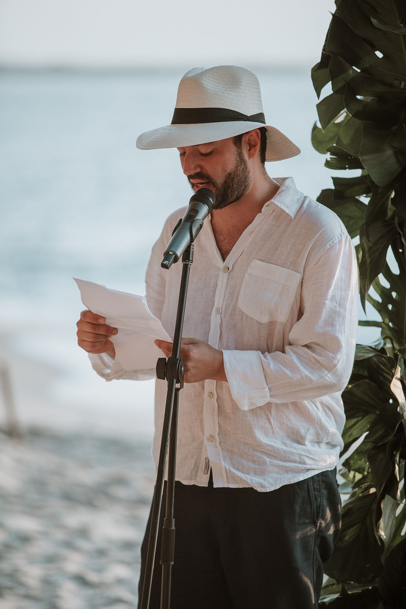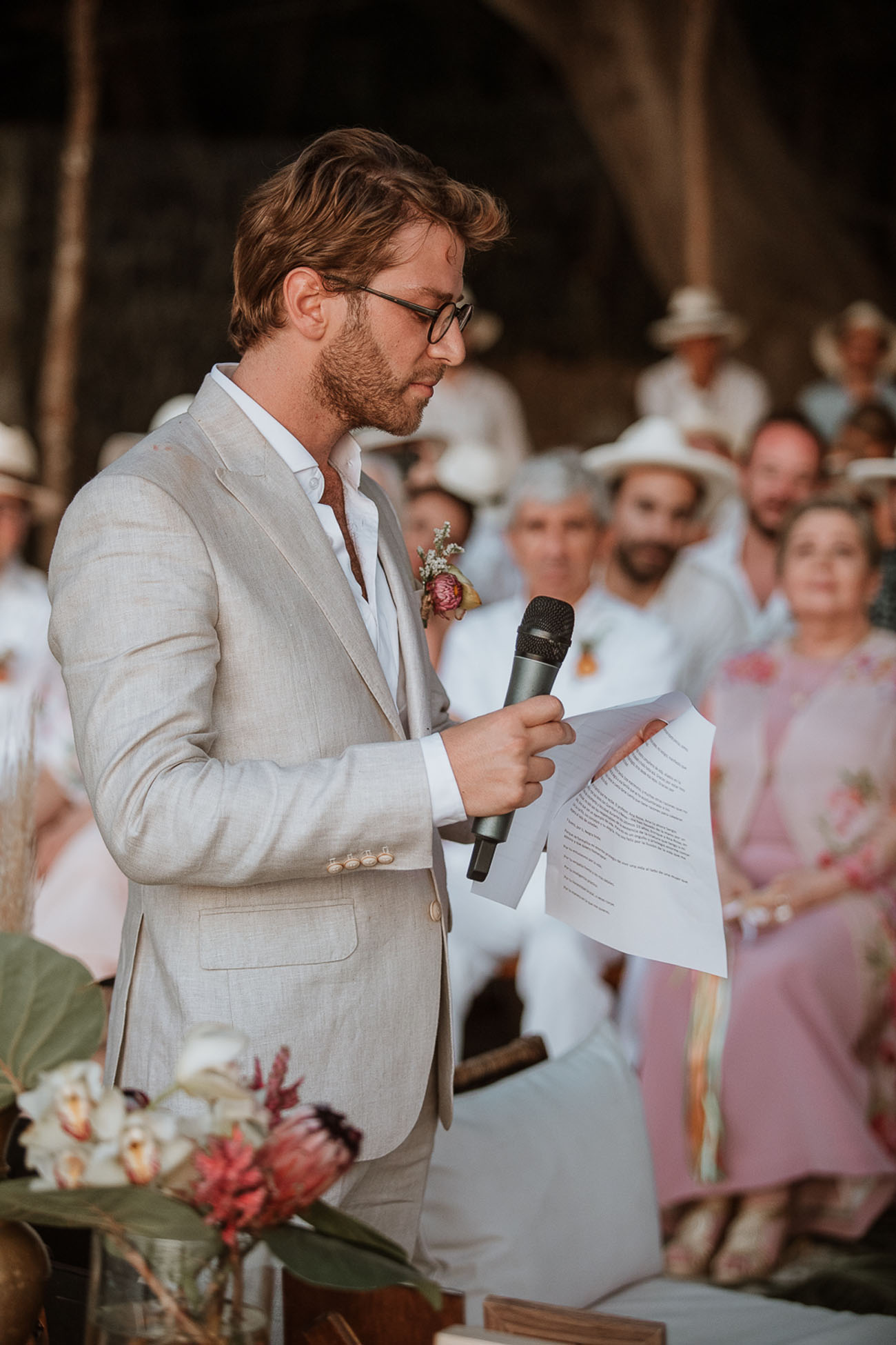 30 de noviembre de 2019. Santa Marta. Kapikua. 160 invitados presenciaron una ceremonia honesta, propia de dos personas que se quieren con mucha intensidad y, sobre todo, con mucha grandeza. Propia de un amor de doce años, que se pregunta por qué sigue de pie, por qué sigue fuerte. Se lo volvieron a preguntar: ¿qué les ha permitido estar tanto tiempo juntos? Cuatro esencias: el asombro, el cambio, la libertad y la comunidad. La planeación de esta ceremonia comenzó en la casa de ellos, con una comida a la que invitaron a sus amigos más cercanos. Buscaron lecturas cortas sobre esos cuatro pilares y les pidieron que escribieran algo que tuviera relación.