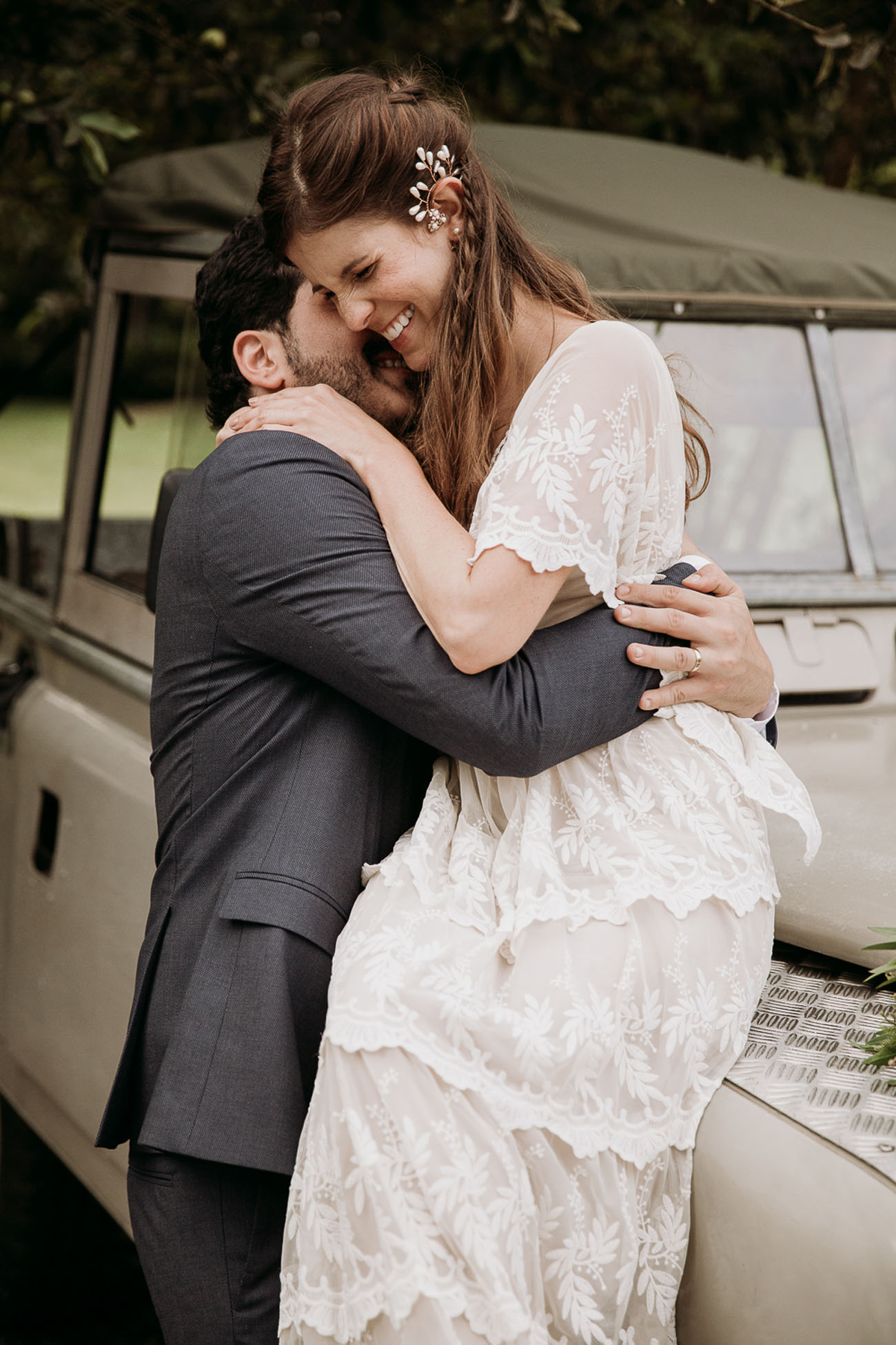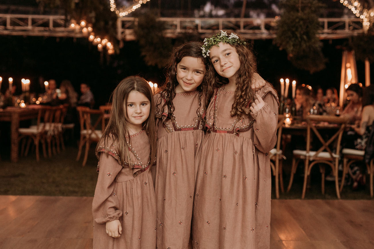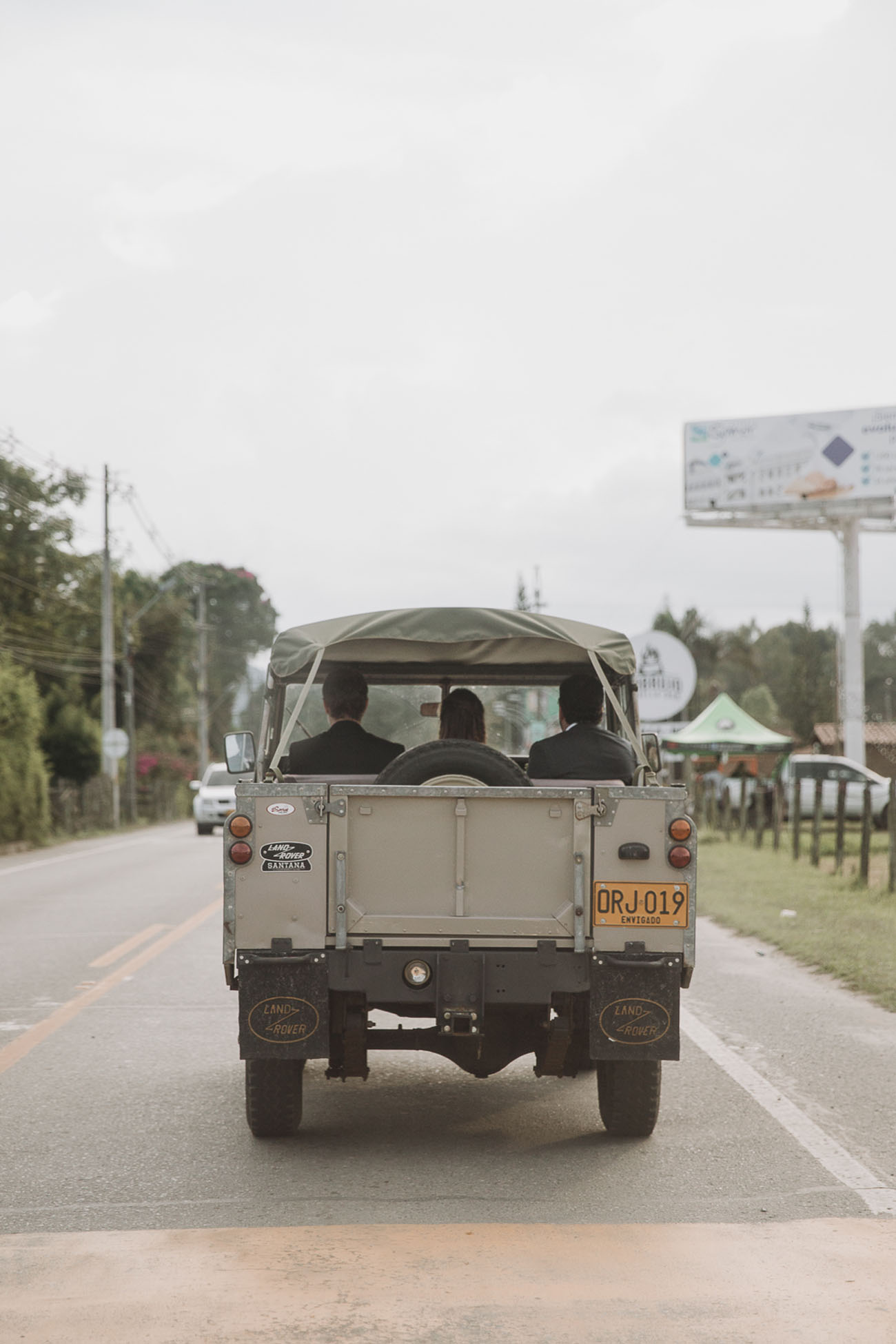 Se montaron en un Land Rover con volco. Atrás iban los cinco pajecitos, todos sobrinos de Juancho que, por cierto, fueron el hit de toda la ceremonia. Y con razón: sus looks bohemios y auténticos cautivaron.