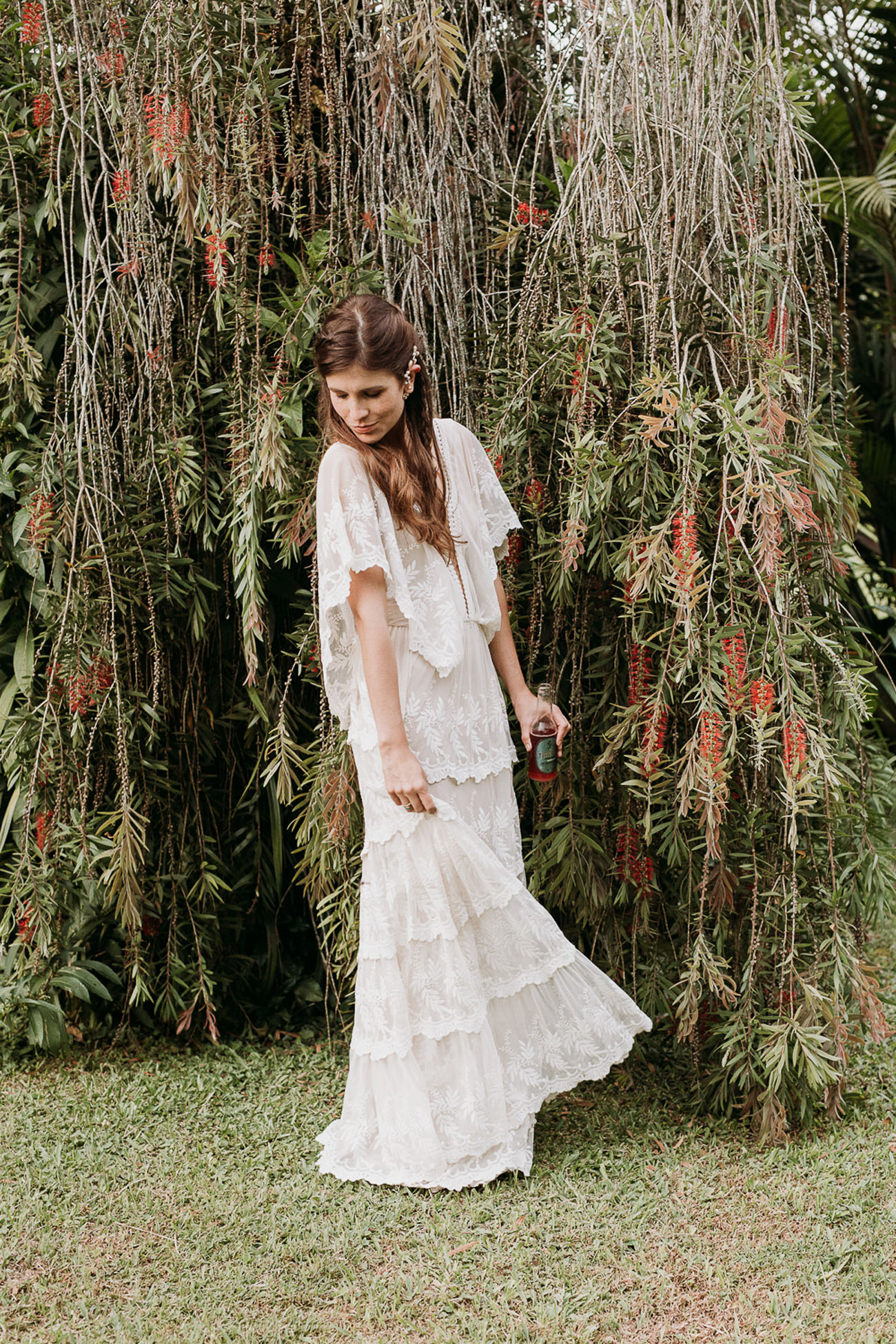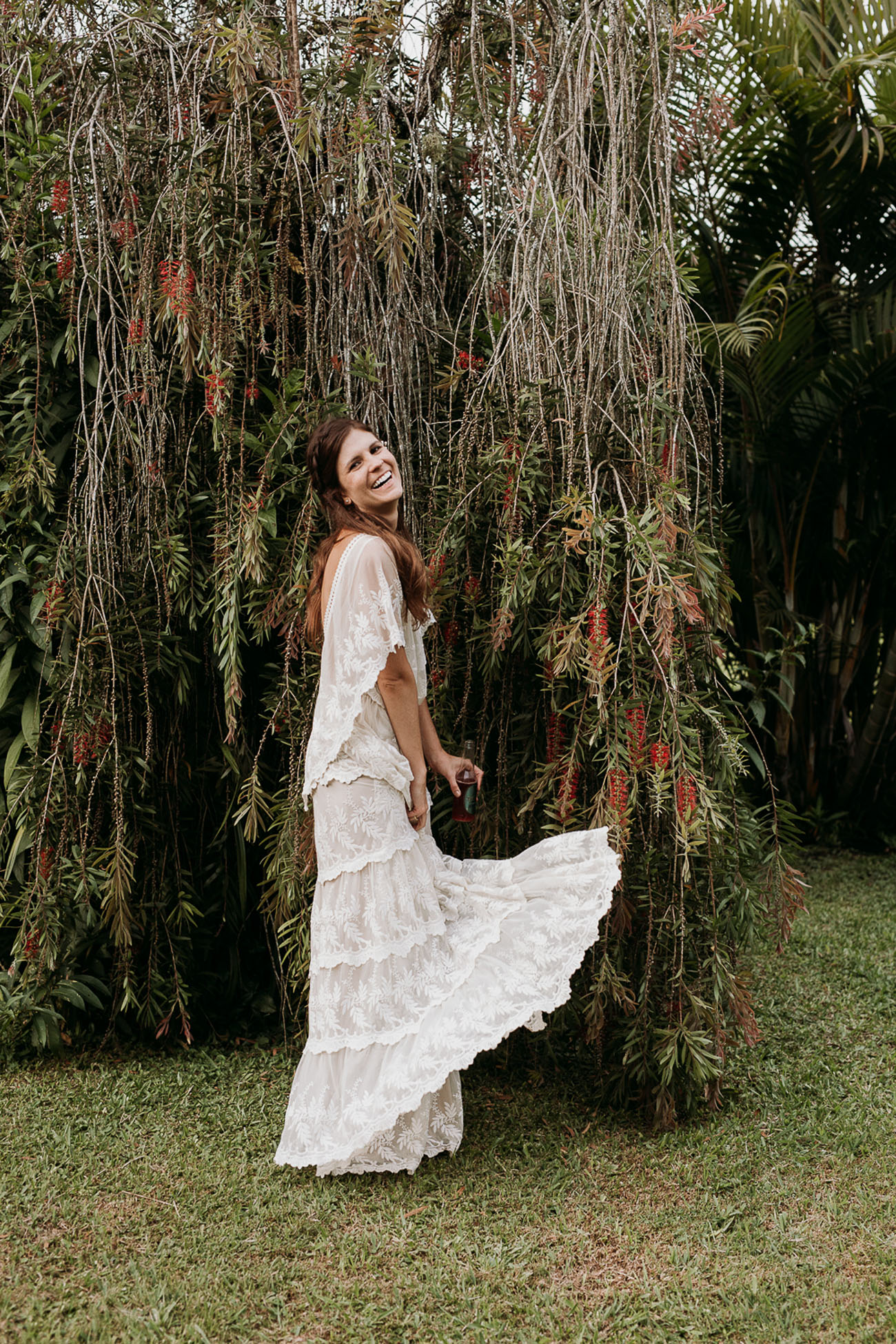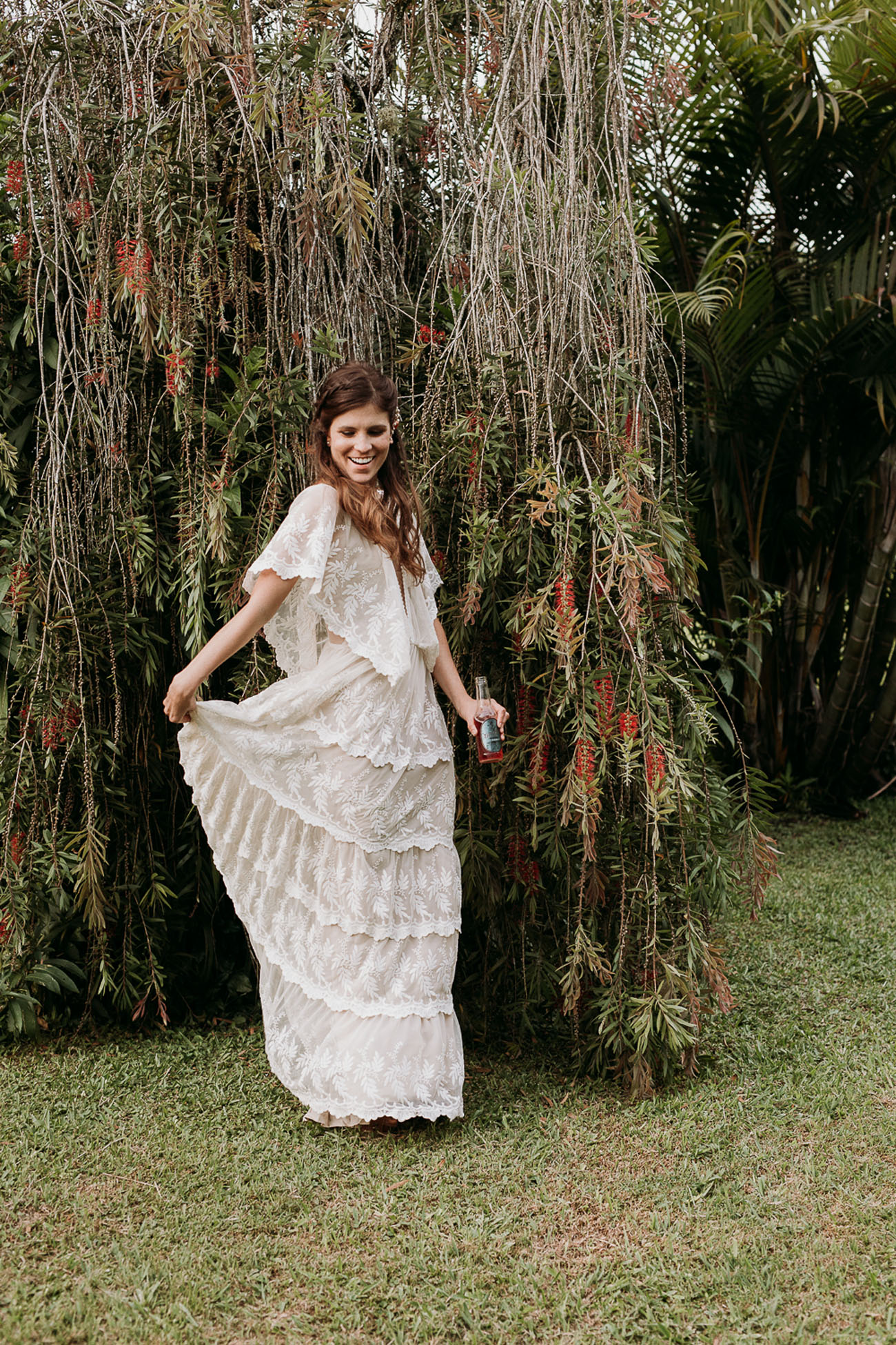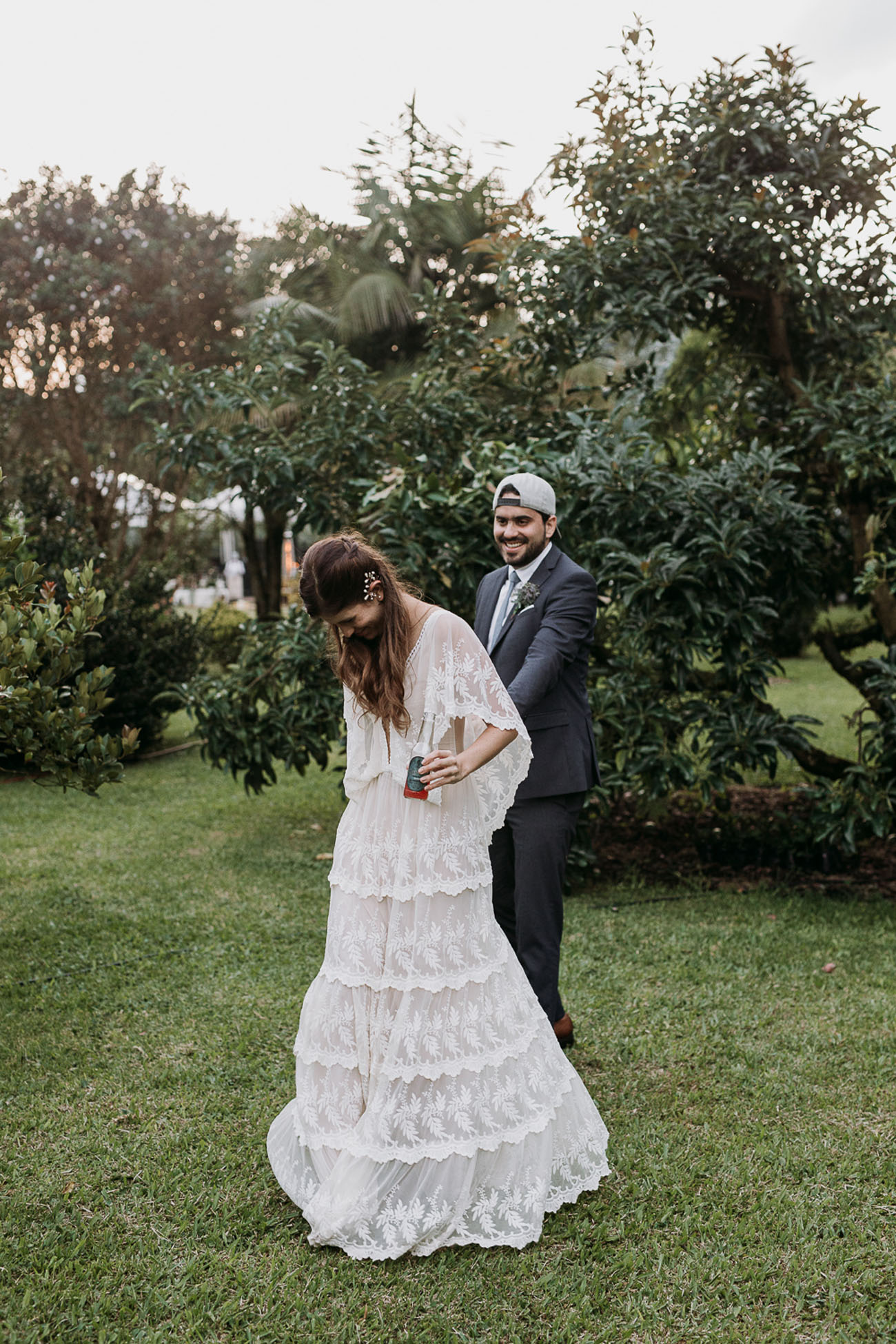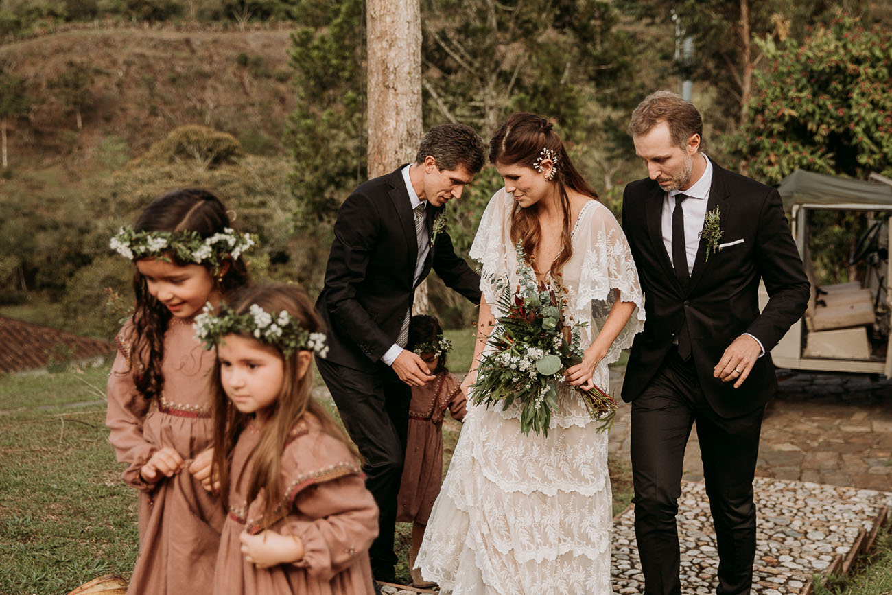 Aunque tenía cita con algunos diseñadores, un día vio la foto de un vestido en la edición de De Novia a Novia, en Bogotá. Ese era. Se lo mostró a Andrea, su cuñada, que fue su madrina y es su amiga, que la conoce tan bien. Sí, ese es. Lo que vino después es propio del curso —espontáneo— que han tomado las cosas en la vida de Sara: escribió por Instagram (@denoviaanovia.co), les dijo que quería el vestido. Se dio cuenta de que la modelo era amiga suya; le preguntó por medidas, por horma, por caída, por detalles. Era M. Ella es S. Luisa Nicholls, la diseñadora, supo la historia y decidió hacérselo. Se tomó las medidas, las envió y en un acto de fe, sin medírselo, lo recibió como el primer regalo, como el más auténtico, como el más emotivo: su hermano Pablo y su cuñada Andrea (esposos) se lo regalaron. Porque esto hubiera hecho el papá, le dijo Pablo. Porque su papá, que murió hace cinco años, habría querido verla feliz en ese vestido boho que reflejaba lo natural que ella es.