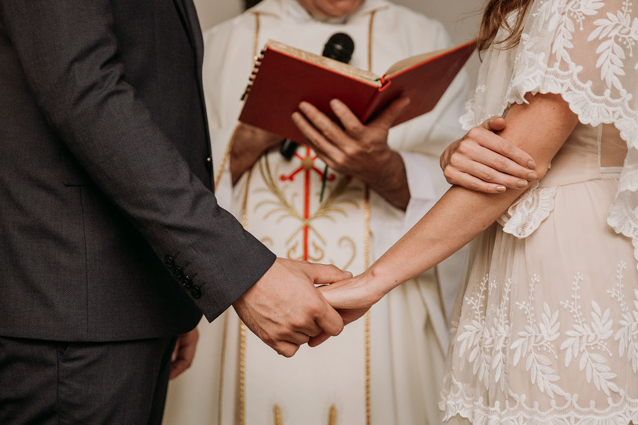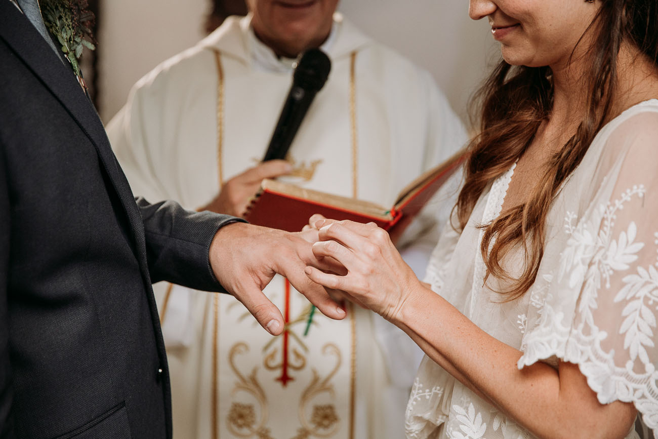 La ceremonia fue en la capilla del recinto Quirama: pequeña, en medio de la naturaleza, cálida. Justo lo que querían. Sara entró con Pablo y Toño, sus hermanos, que también han sido sus padres, su respaldo.